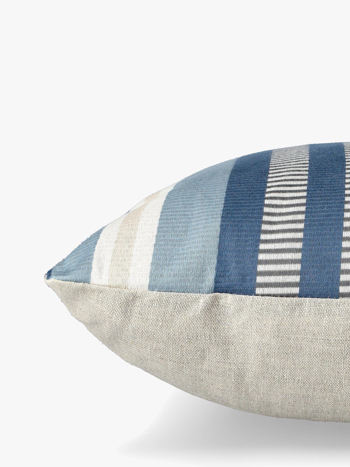 A mix of vertical and horizontal coloured stripes give this cotton cushion a bright and vibrant look.