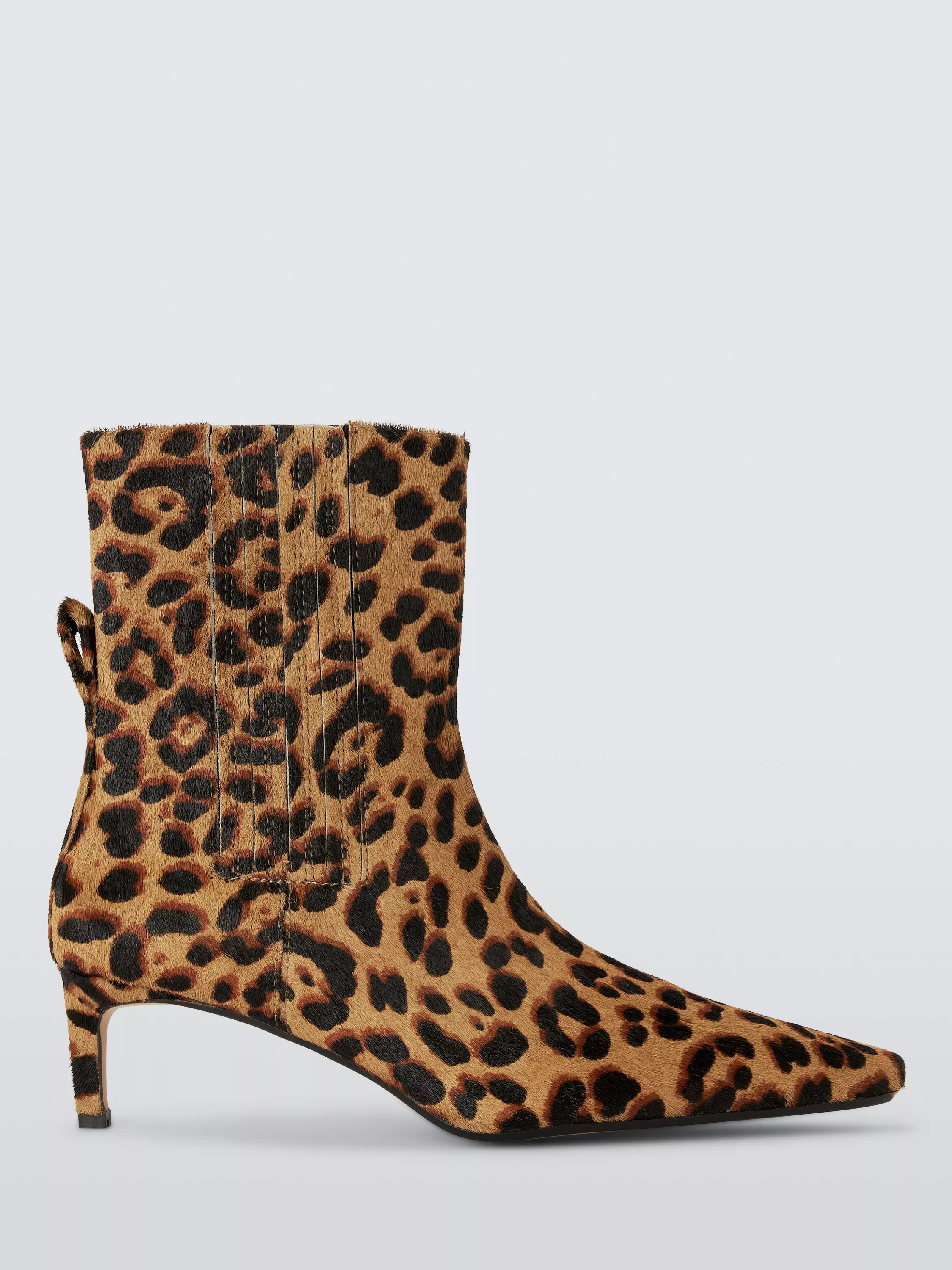 With its hair-on-hide leather leopard print finish, these Ours boots will make a statement with whatever you pair with them. A Chelsea boot with a cleverly disguised elasticated panel and zip entry for ease of wear, Ours is completed with leather lining for all-day comfort and a covered mid-height heel.