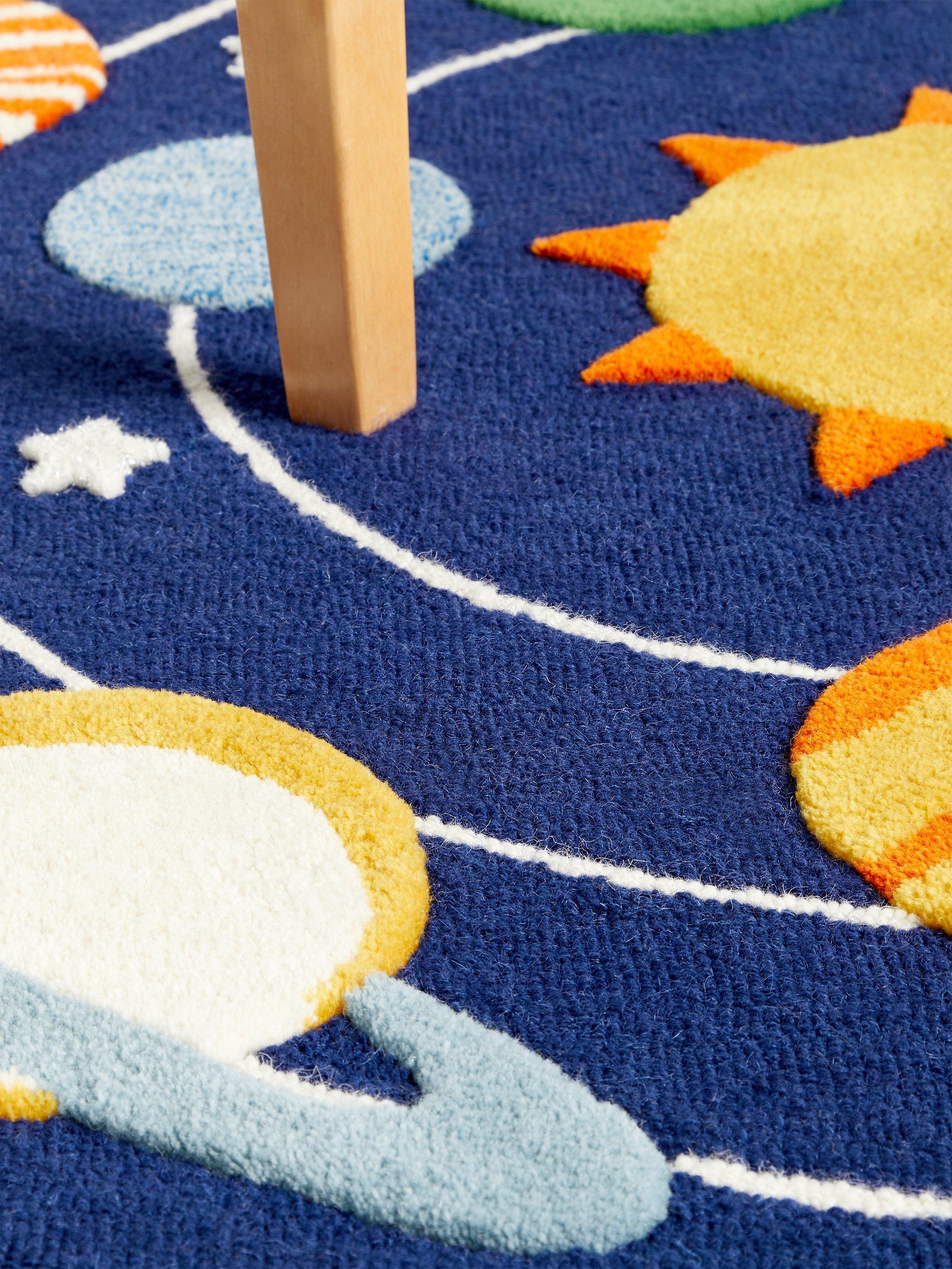 This soft rug will bring a vibrant accent to their bedroom or play area. Each planet in the solar system pattern is designed with a carved wool tuft that creates a playful, 3D effect. Made from a high-quality, pure wool pile for a thick and comfortable feeling underfoot, coordinate with other pieces from our Outer Space range to create an out-of-this world setting at home.