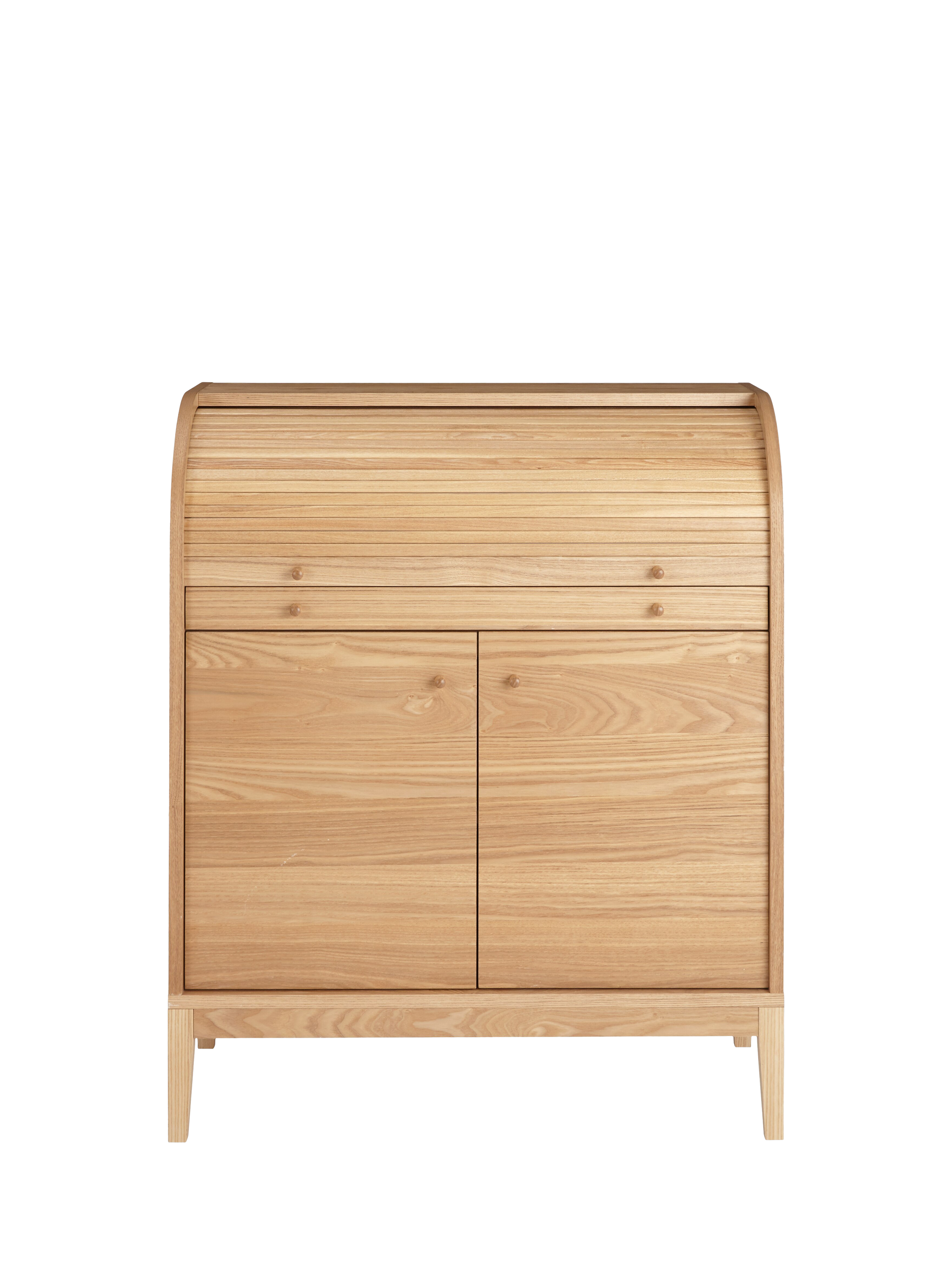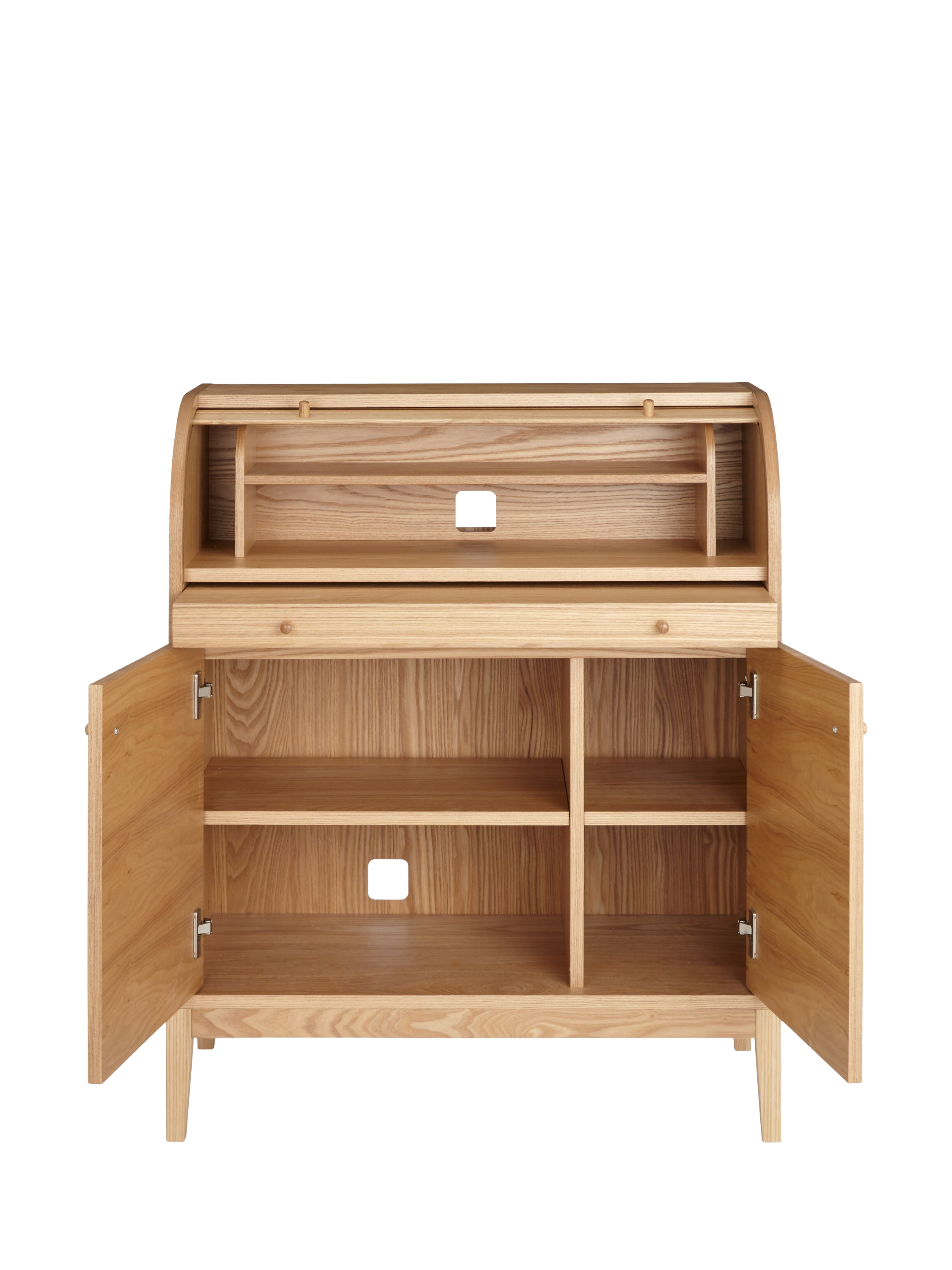 We've re-designed the traditional bureau so that it fits right into your modern home. Part of our Grayson range, this sturdy bureau is compact in size but provides a practical workstation as well as plenty of organised storage space. Made from high-quality woods in a veneered finish, the desk slides out to create a solid work surface and the soft-close cupboard doors open to reveal internal shelving. There are also media holes at the back, so you can keep unsightly cables from laptop chargers and table lamps in order. Ideal for smaller spaces, you'll feel reassured that everything is in its place during work from home days.