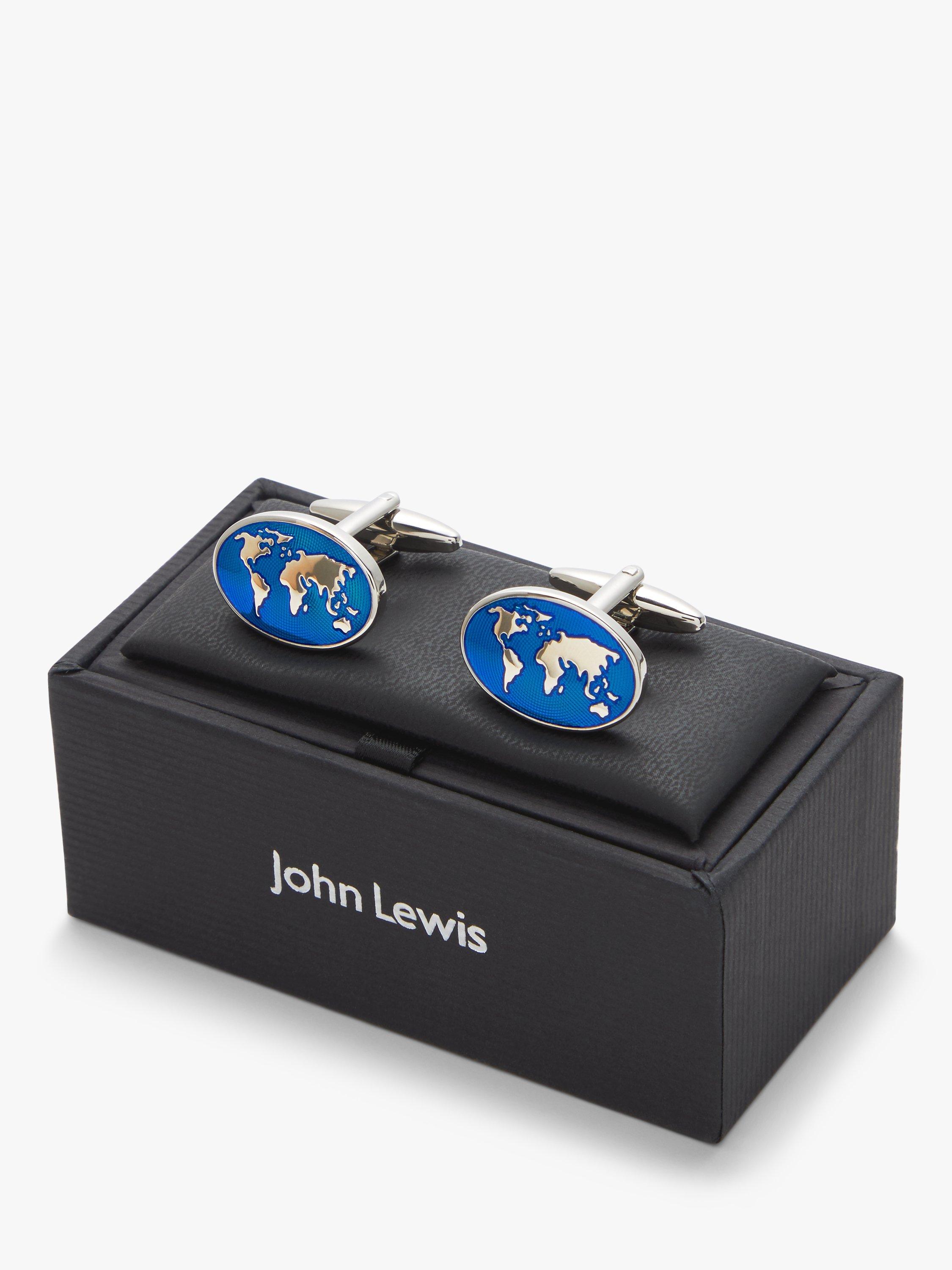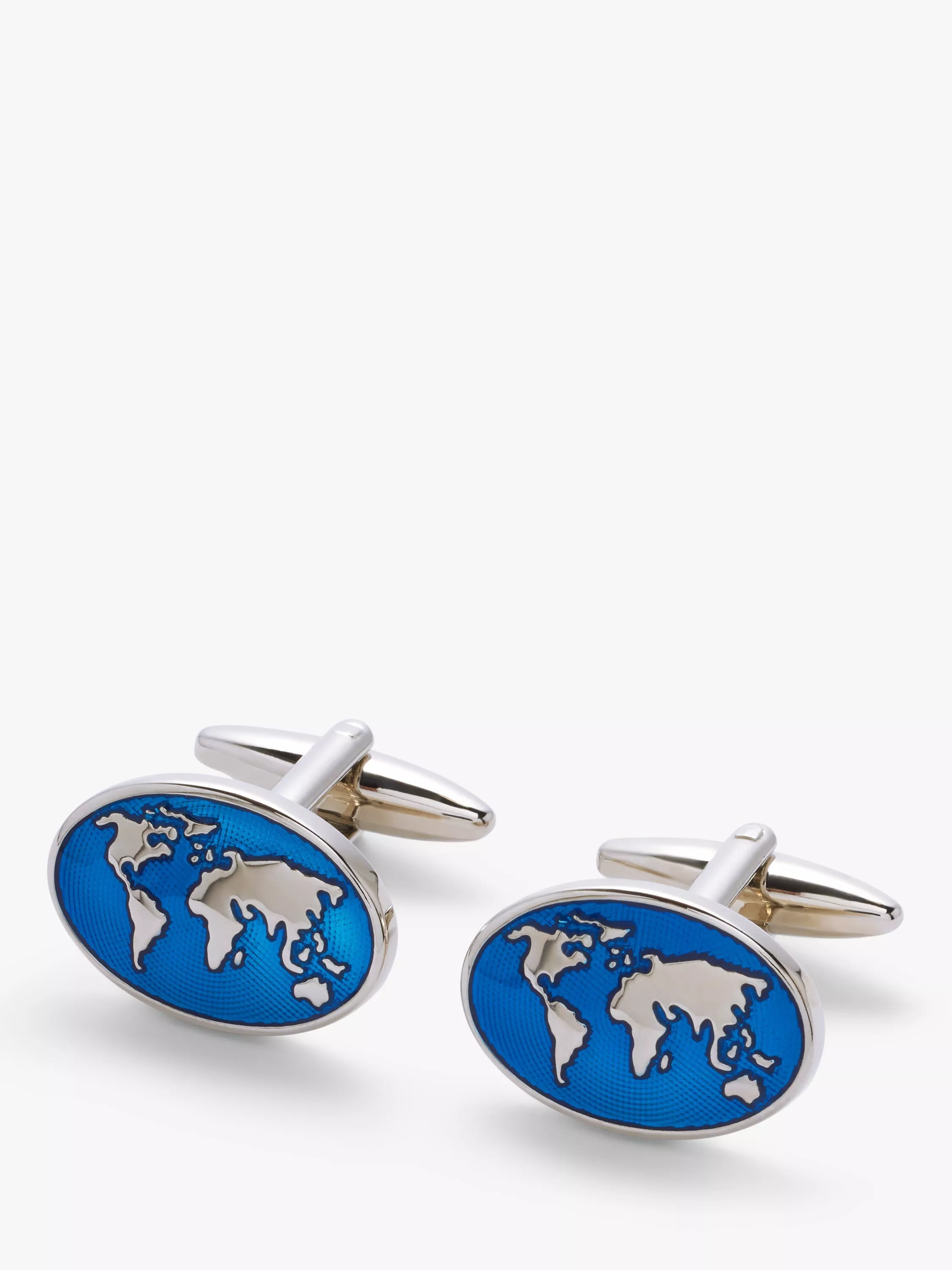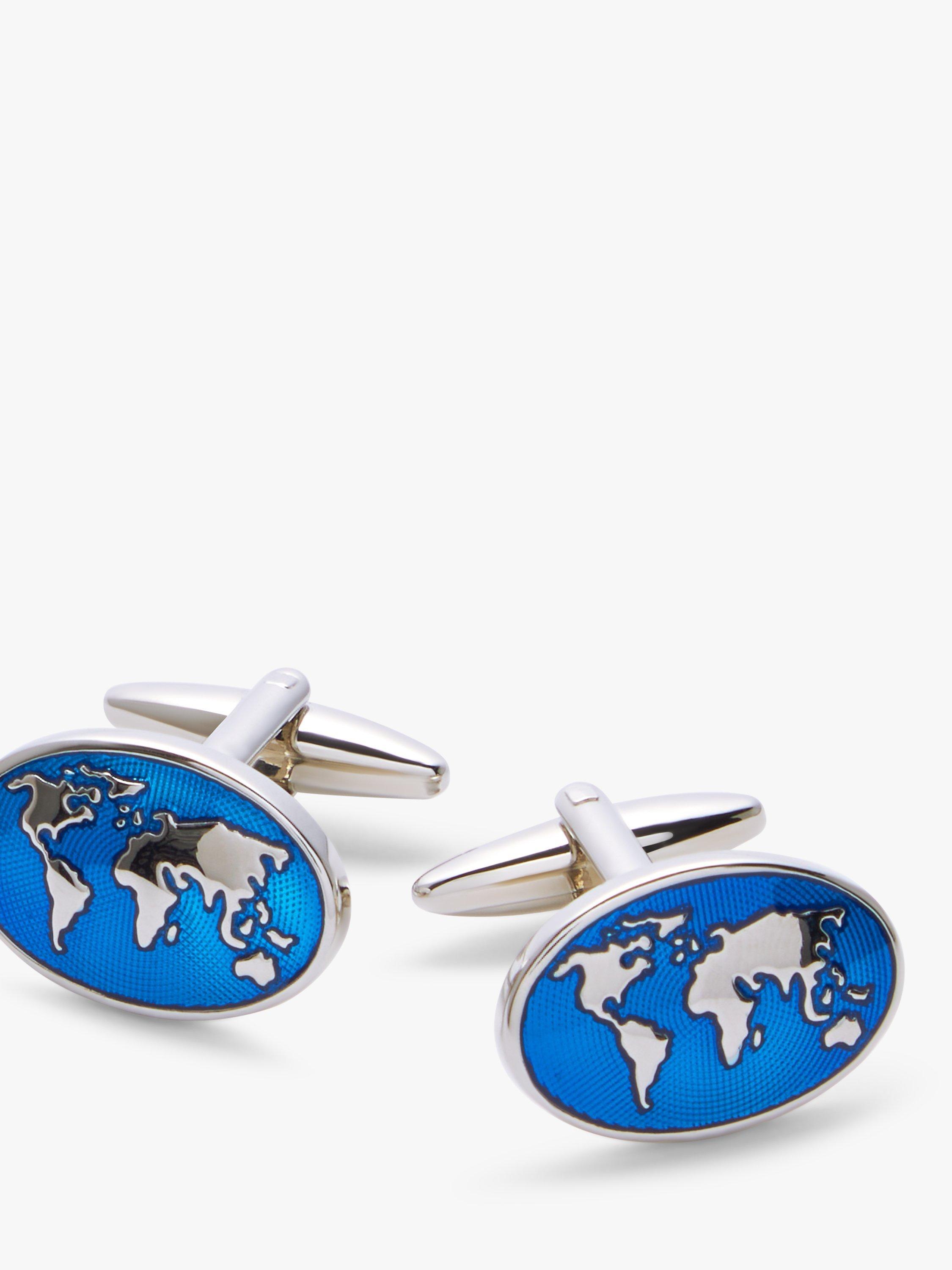 Complete your formal attire with these oval cufflinks, ideal for the globe-trotter, featuring a representation of the world on transparent blue enamel.