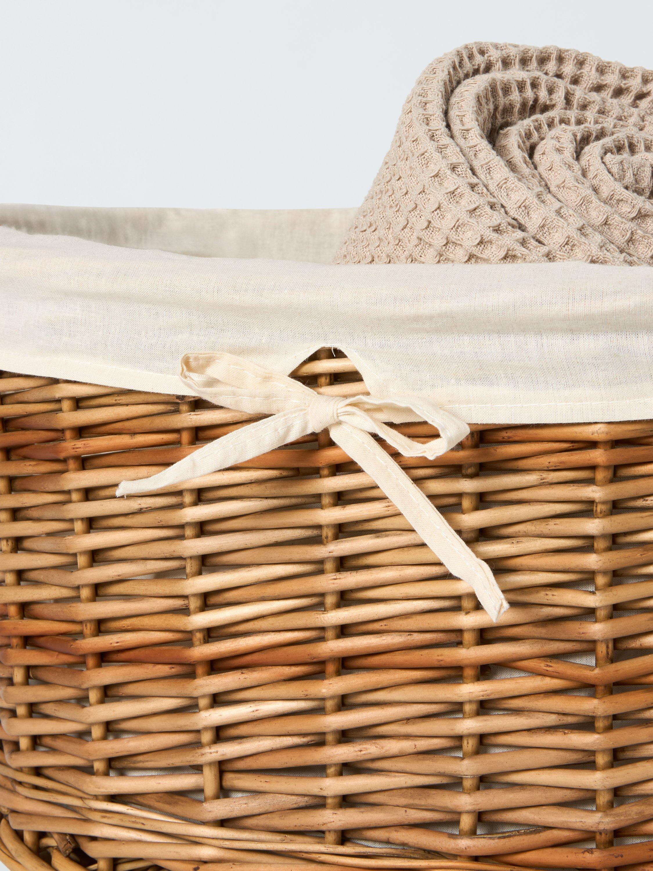 This lined, oval basket brings cottagecore style to your home and can be used for storing wash cloths, toiletries, hair accessories or even in the kitchen.