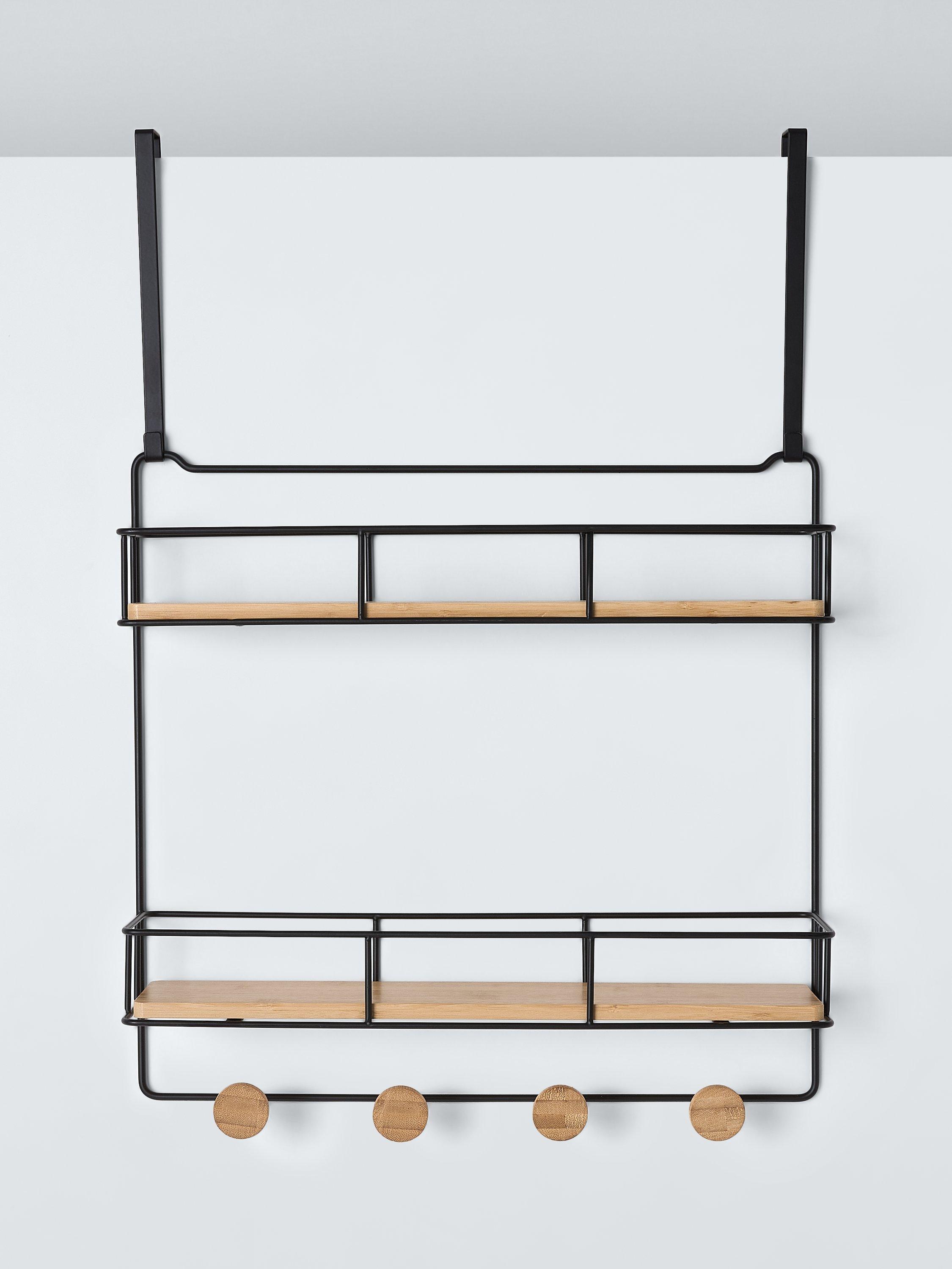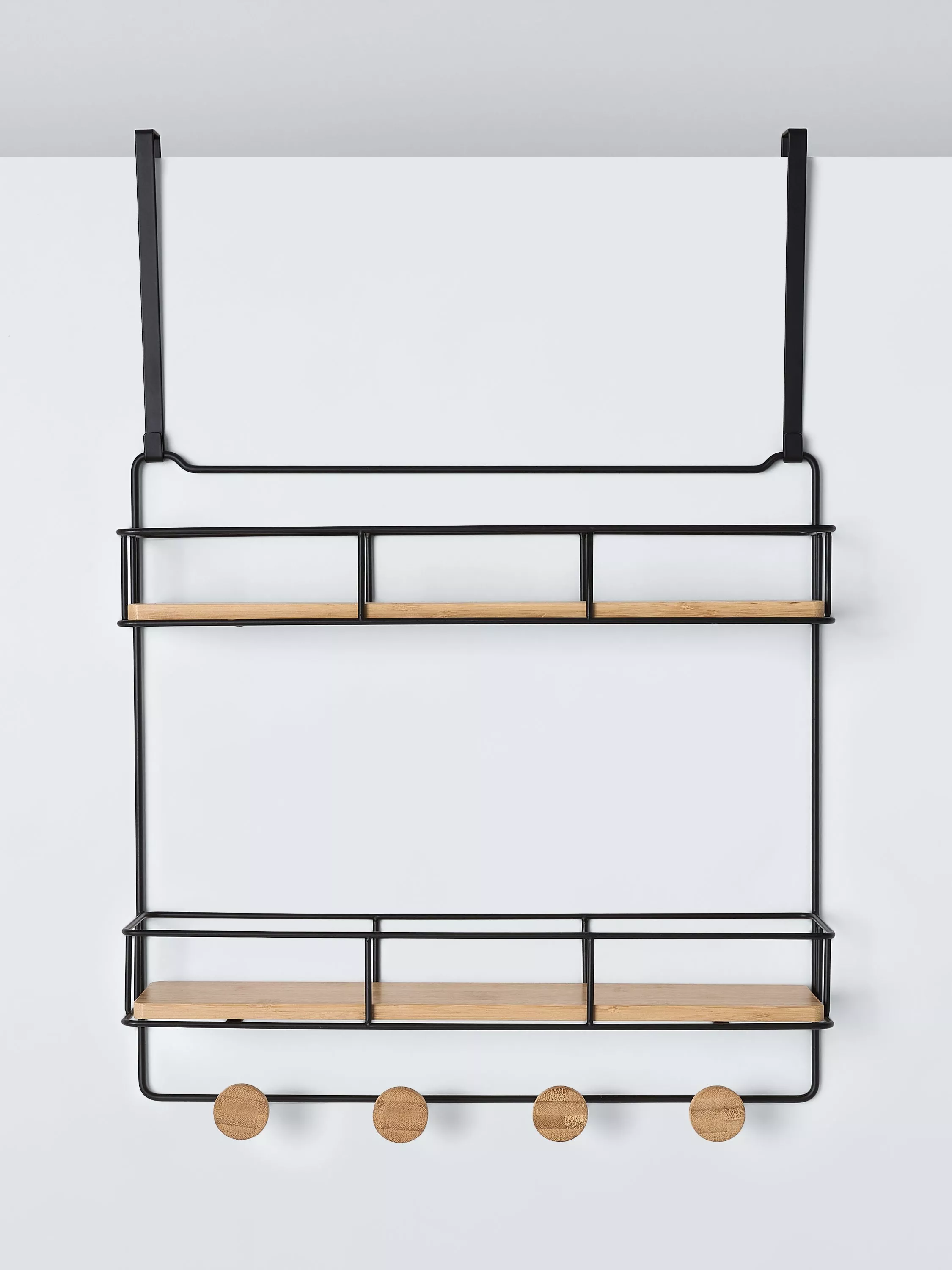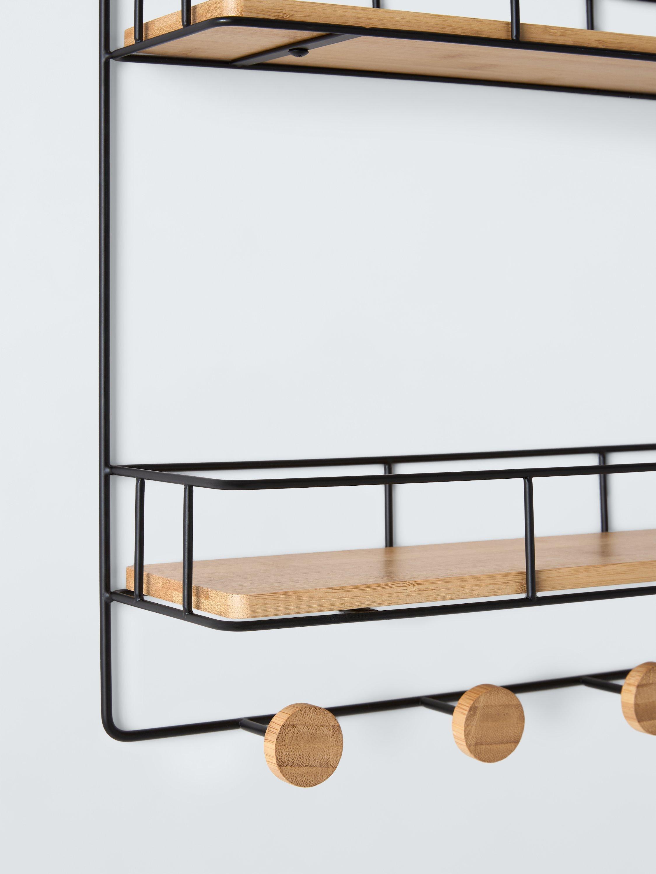 This useful organiser combines two bamboo shelves and 4 hooks in a wire frame, making it perfect in cluttered kitchens or utility rooms.