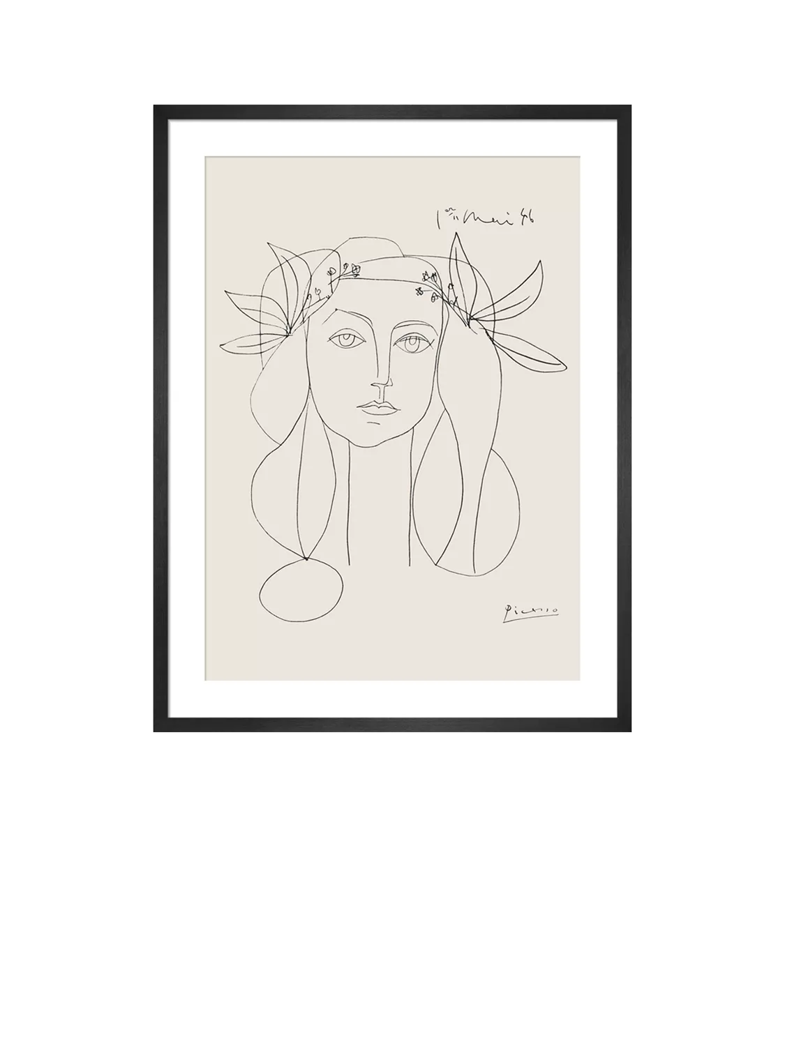 Framed print of Picasso's 1946 drawing.