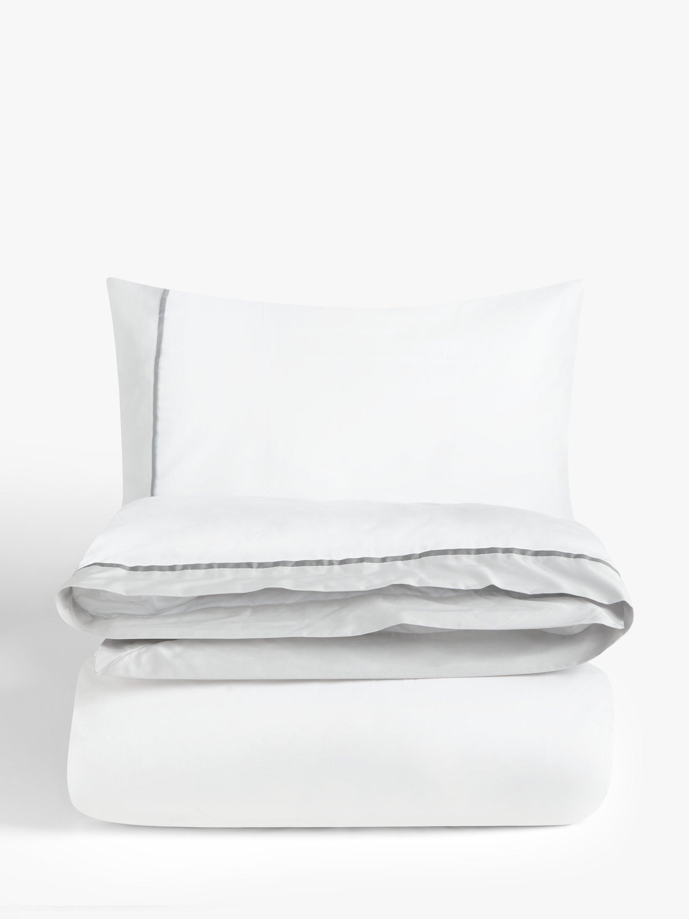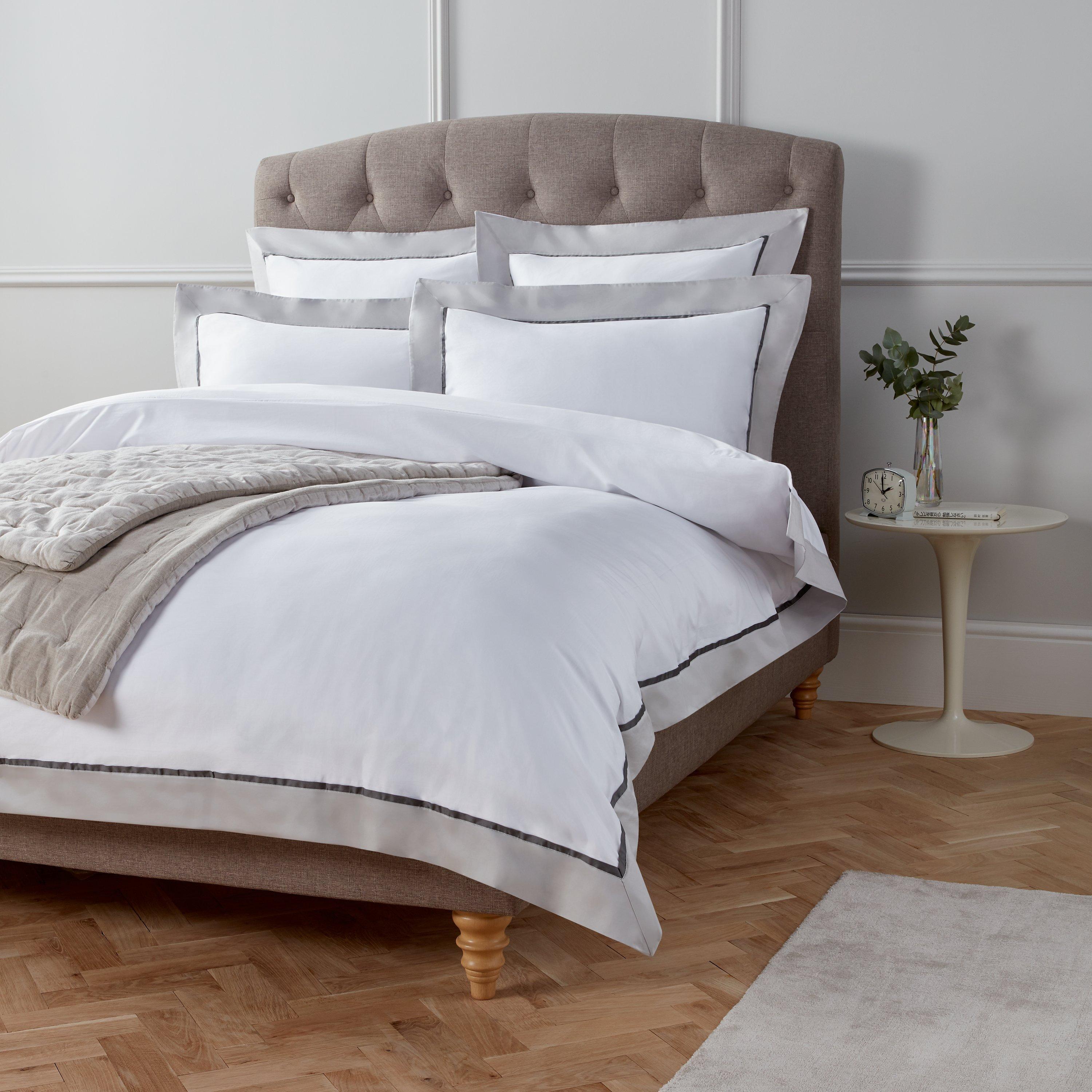 Wonderfully smooth and silky Egyptian cotton satin bedding, edged in pink, cool grey or ice blue for luxurious, Boutique Hotel elegance. A premium product for the ultimate in luxury