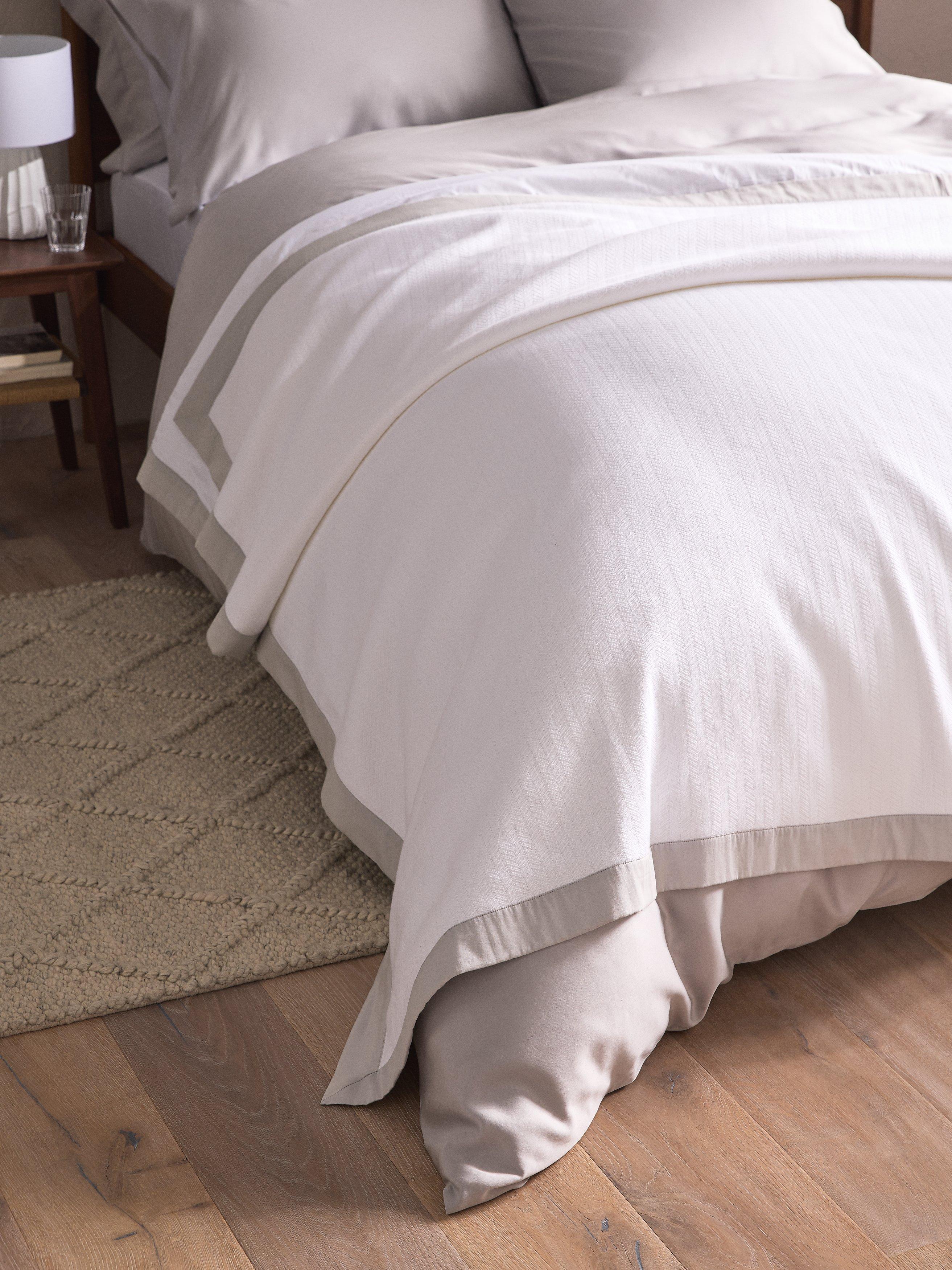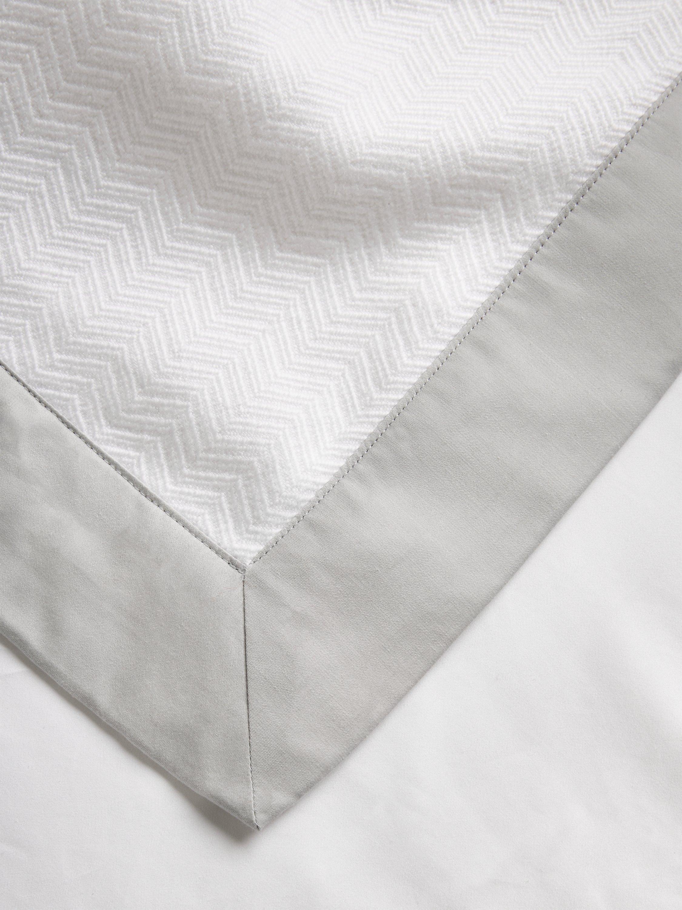 This lightweight cotton bedspread is woven in herringbone Jacquard and has a neat, grey border. It's made to coordinate beautifully with our Padova bed linen range (available separately).