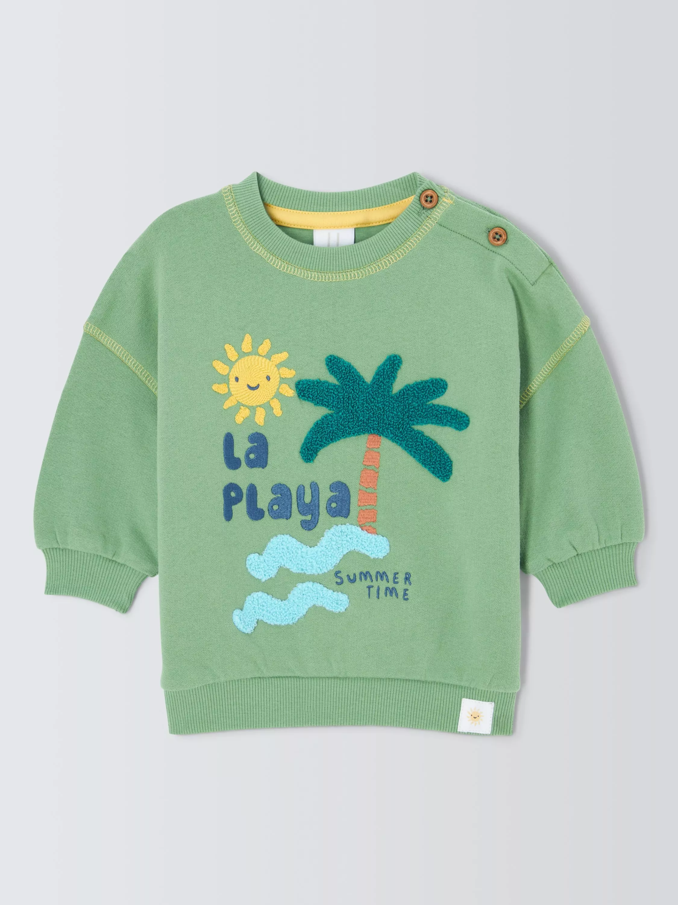 Crafted from 100% cotton to provide a soft, breathable layer for cooler days. This classic sweater shape has mock wood shoulder buttons for easy dressing. Ribbed cuffs and hem ensure a comfortable and secure fit that moves with active little ones.