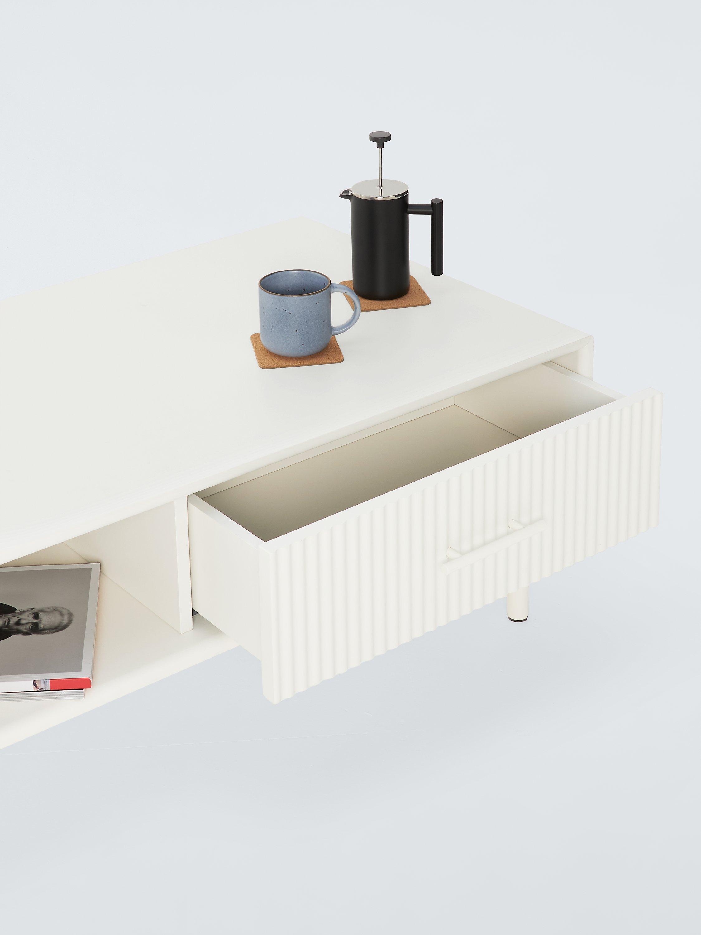 This coffee table has a drawer for storage and a separate recess for all your TV and other media remote controls.