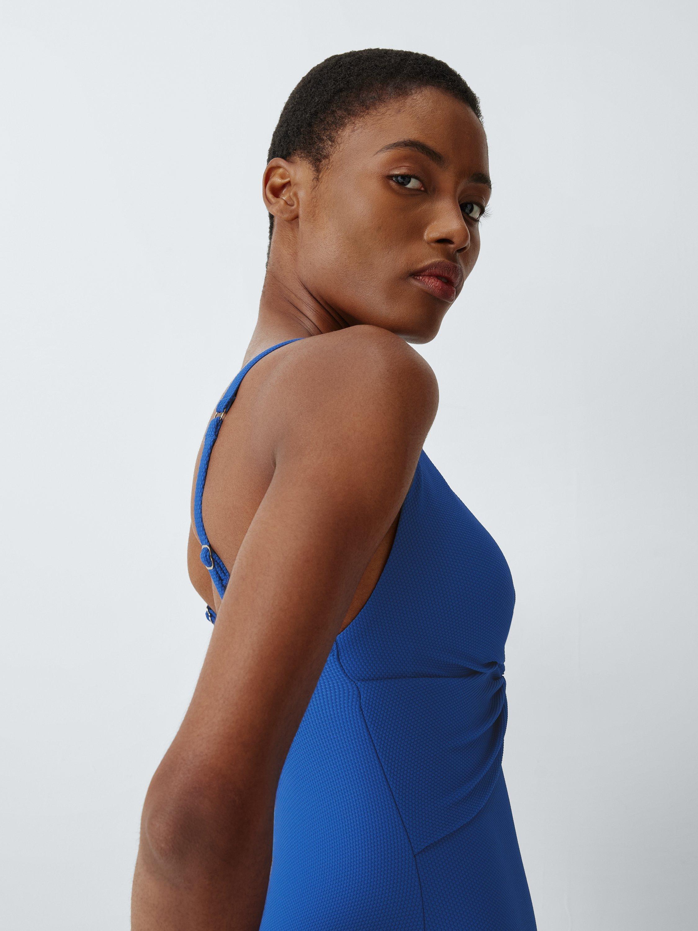Textured for tactile appeal, this swimsuit has a plunging neckline ending in a twist front to create a stunning shape. It offers medium shaping control and is fully lined for comfort. The silhouette is completed with a medium leg cut and scoop back.