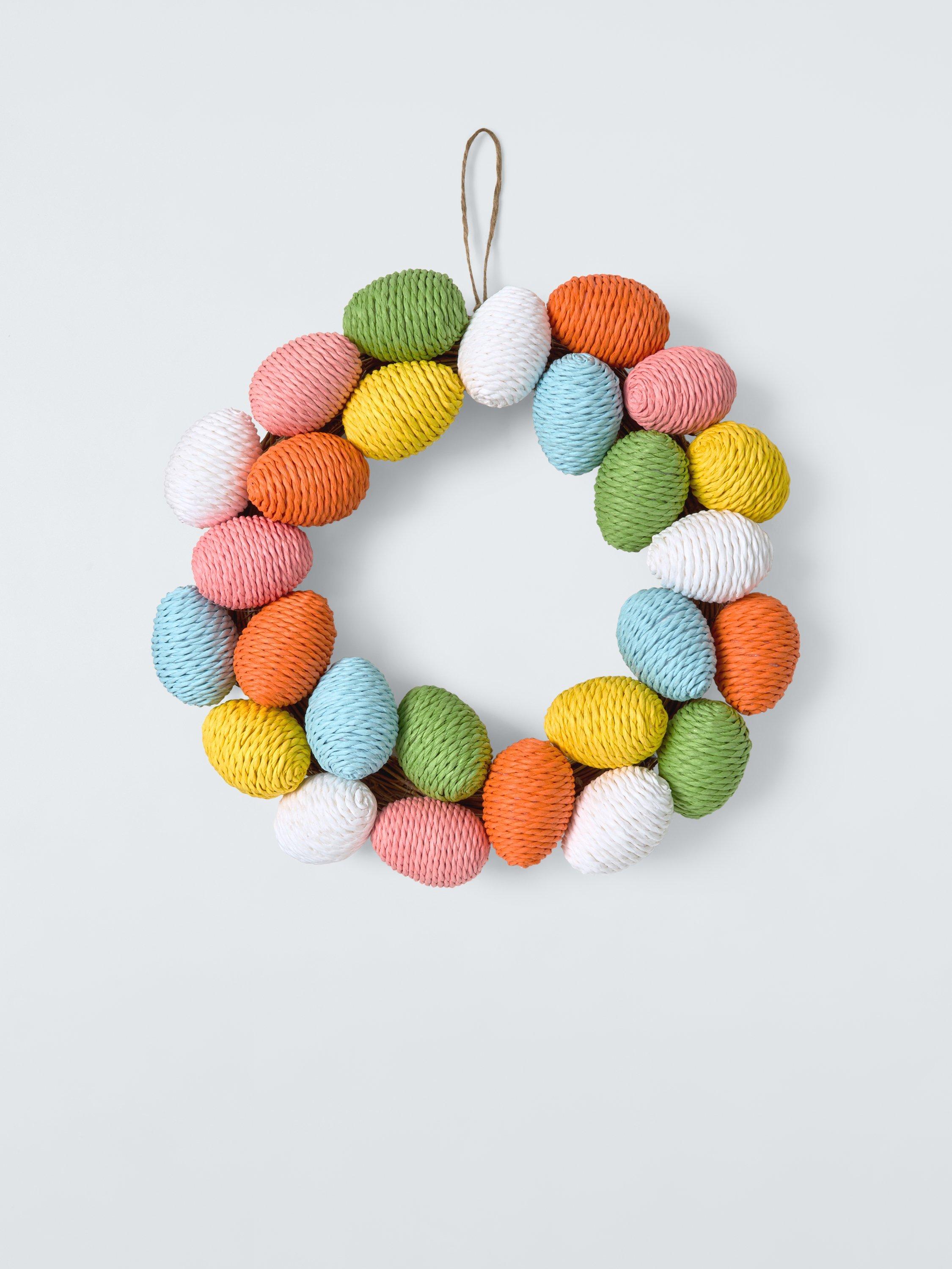 Our Easter wreath blends rustic texture with joyful seasonal colour and is handcrafted using natural materials and paper rope.