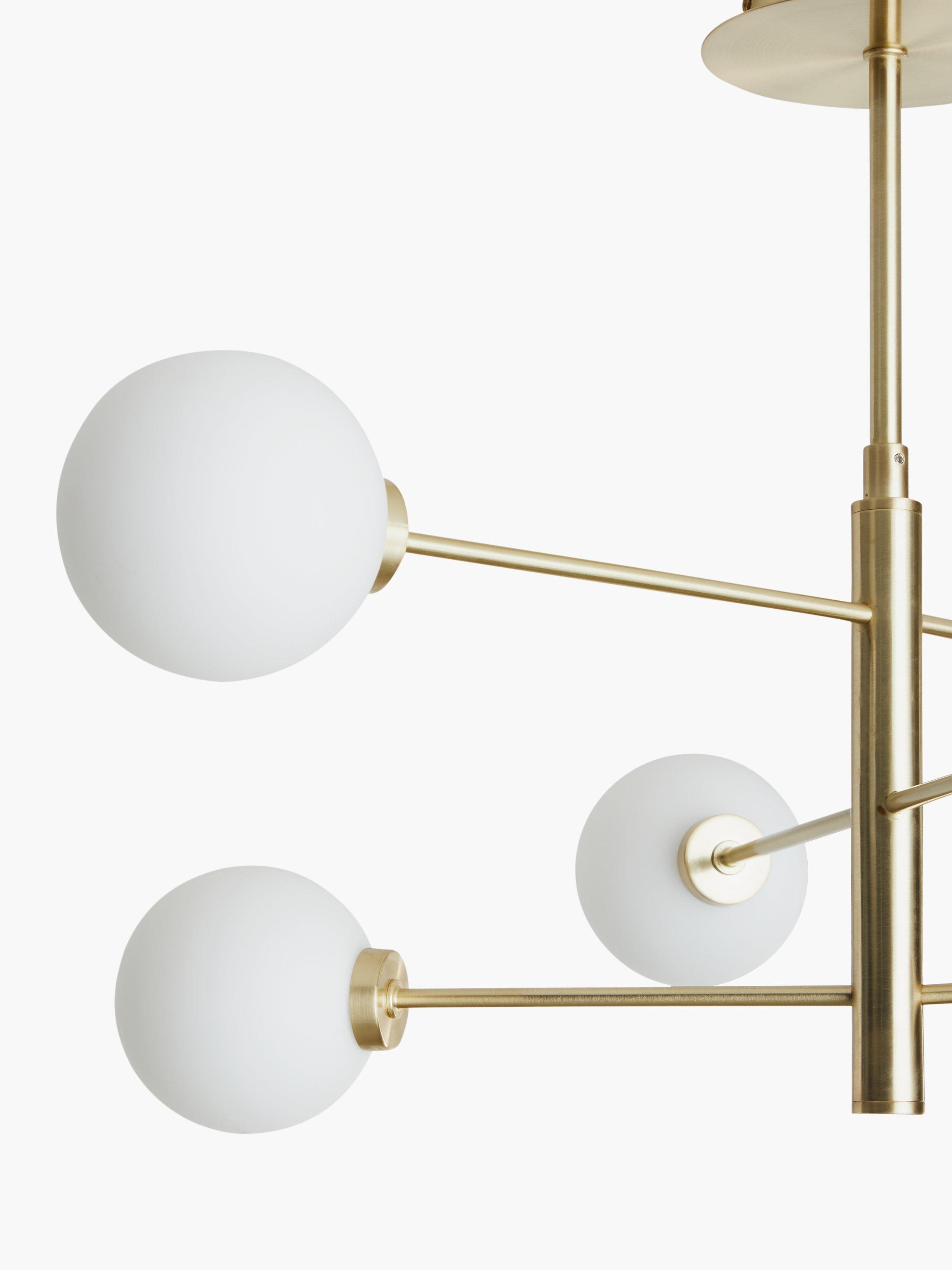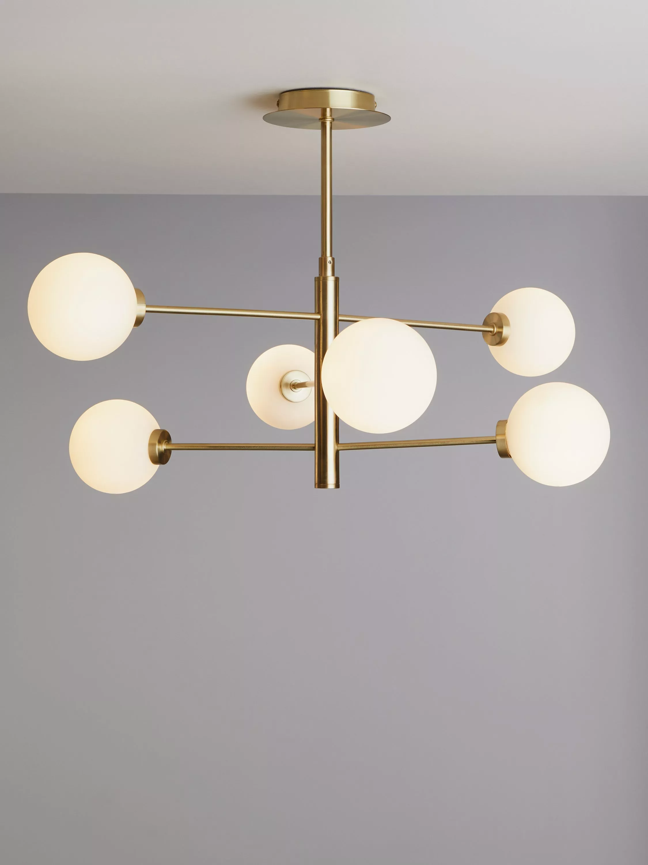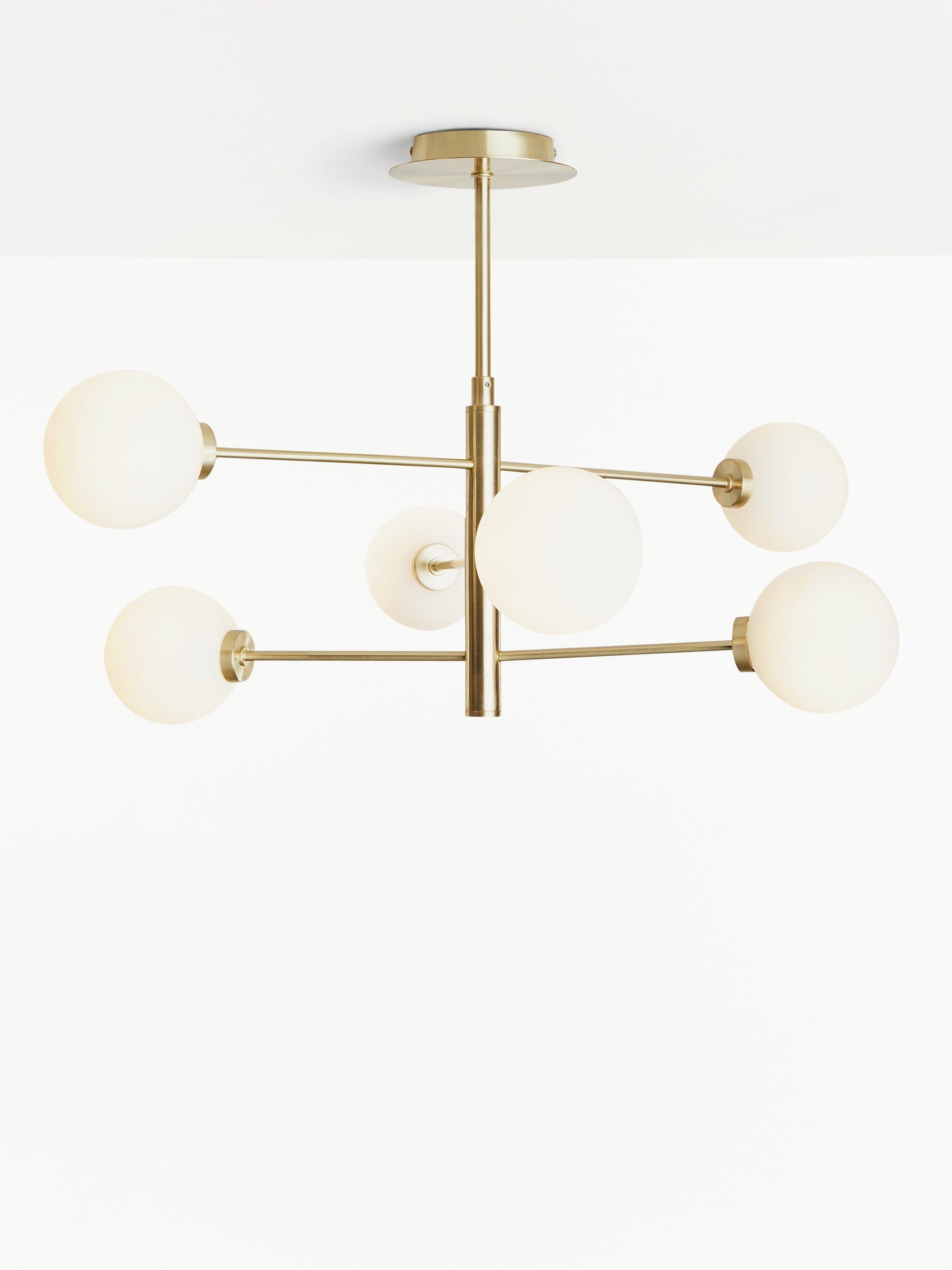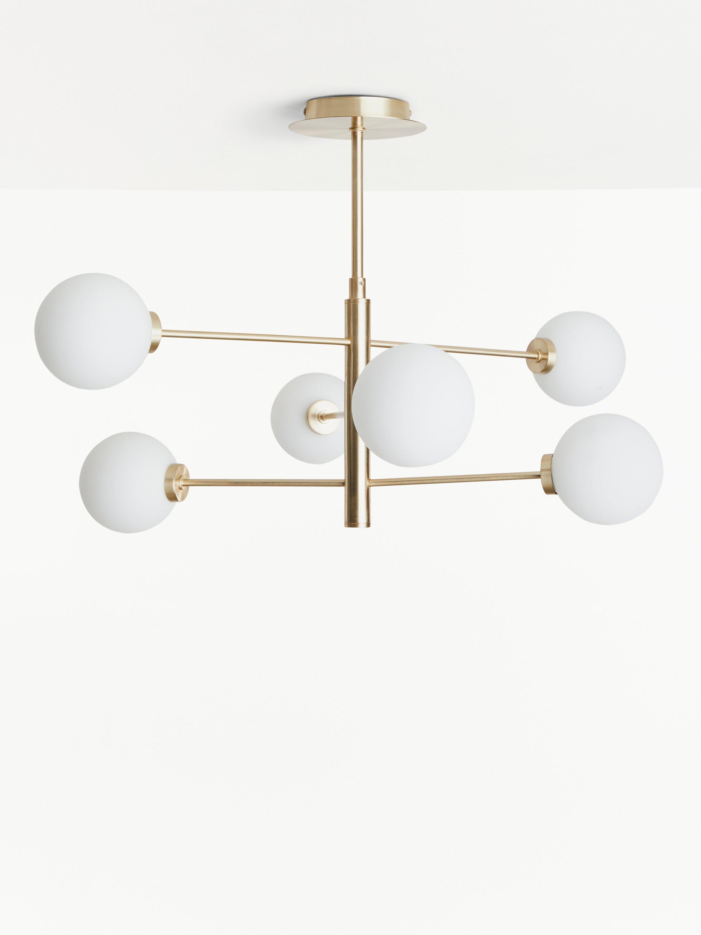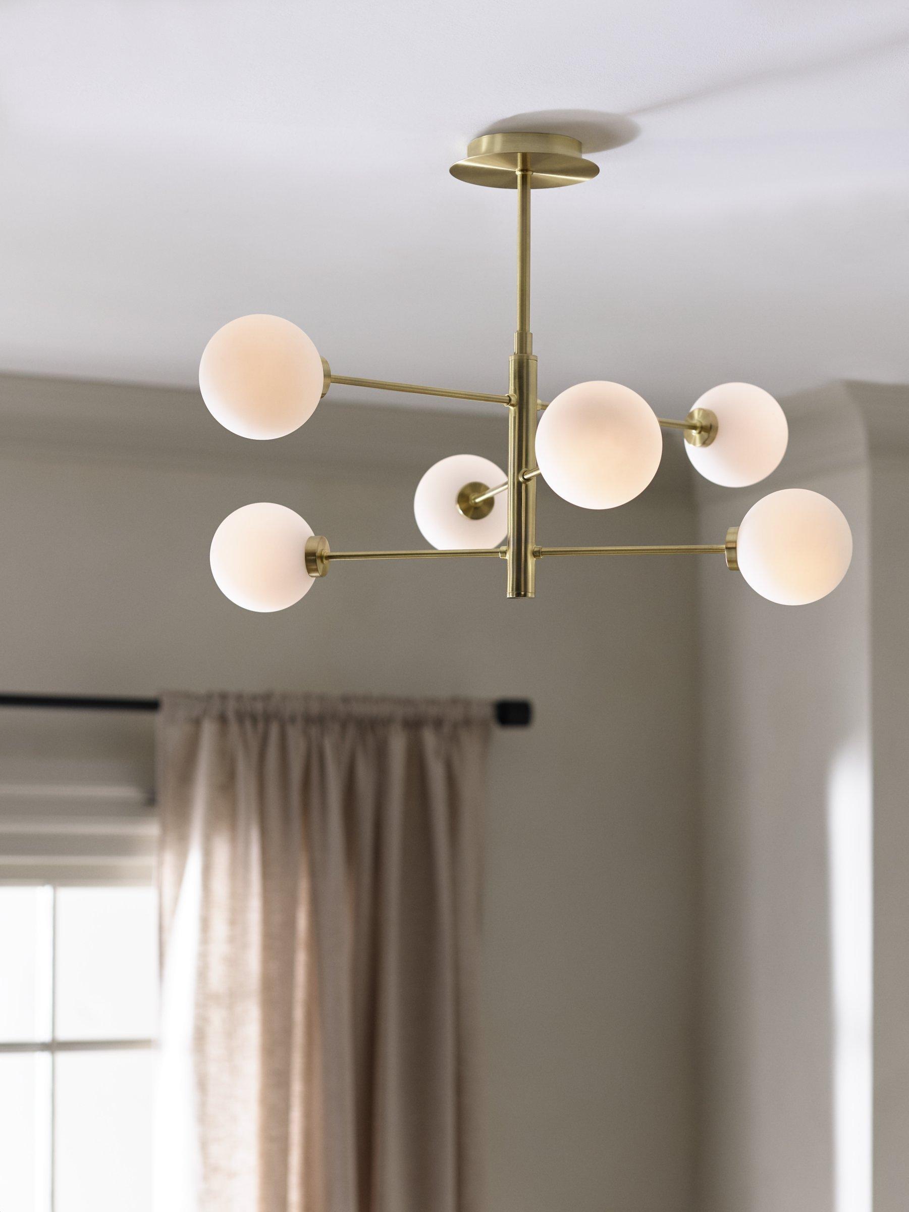 Balanced and bold, our Parity ceiling light houses six glass globe shades. It enhances a diffused and atmospheric wash of light around your space and makes for a statement lighting style in any room.