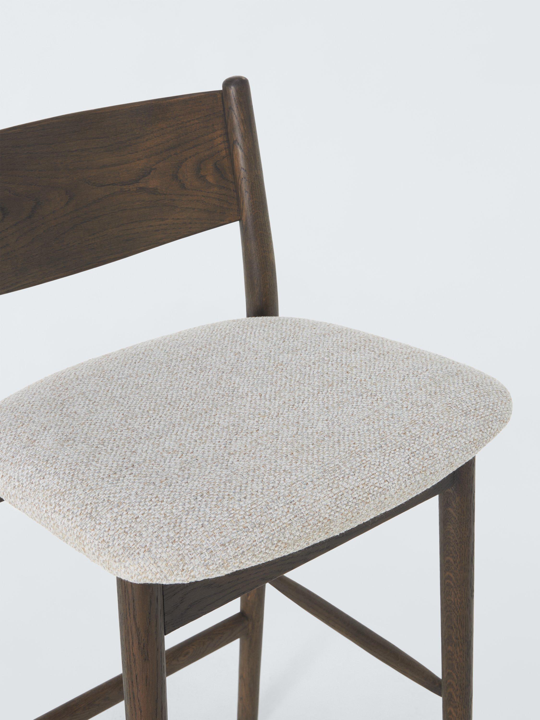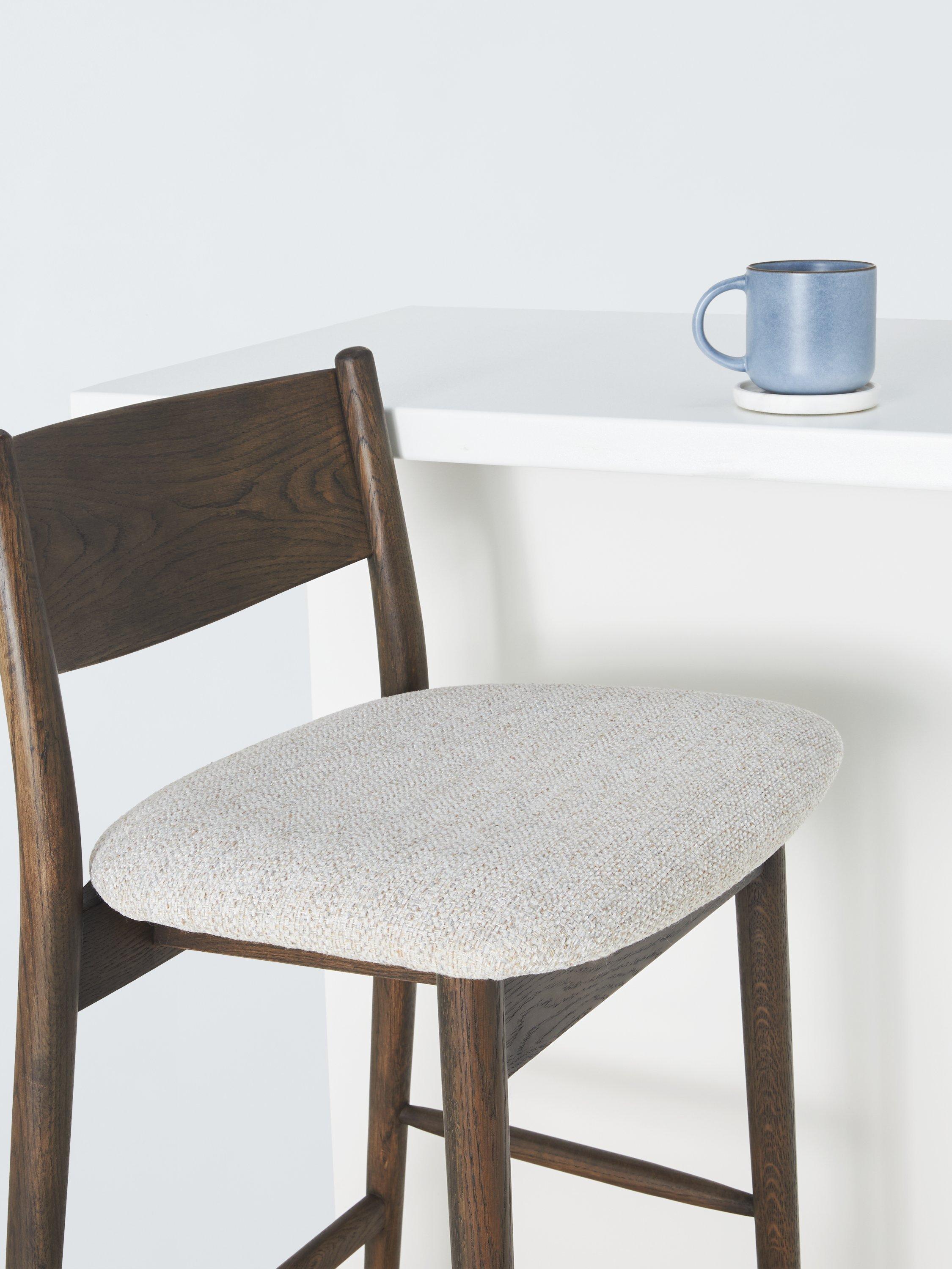 Elevate your kitchen space with the perfect blend of timeless craftmanship and modern comfort. This wooden bar chair is made from solid FSC oak, with a fabric seat, and is designed to bring warmth and elegance to any kitchen.