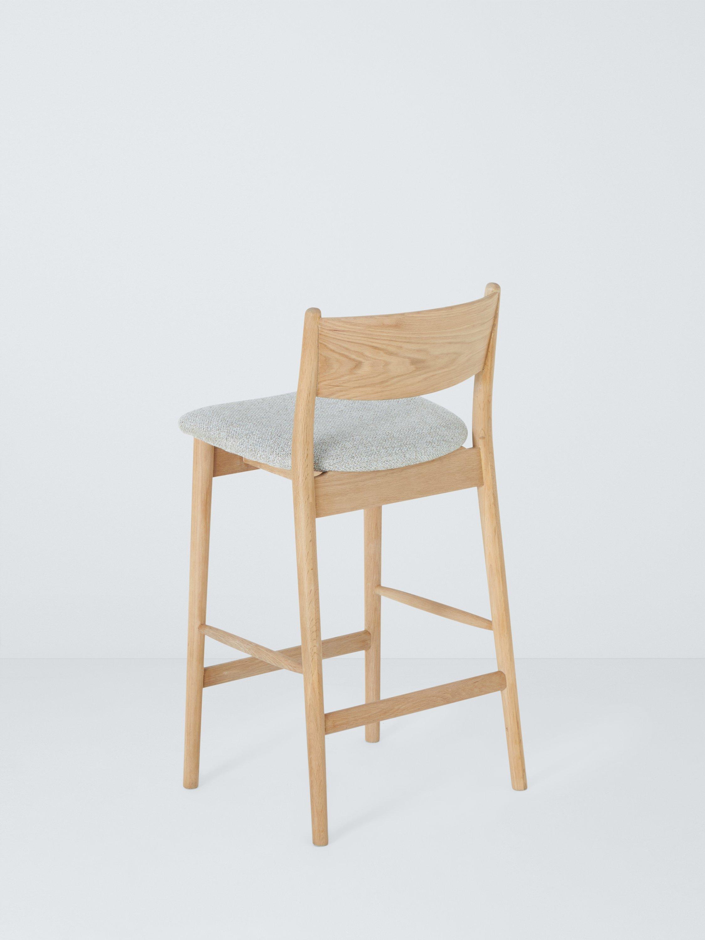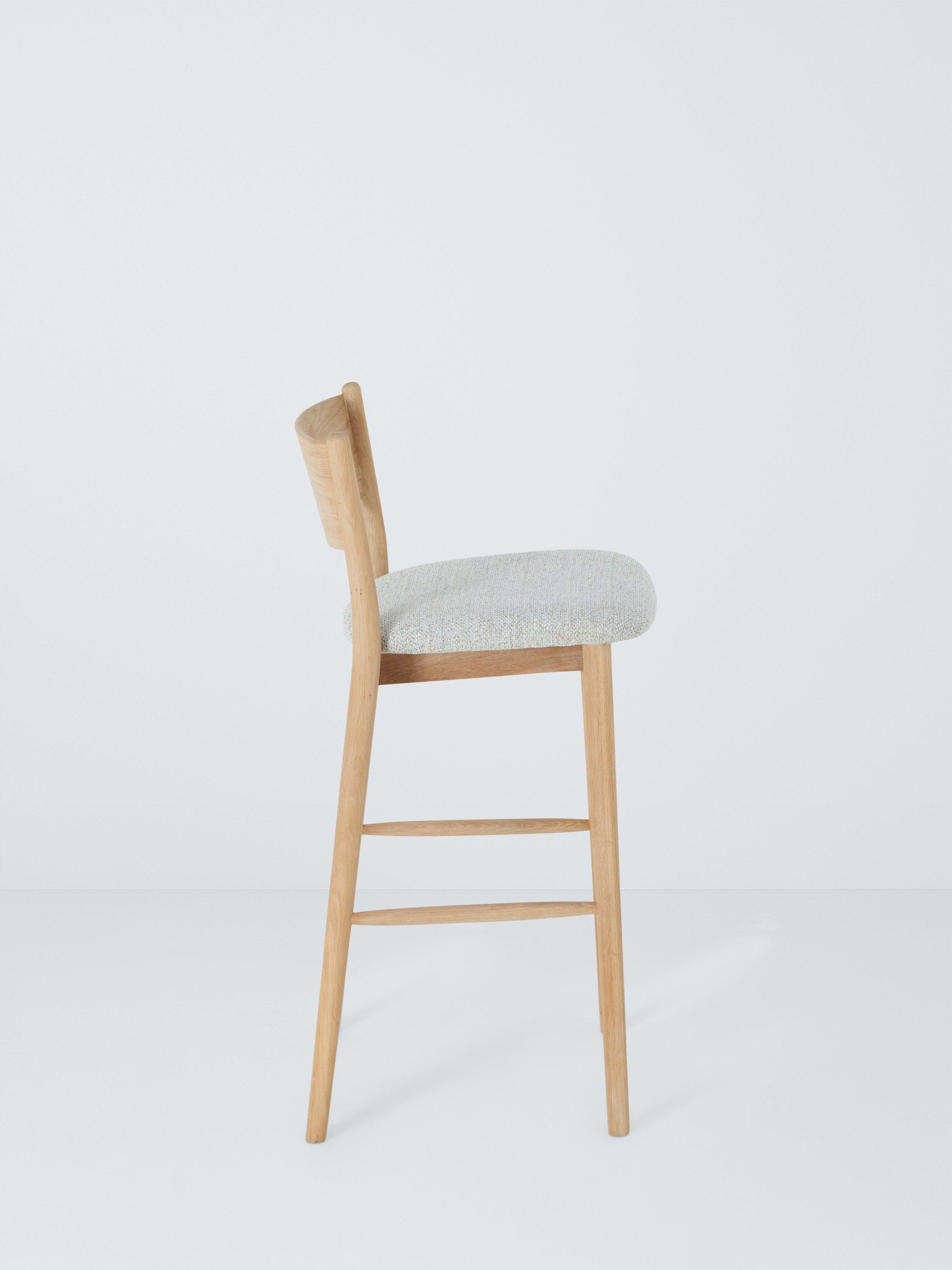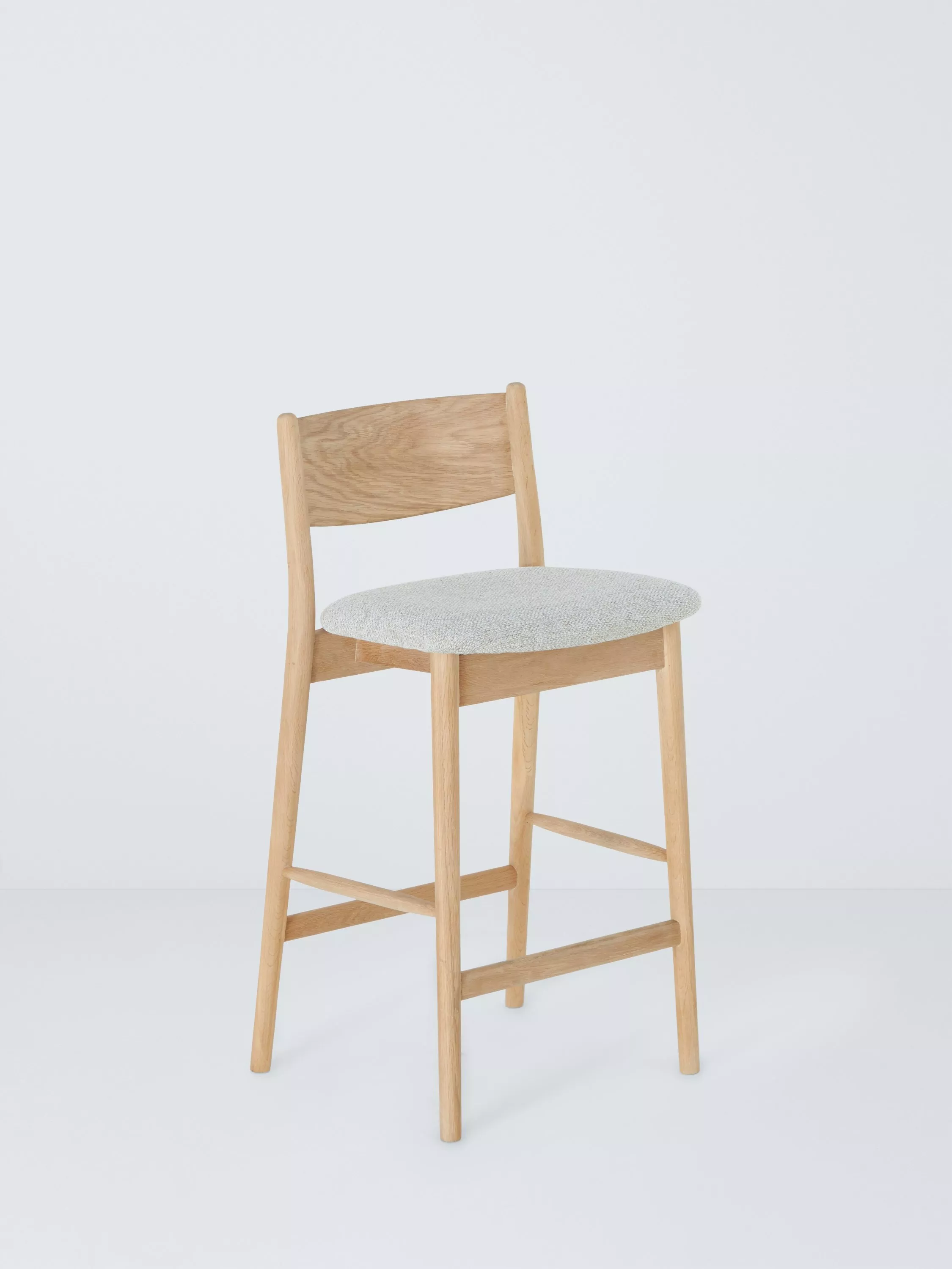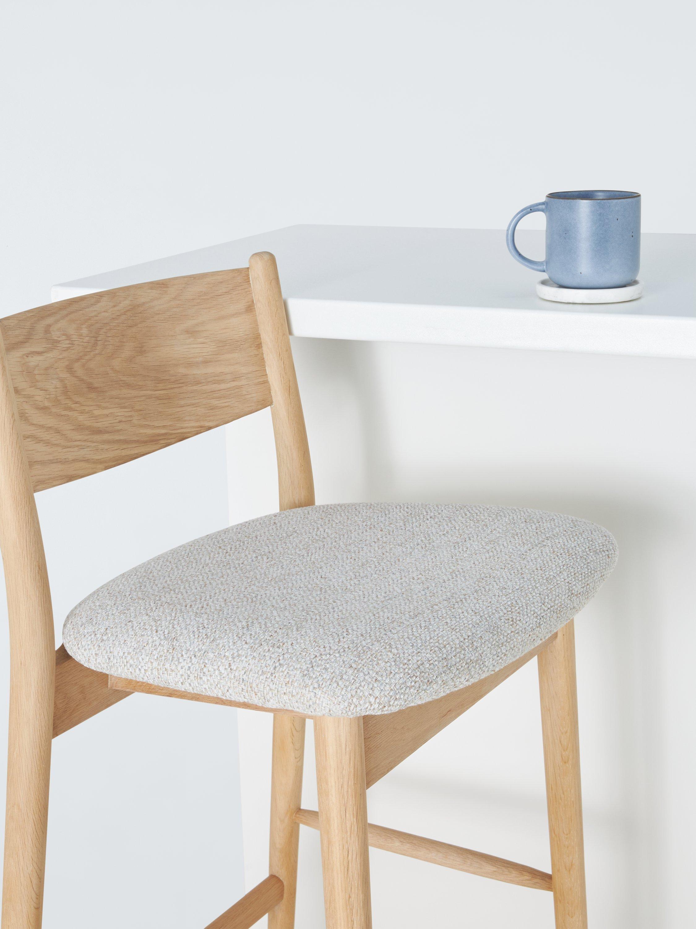 Elevate your kitchen space with the perfect blend of timeless craftmanship and modern comfort. This wooden bar chair is made from solid FSC oak, with a fabric seat, and is designed to bring warmth and elegance to any kitchen.