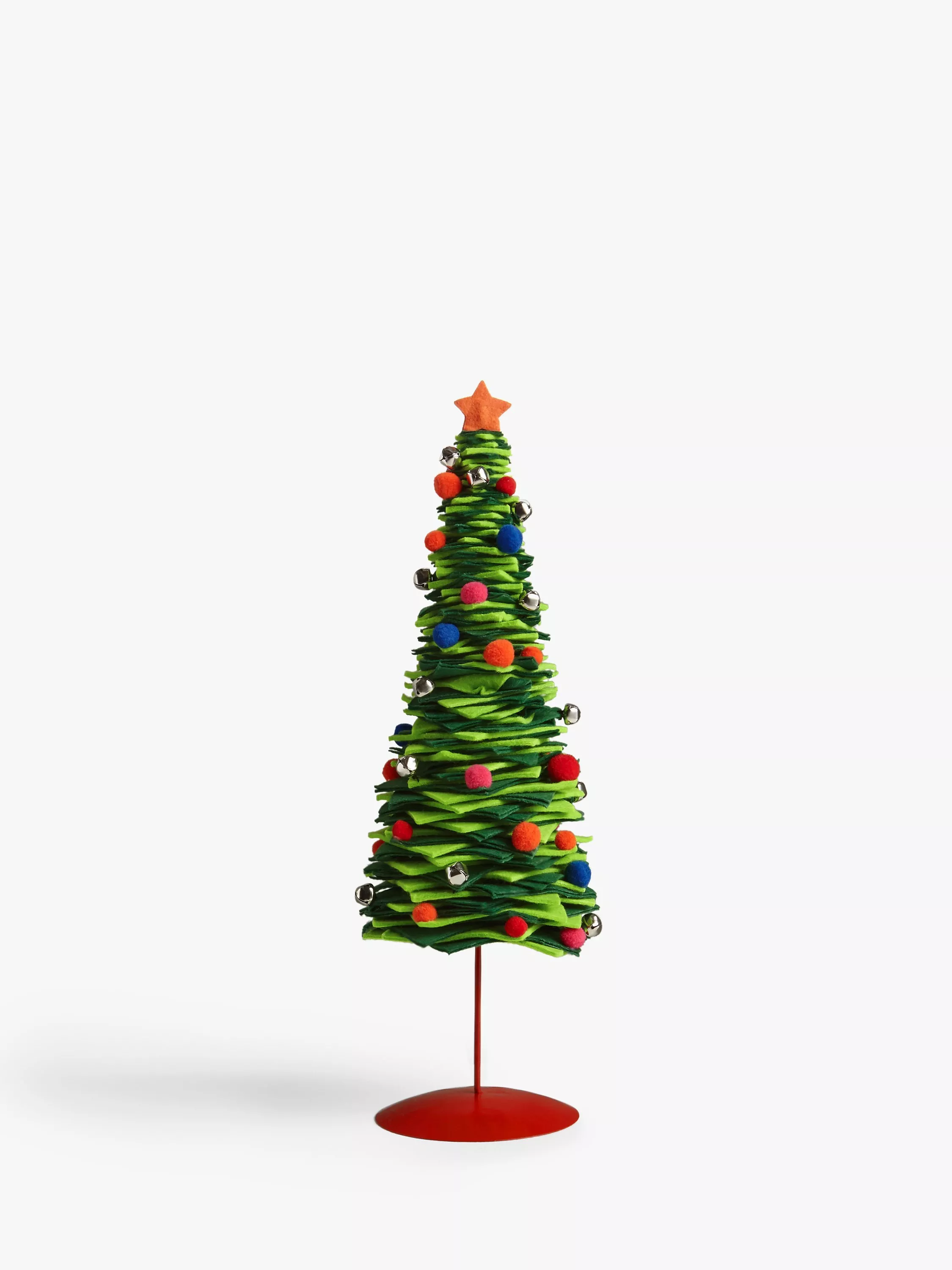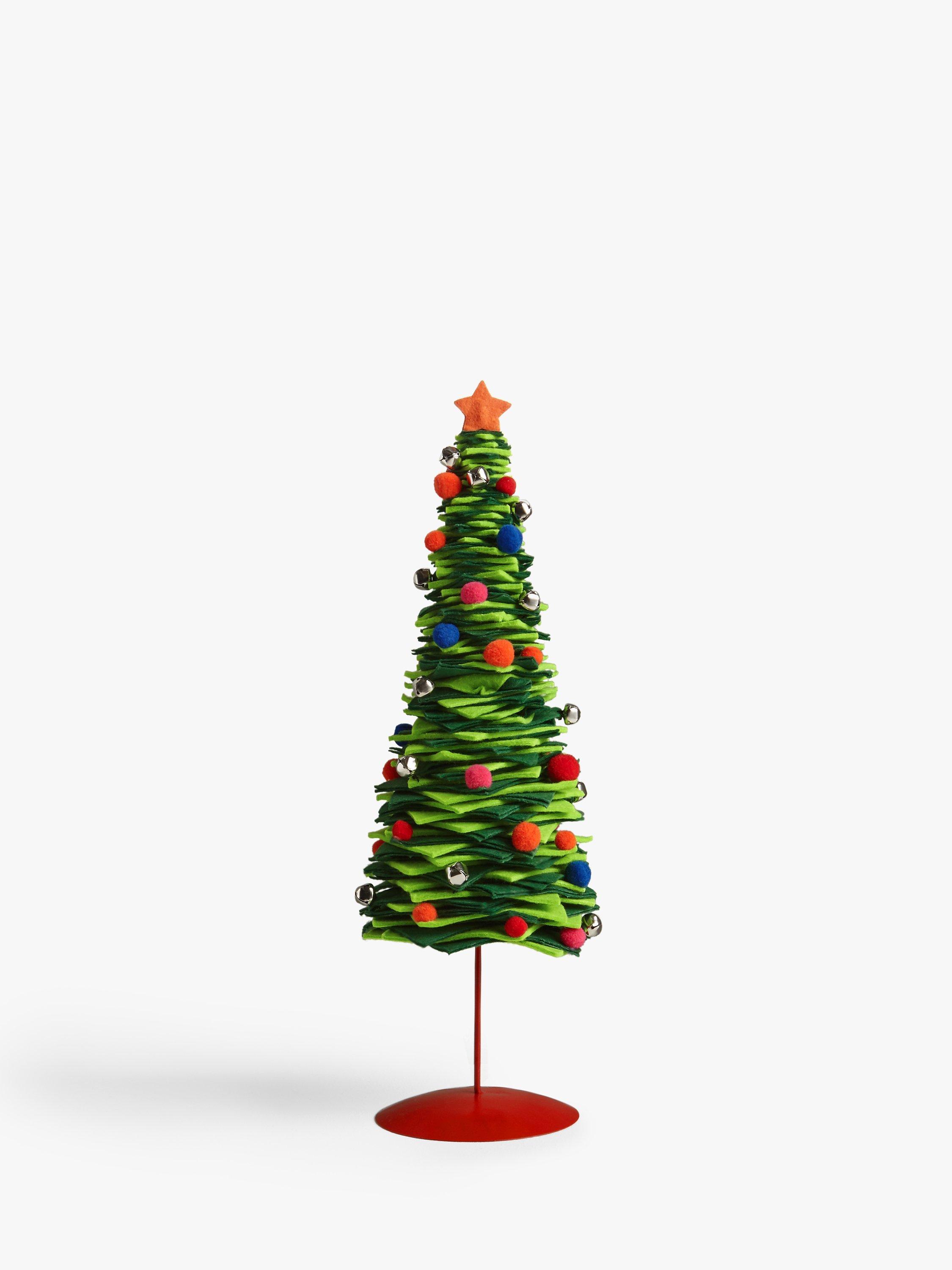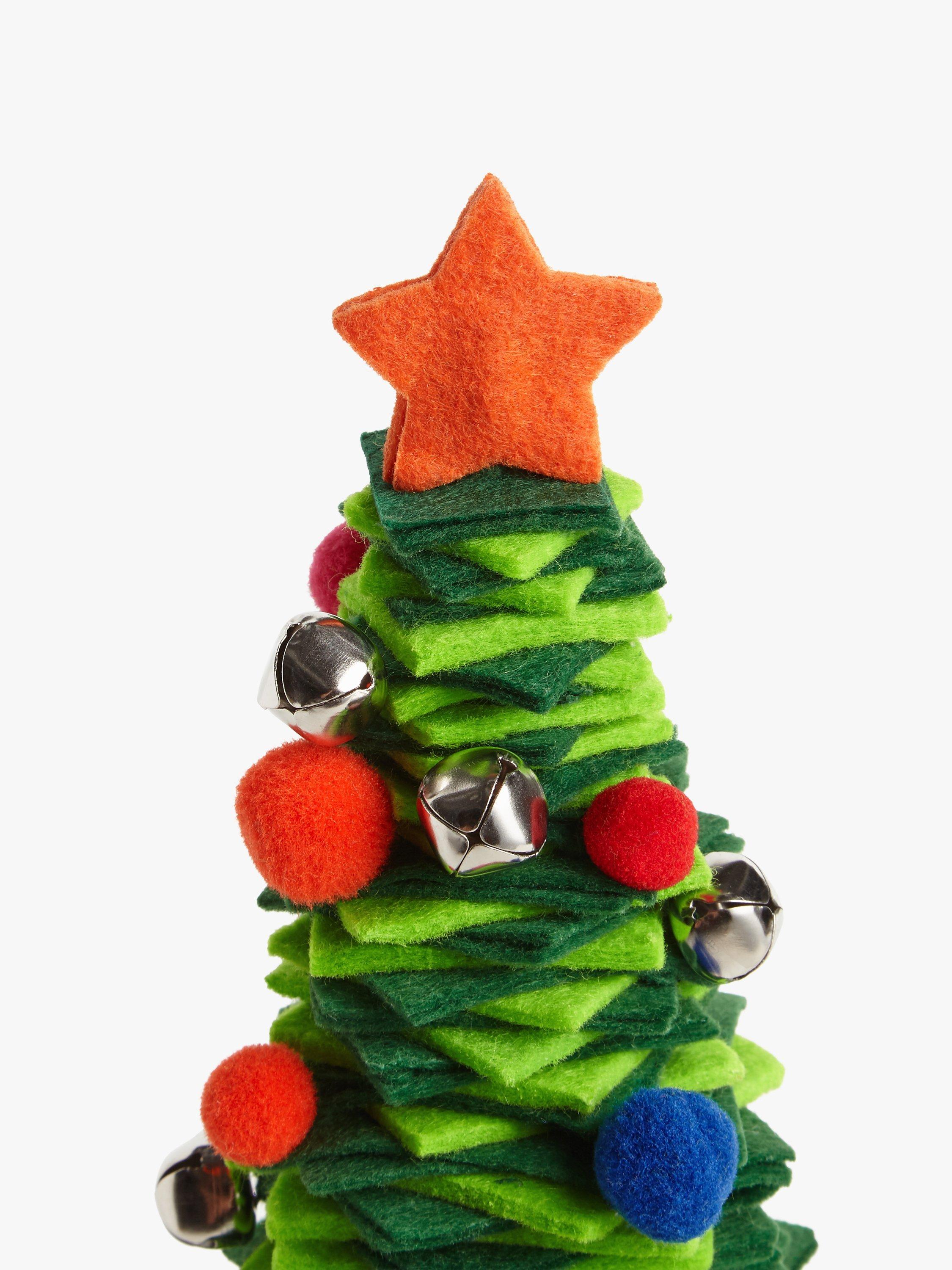 Add contemporary Christmas style with this fun table tree. It's made from stacked felt squares and trimmed with bells and pom poms.