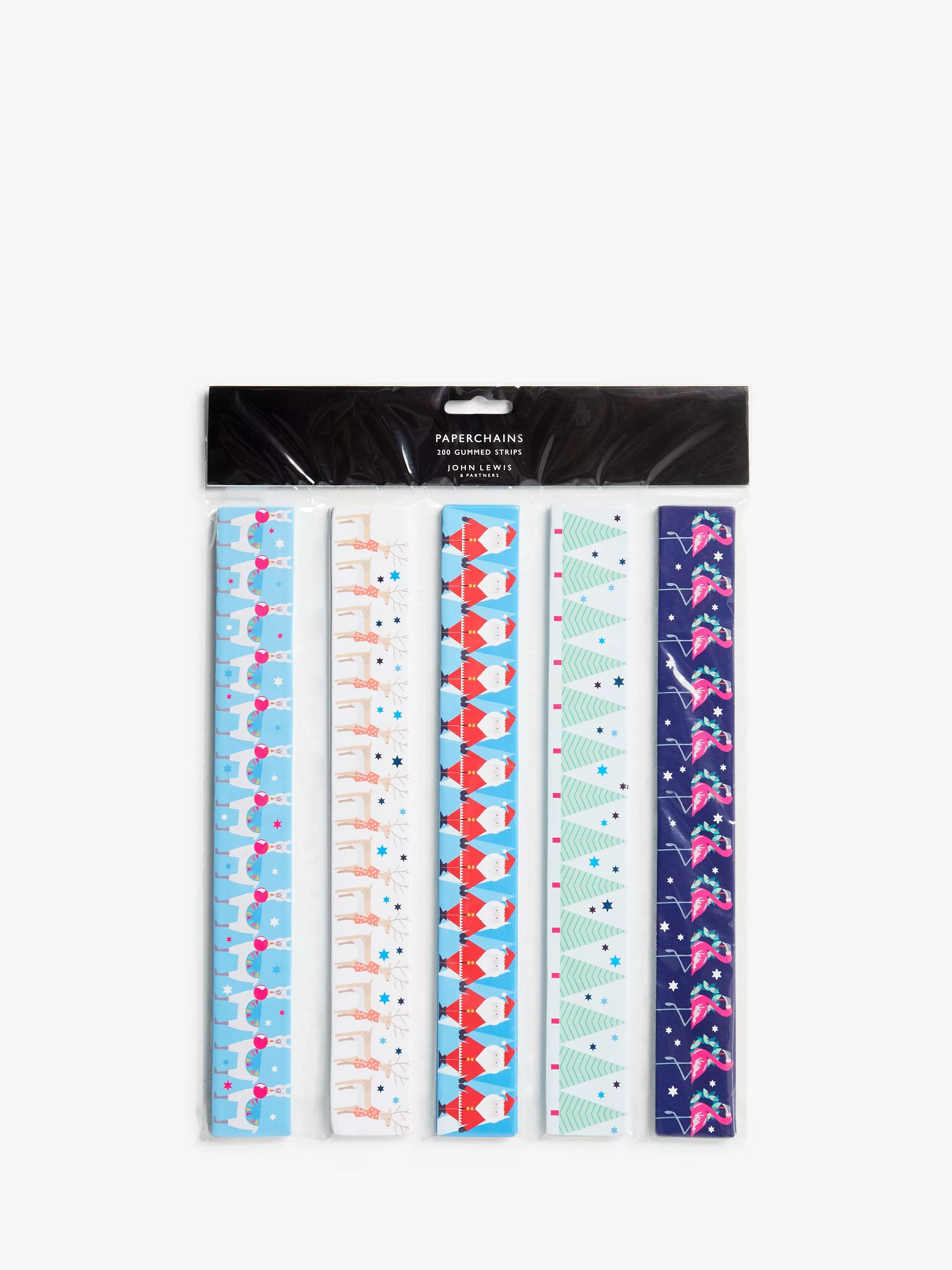 Pack of 200 printed paper chain strips in 5 designs.