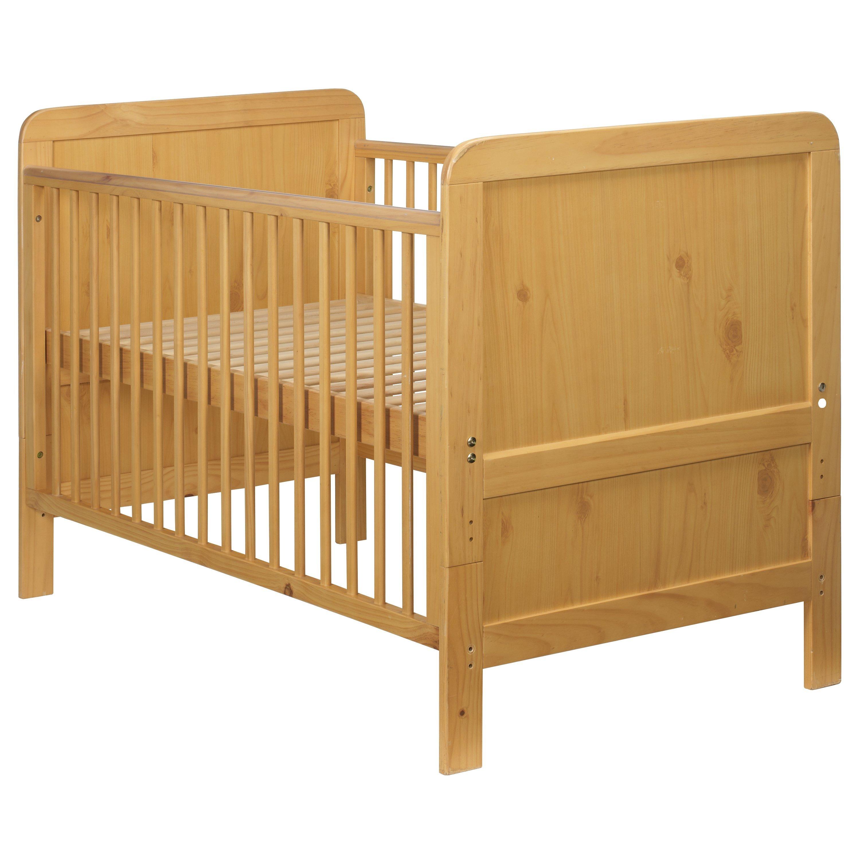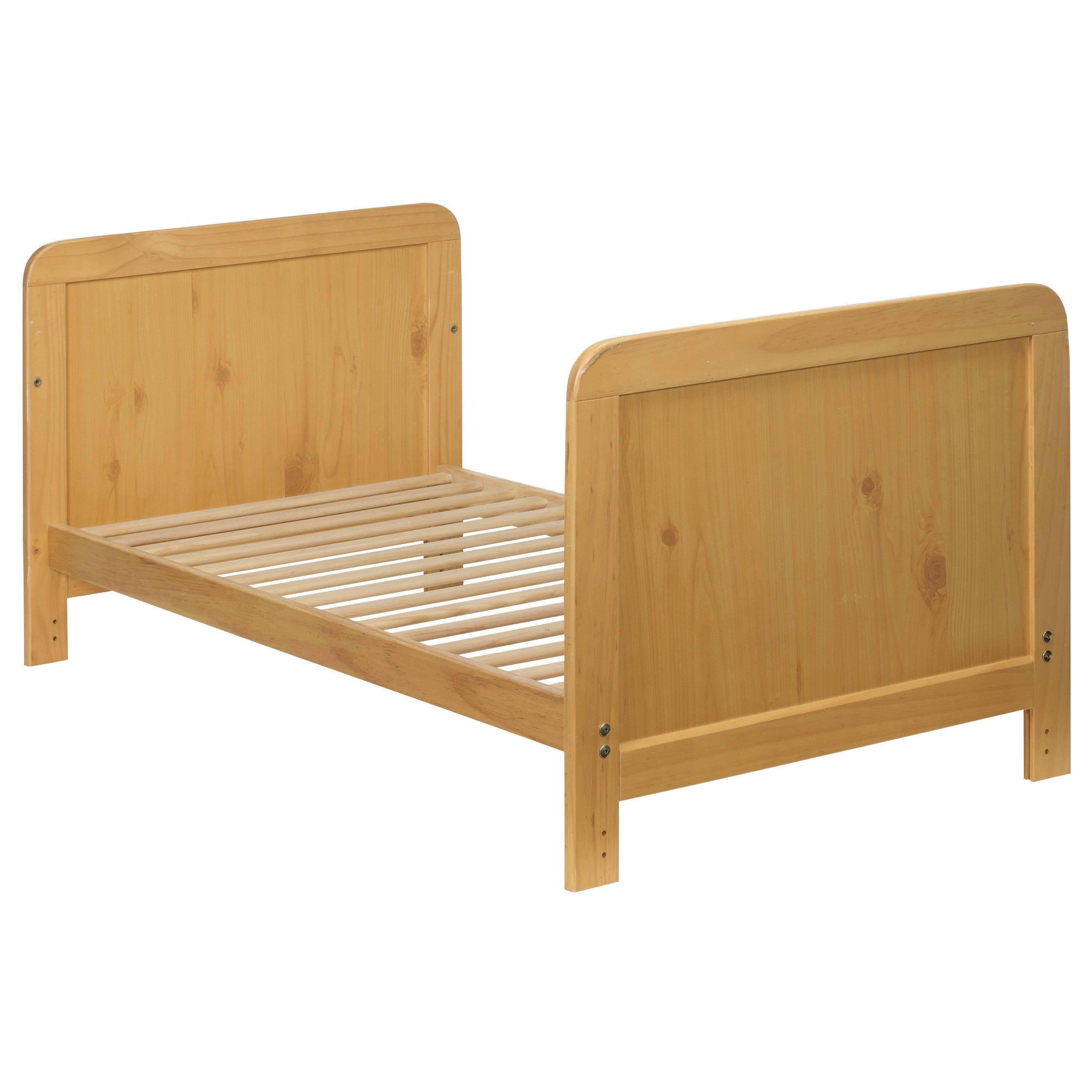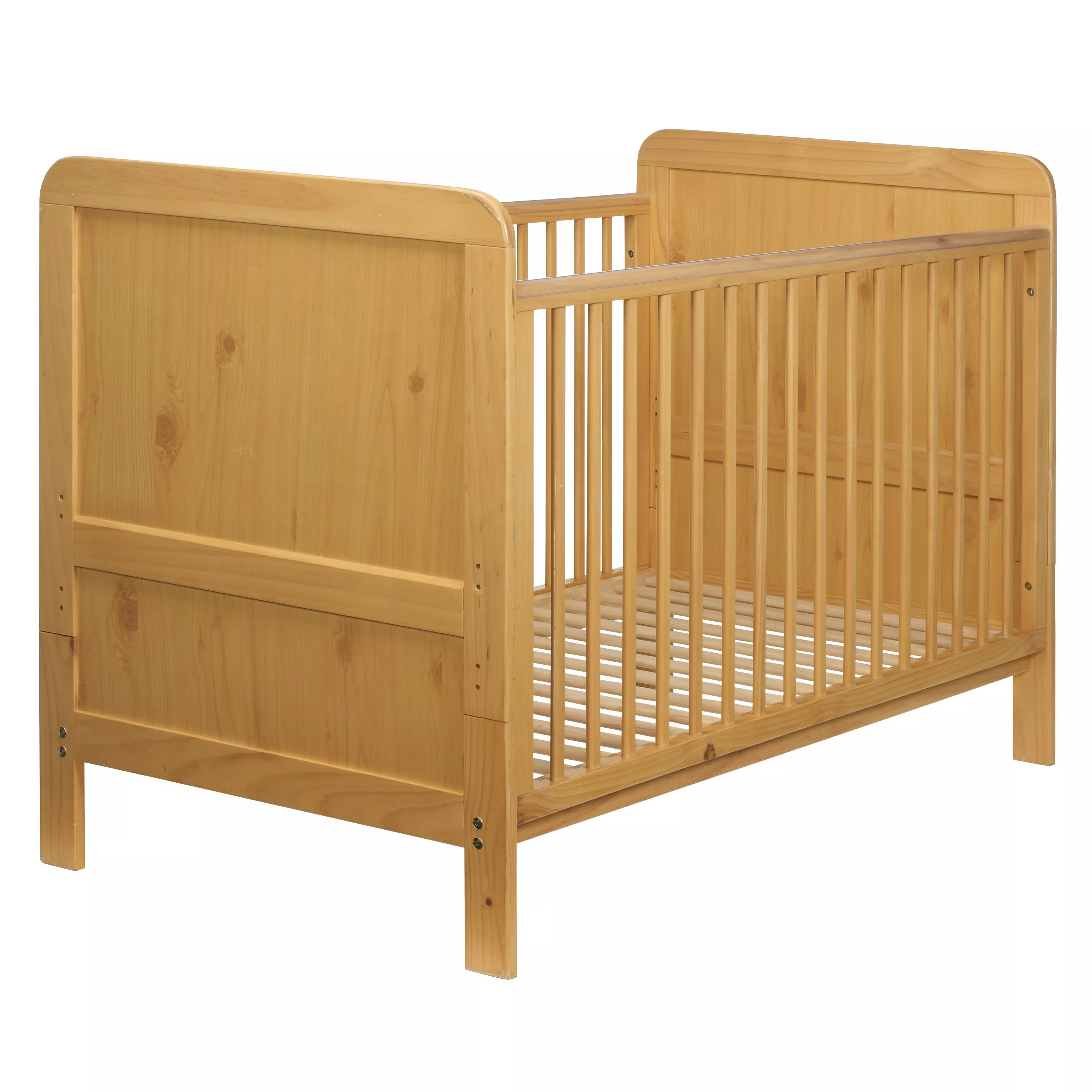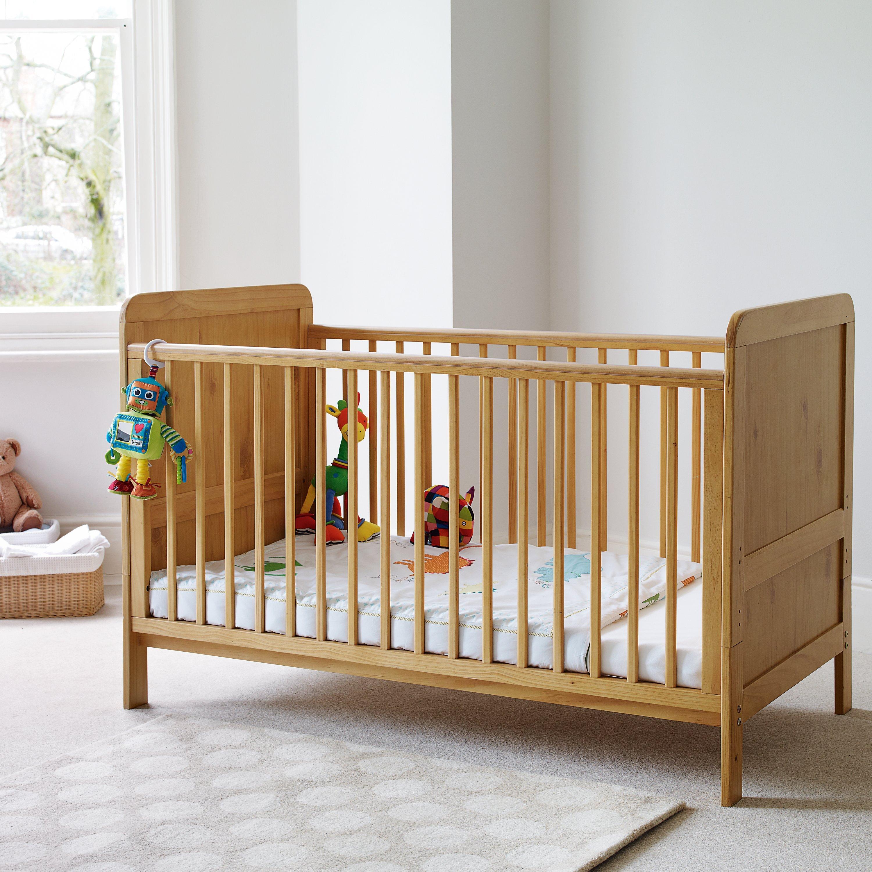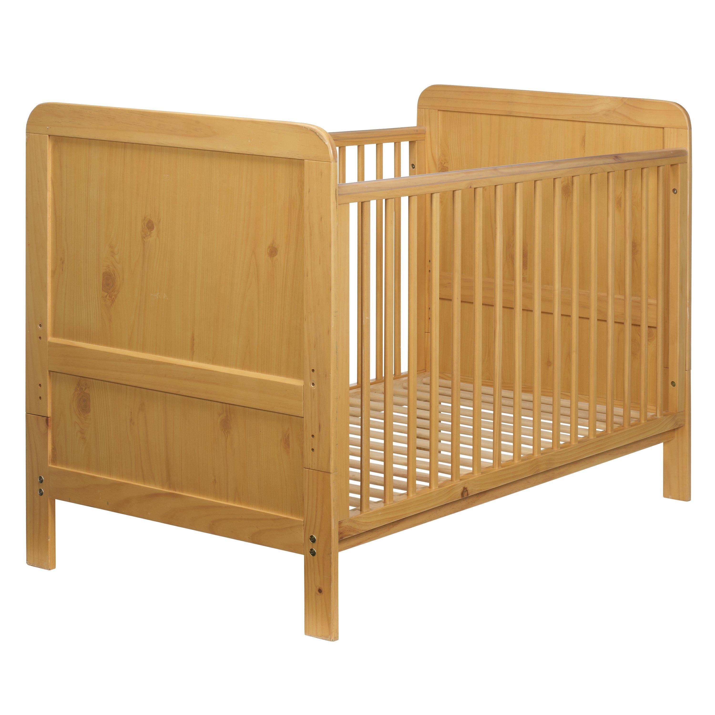 This spacious cot bed is made from solid pine and MDF. It can easily be converted to a junior bed by removing the side rails and dividing the foot end, offering three adjustable base positions.