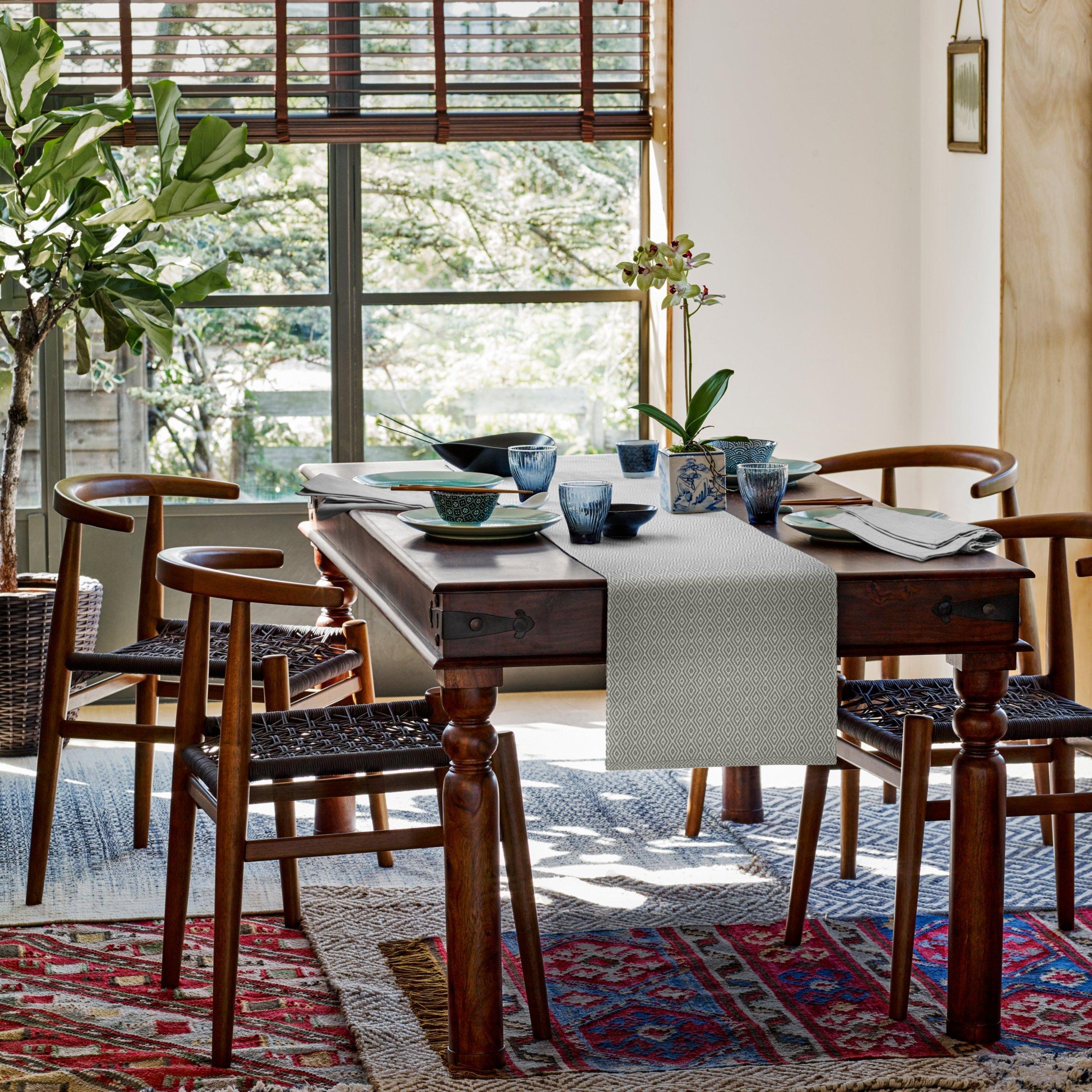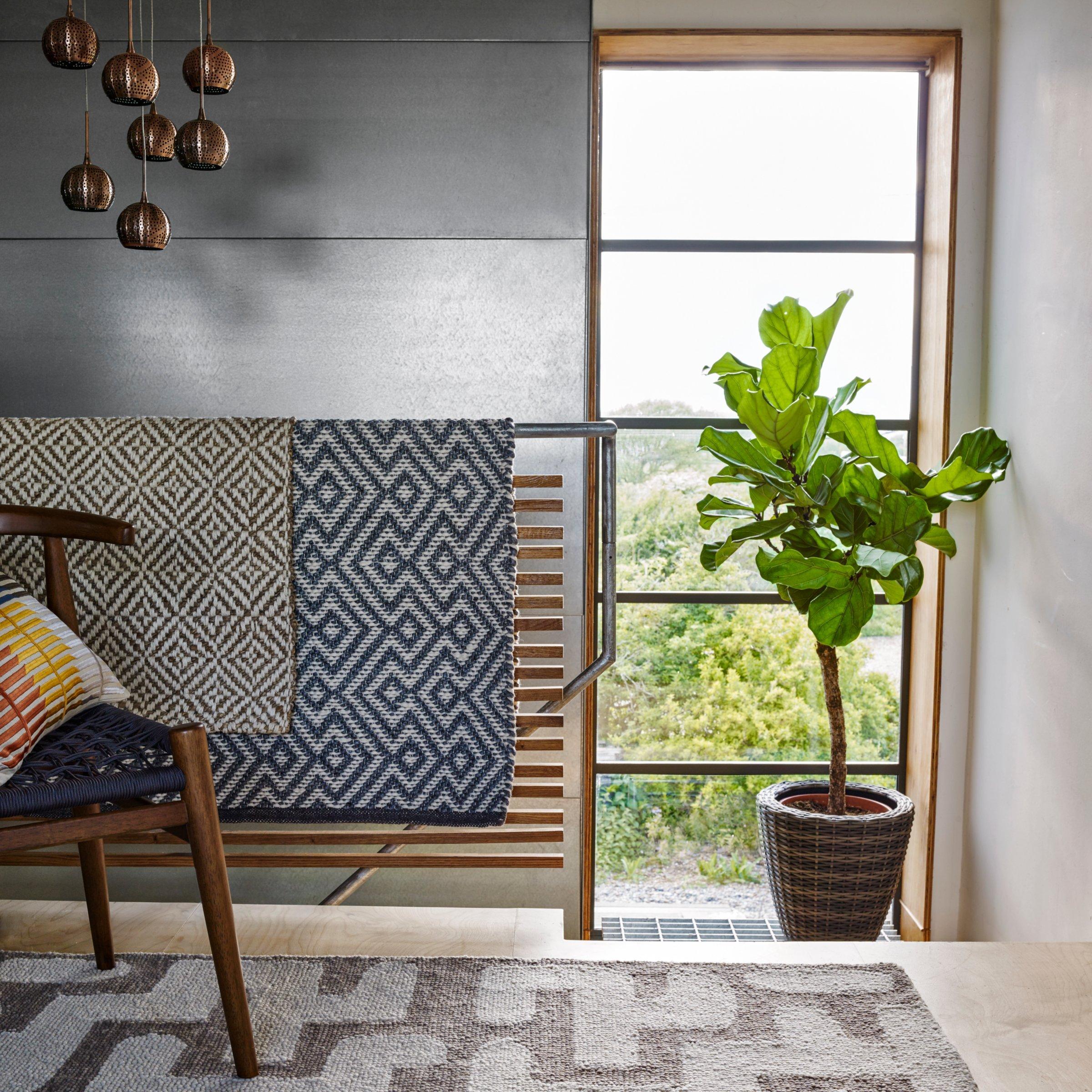 Lend your home a contemporary touch that draws in far-eastern influences with our Amreli rug. Available in two different tones, the rug is hand loomed in India by expert artisans, crafting a weave that is durable yet stylish. The unusual zig zag pattern is swallowed by a diamond-like pattern on one side of the piece, making it a real statement rug. Available in runner form for hallways, entrances or places that just require a touch of texture.