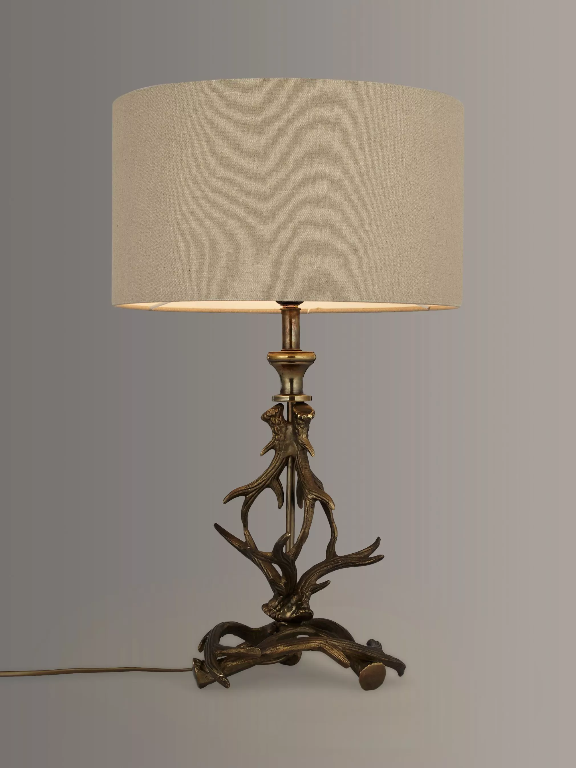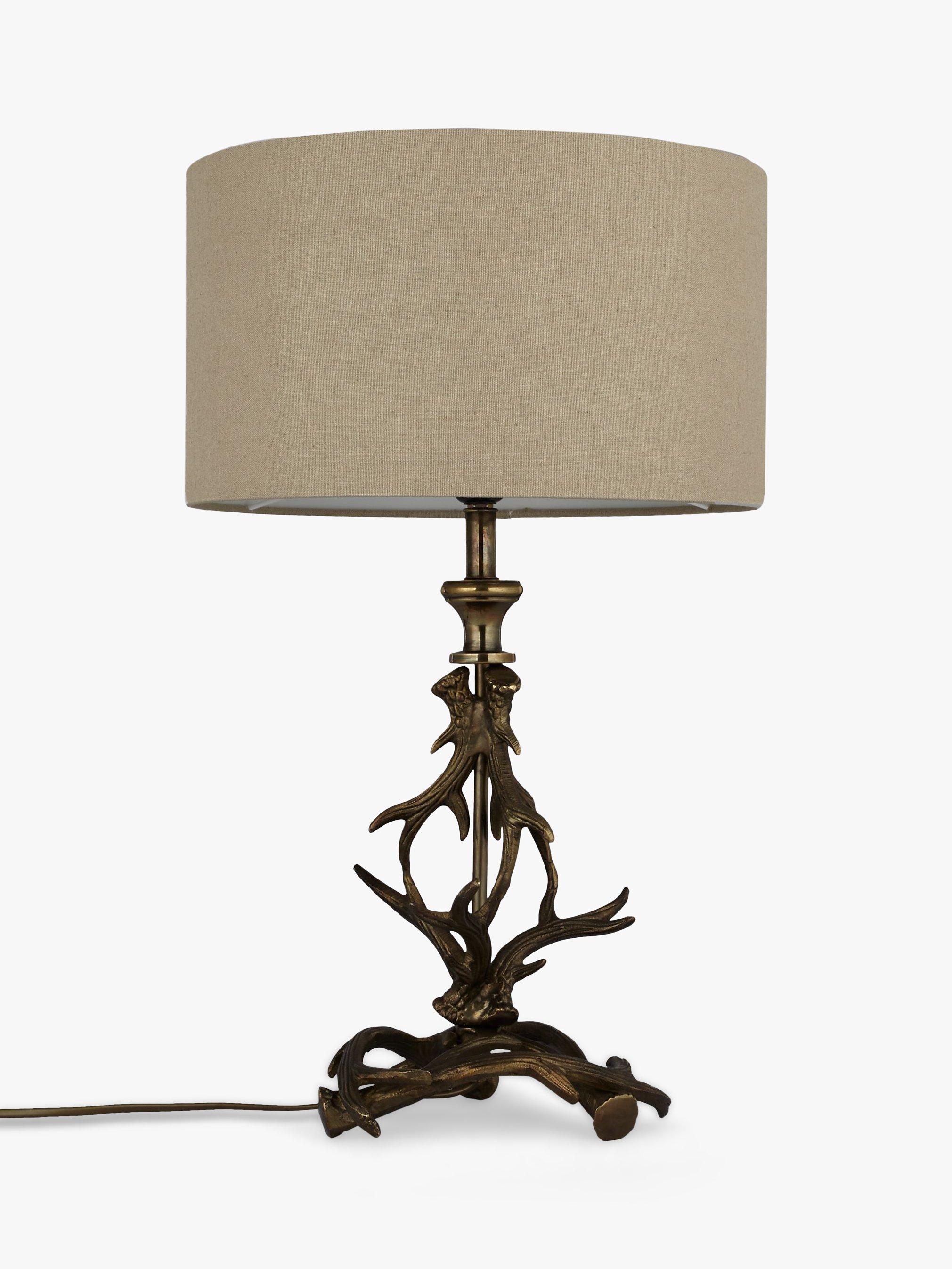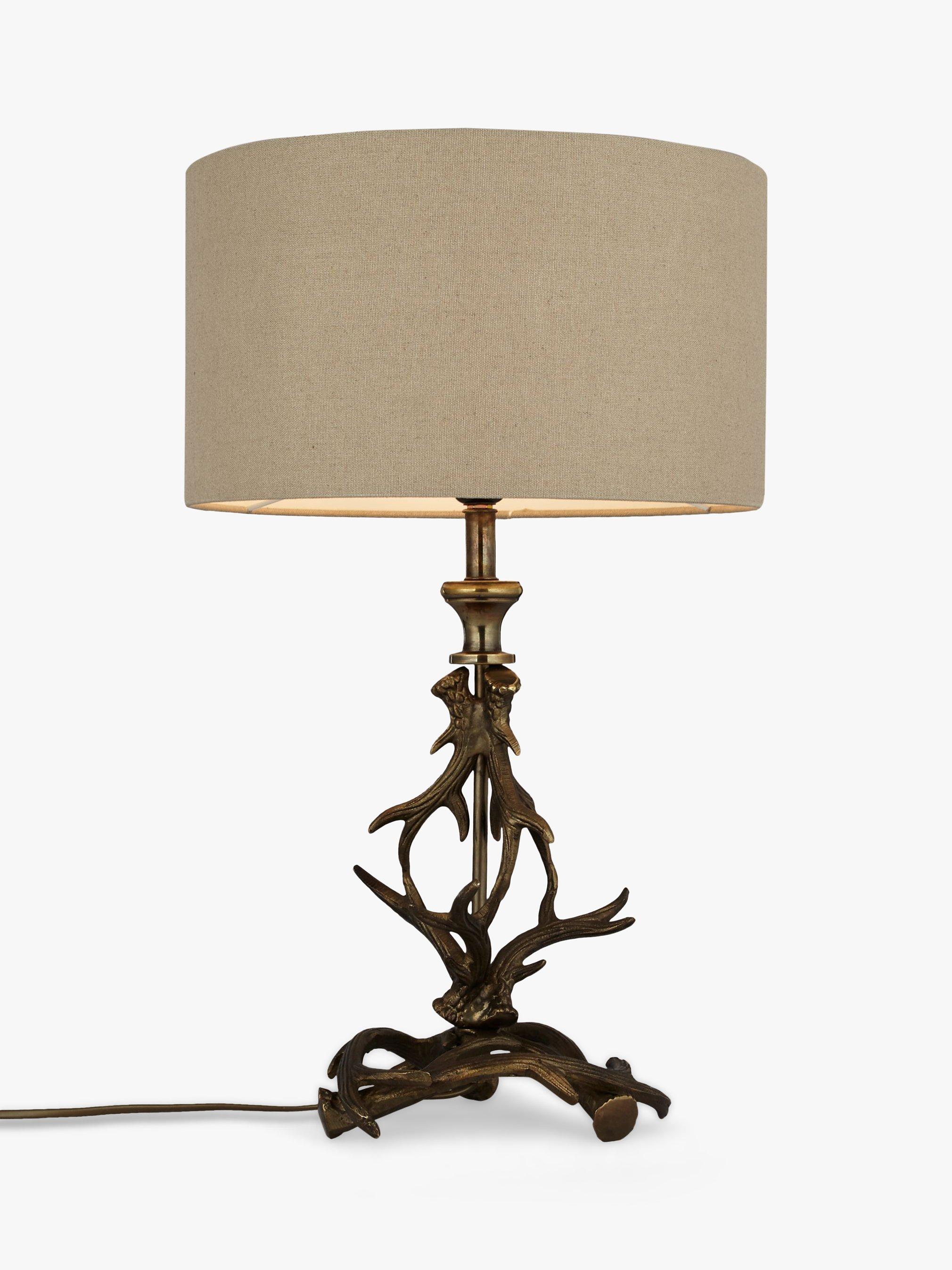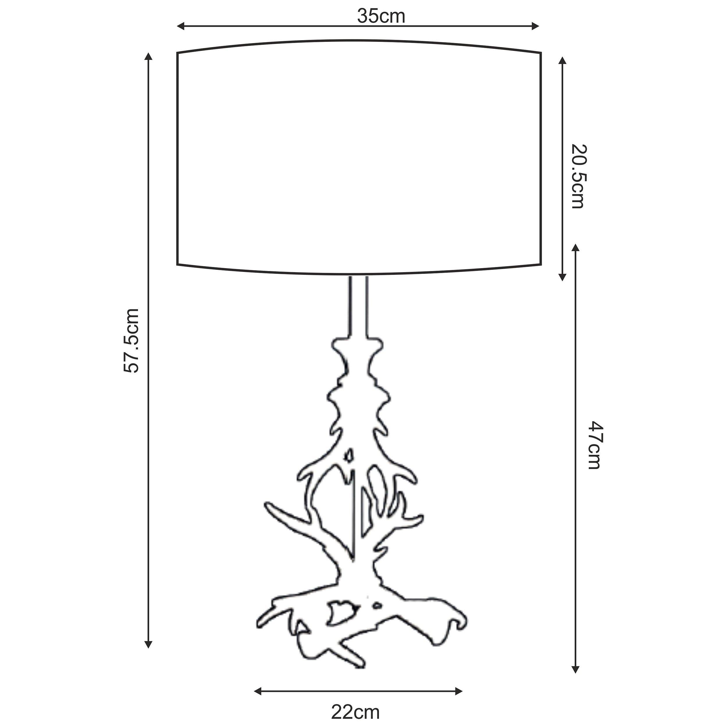 A modern take on country style, this unique table lamp takes inspiration from a stag's antlers. Topped with a neutral cylinder shade which emanates a warm glow when lit, it will make a real statement piece for your table tops.