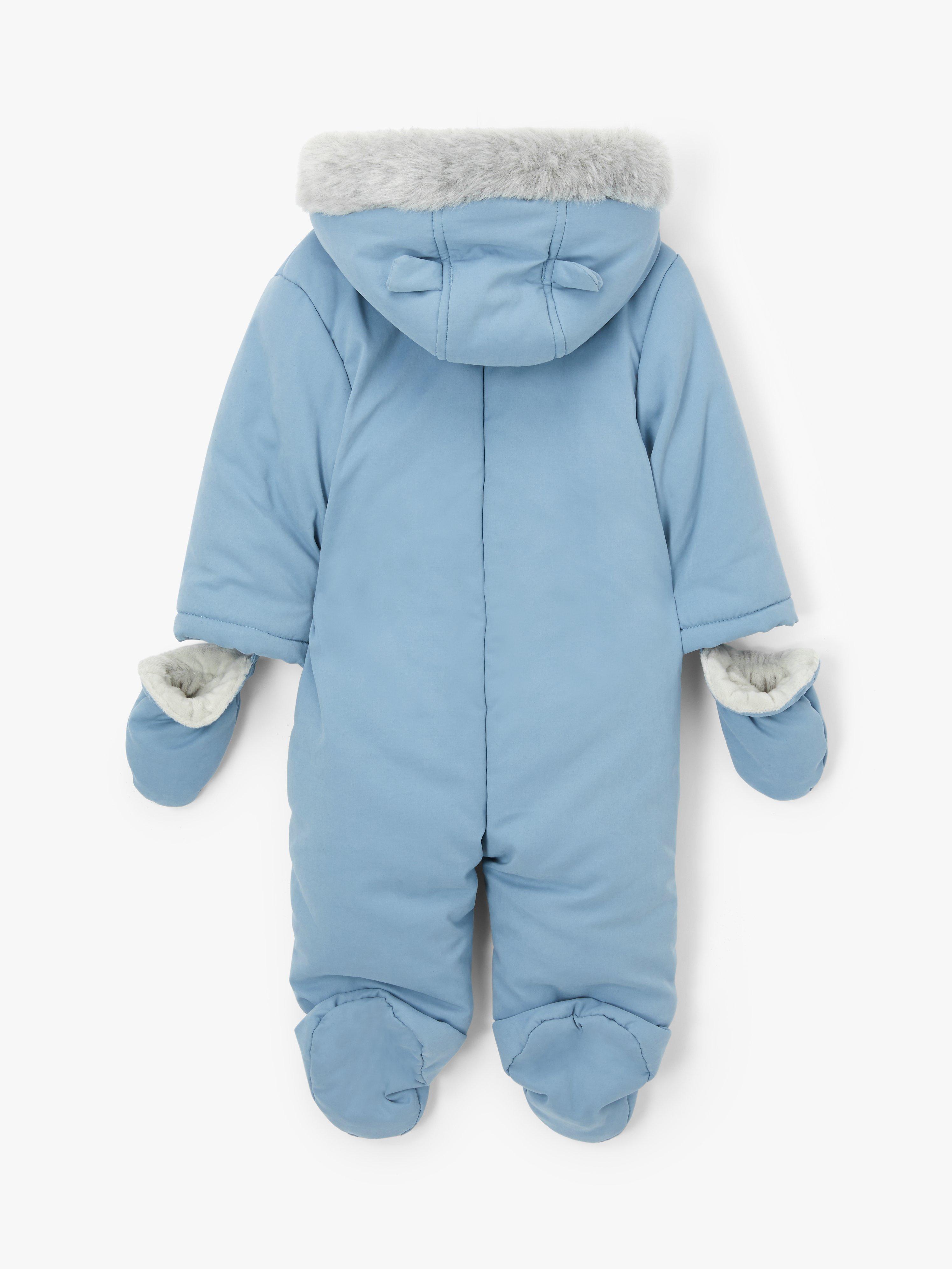 The adorable snowsuit has cute ears on the hood and a cosy faux fur trim. Detachable mitts will keep little ones warm, while the showerproof finish will help keep them dry.