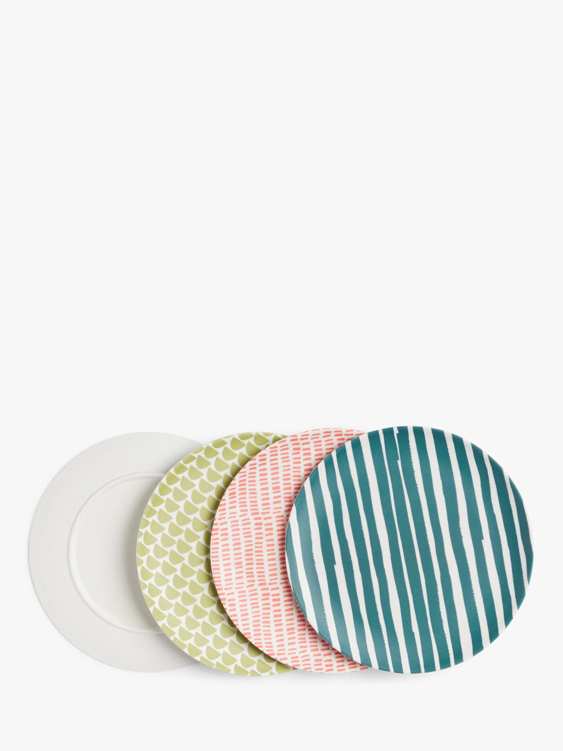 John Lewis & Partners Bamboo Patterned Side Plates, Set of 4, 20cm, Assorted