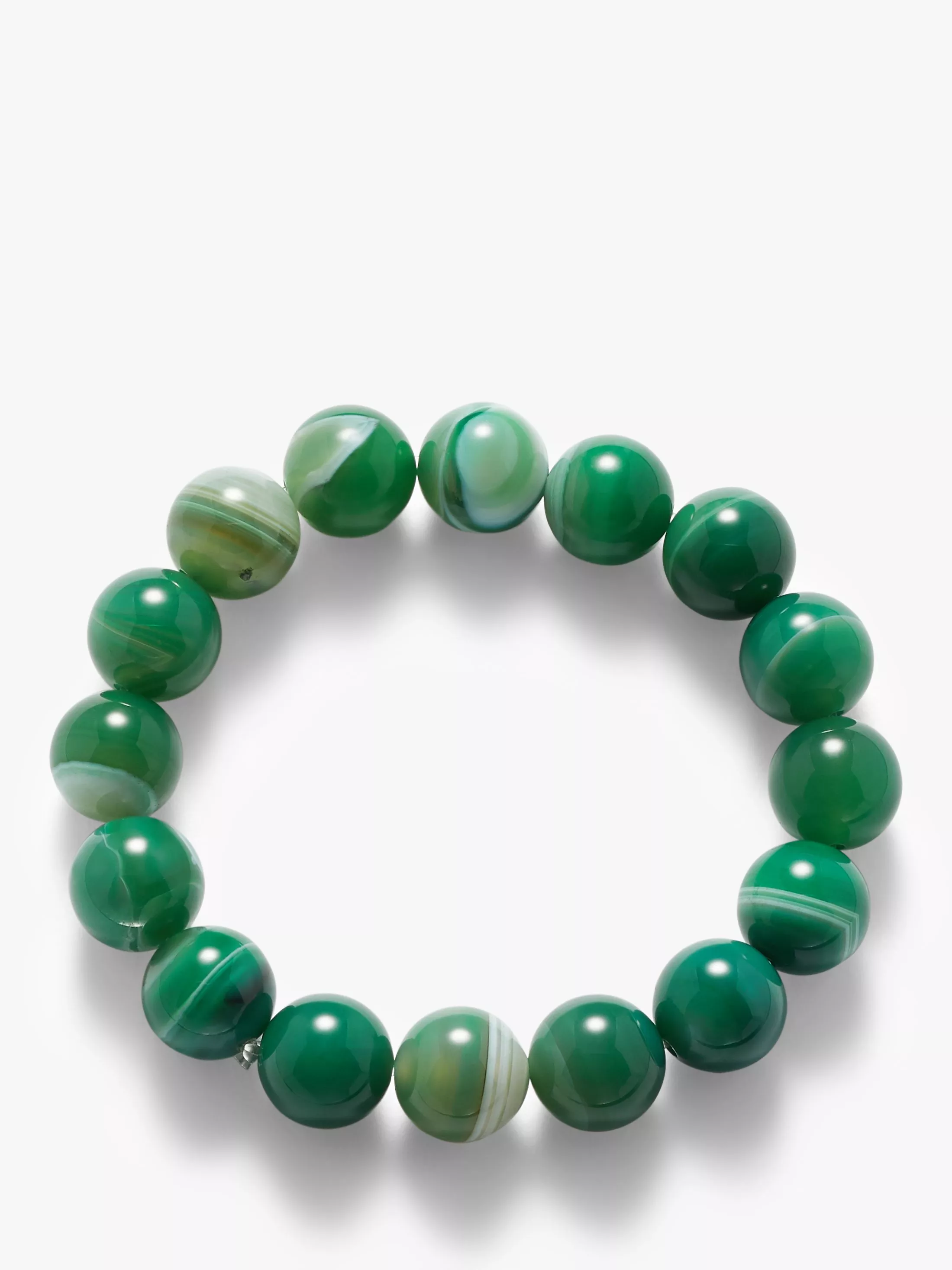 John Lewis & Partners Beaded Agate Stretch Bracelet, Green