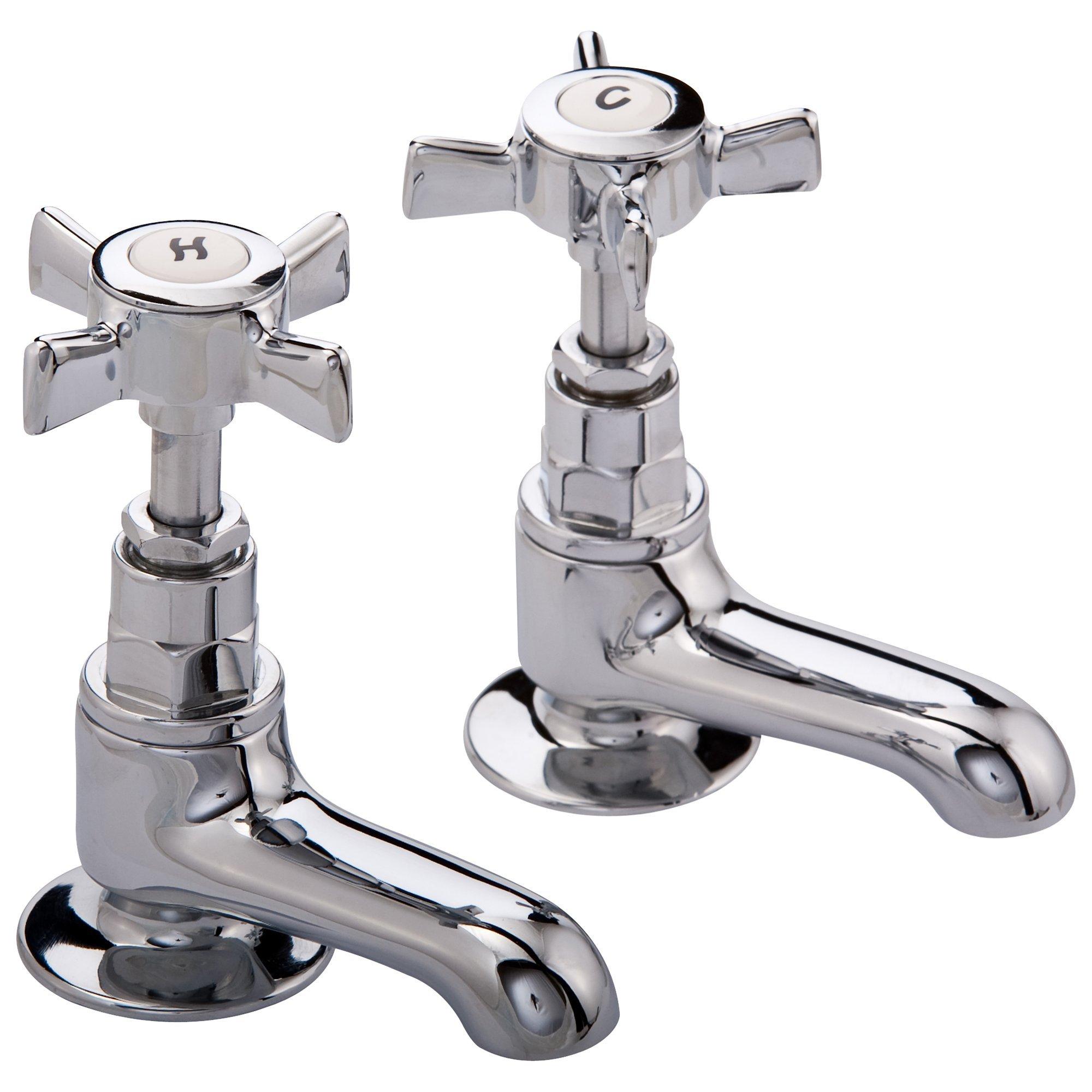 These traditional taps boast subtle Edwardian design. They have metal construction throughout and a compression valve for maximum durability and flow. Custom designed for lower pressure they have four spoke levers and hexagonal styling cues. An antisplash spout is supplied as standard.