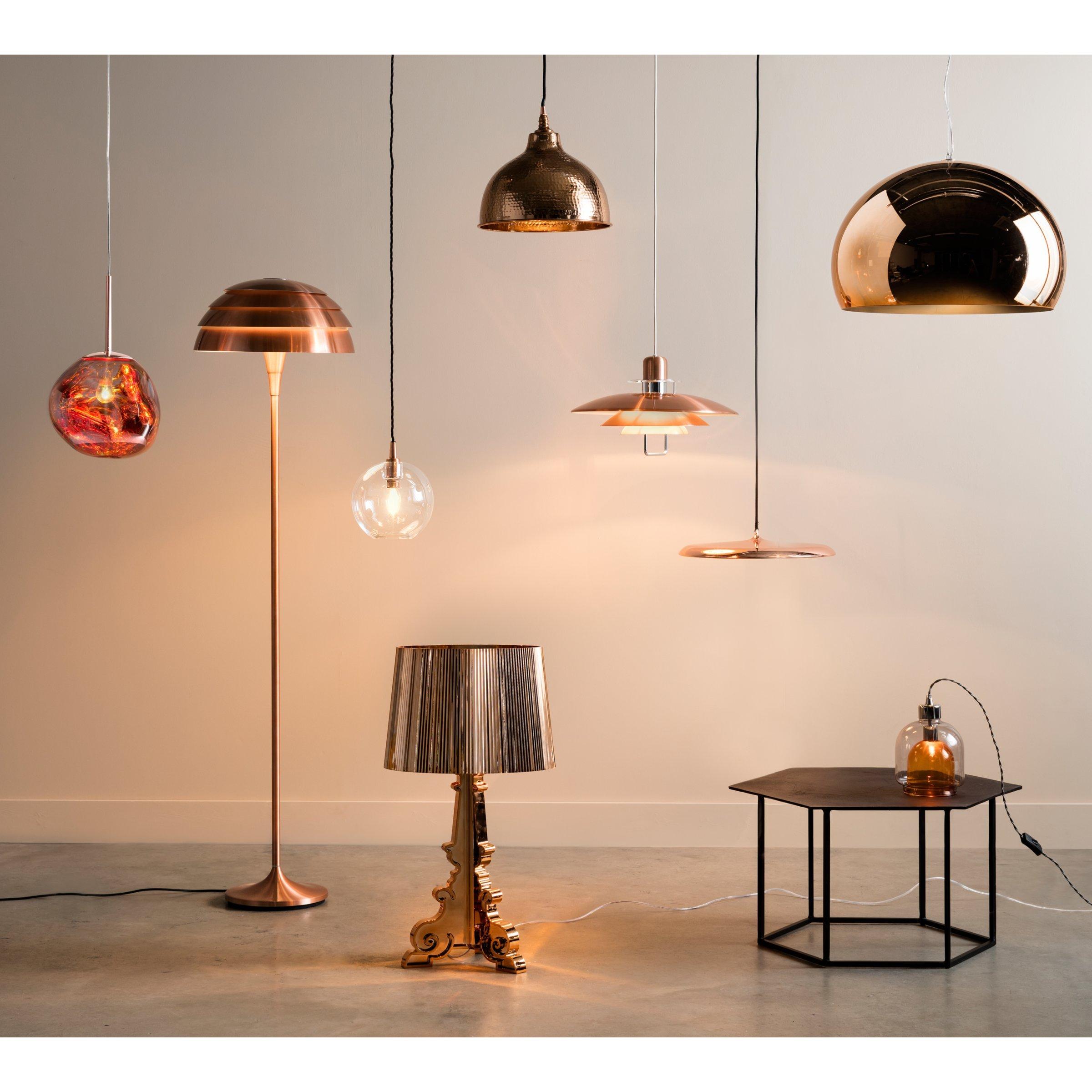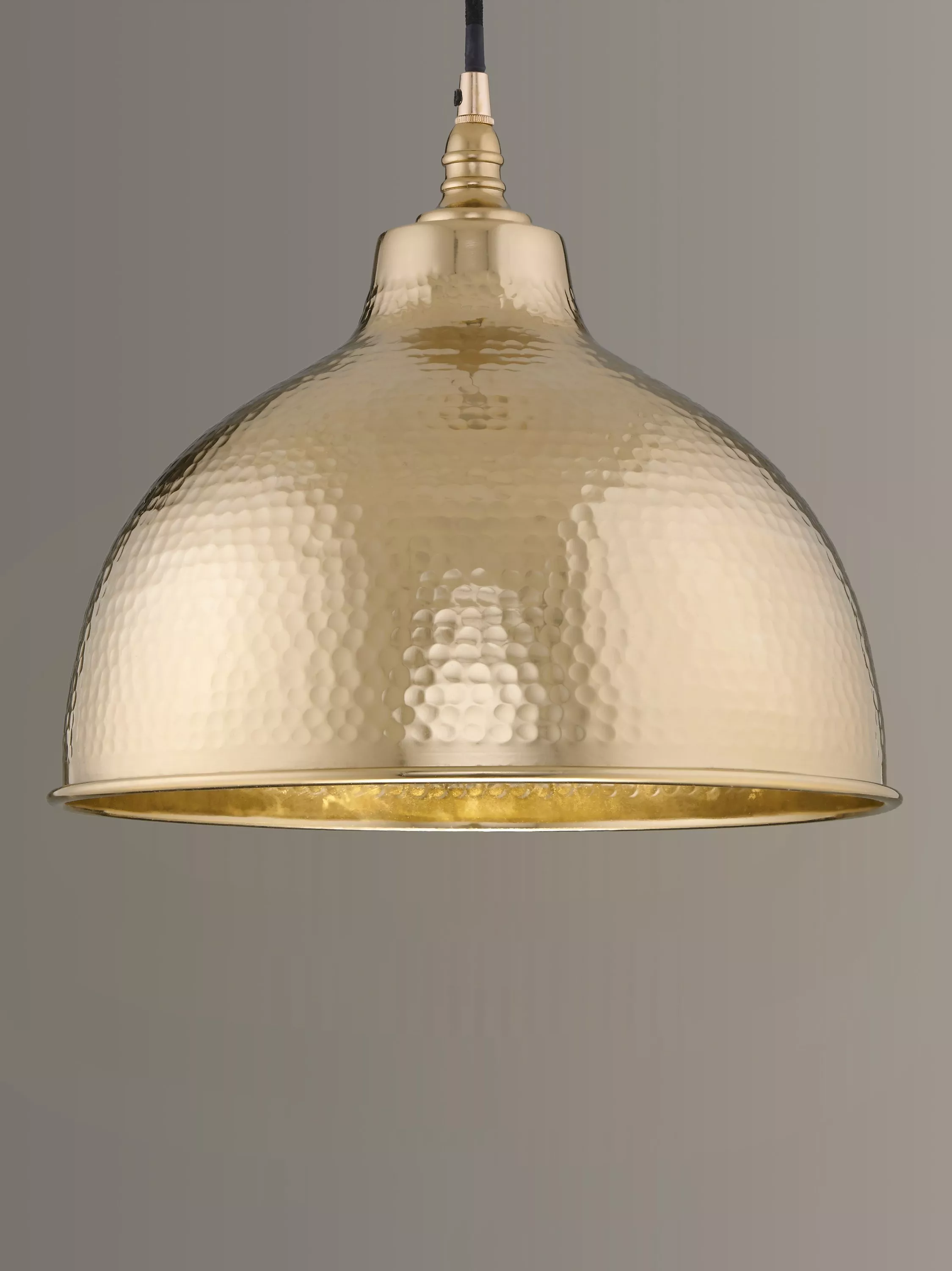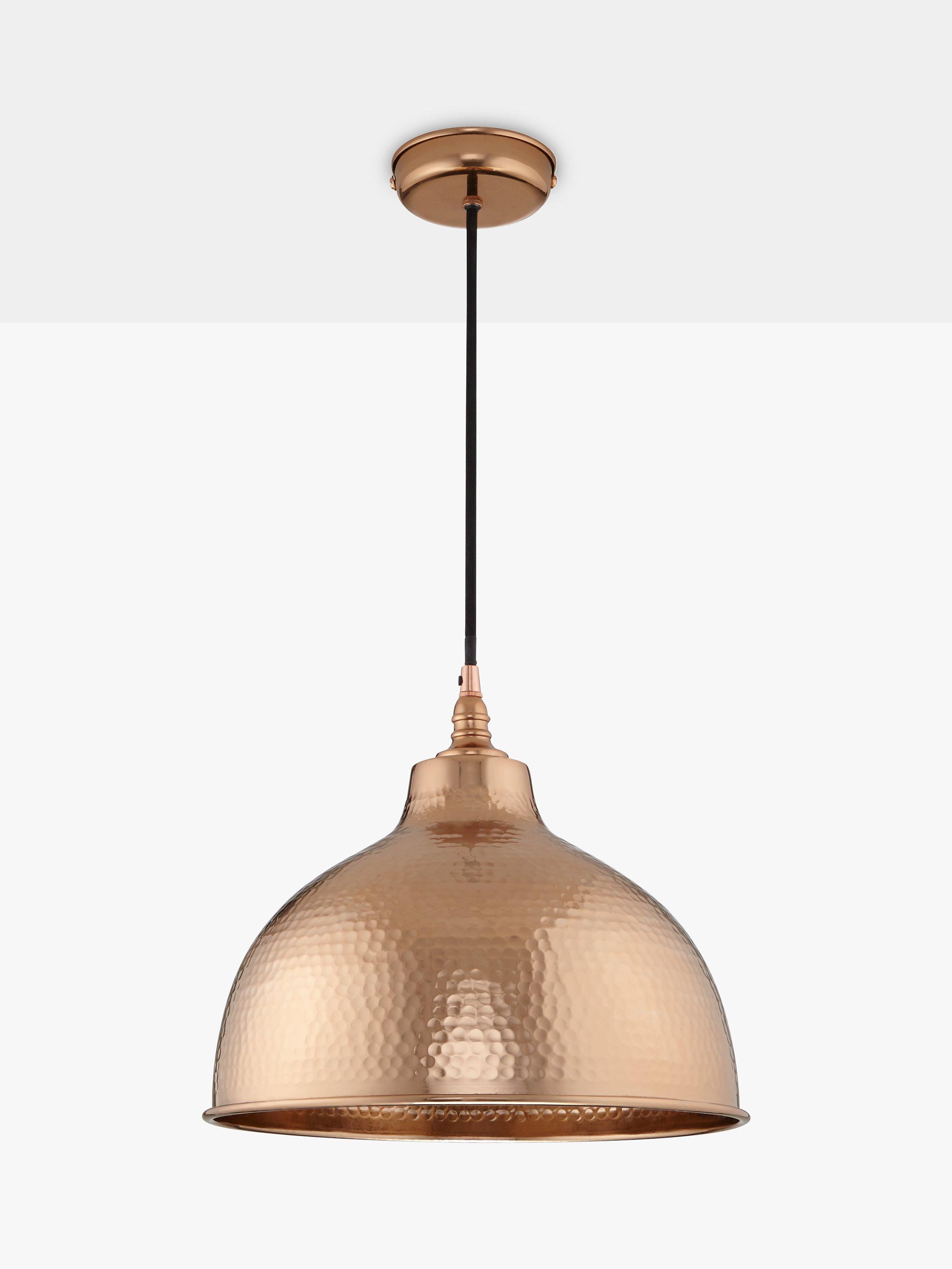 The charming Bolu pendant shade features hand beaten copper plated aluminium, complete with a black braided fabric flex.