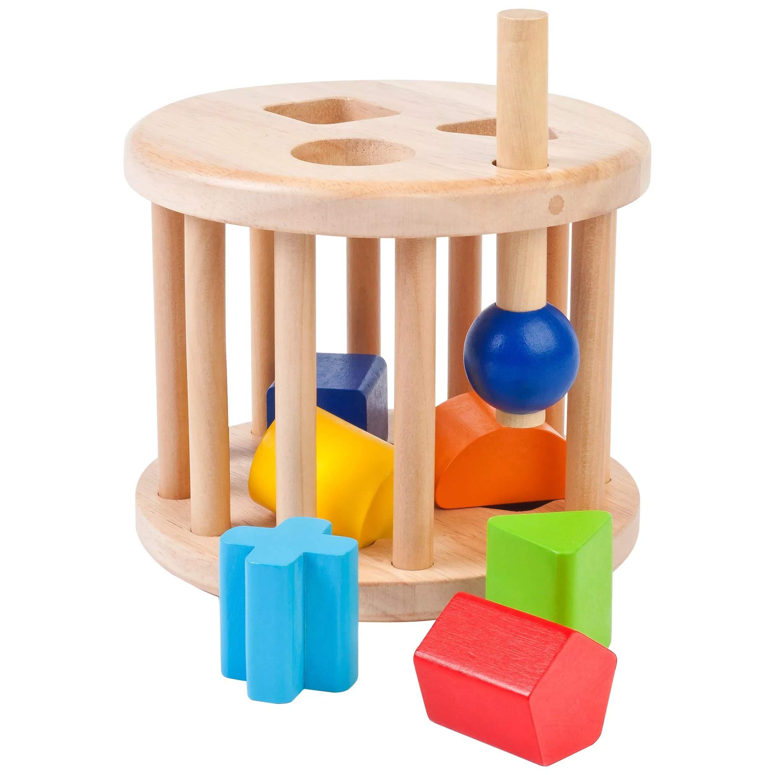 The wooden cage holds the shapes neatly, so it's easy to tidy away when it's not being used.