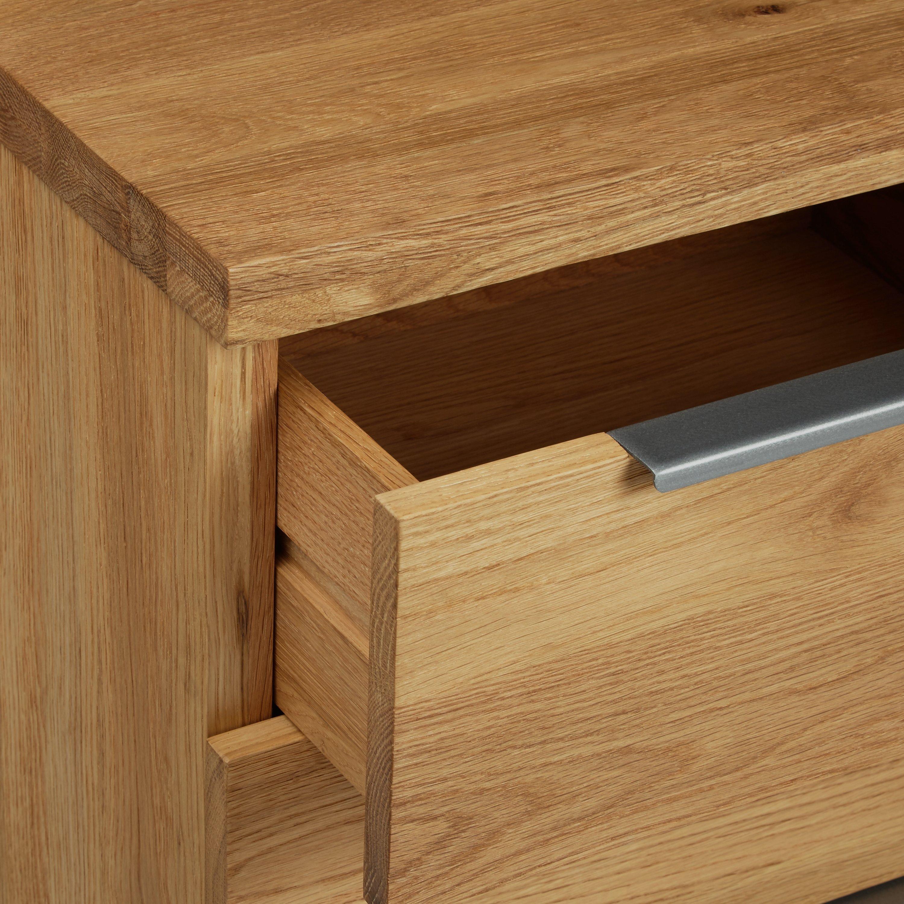 Oak is a natural, living material, and part of its charm is that it develops over time. This means that surface splits may start to appear with the natural movement of the wood. Knots will vary in size and location and a subtle colour variation can also be expected. These distinctive qualities give the range a unique feel, as no two pieces will be exactly the same. To keep your furniture looking its best, we recommend periodic oiling. This is applicable to the Oak version only, as the Dark version has a lacquered finish. More information can be found in the assembly instructions supplied.