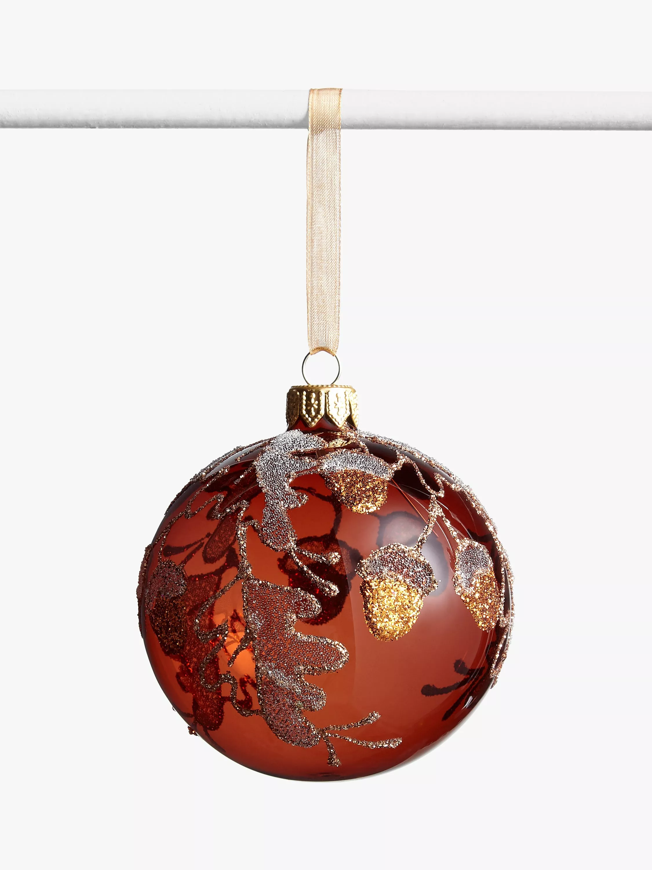 John Lewis & Partners Campfire Glitter Acorn Bauble, Copper