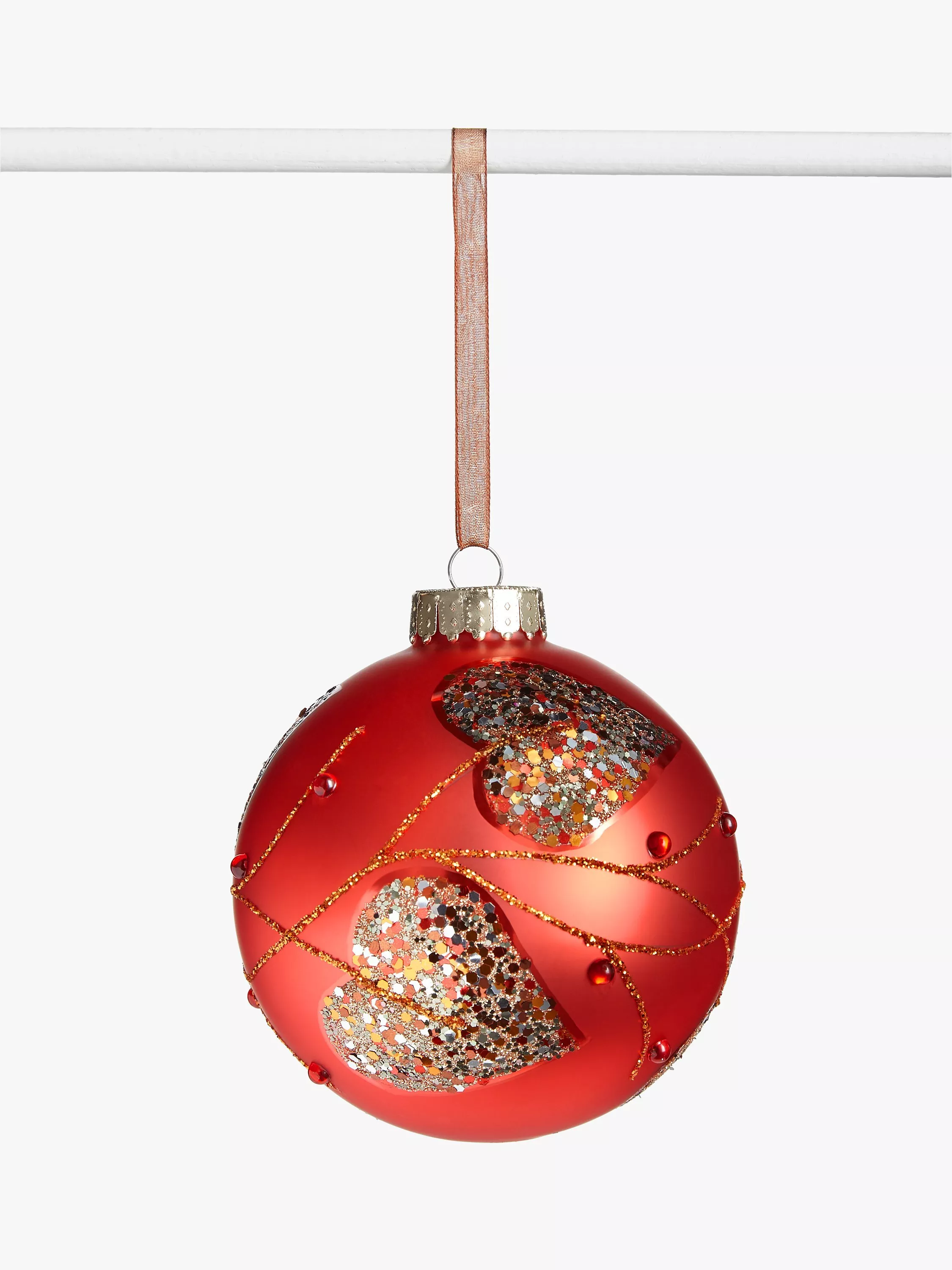 John Lewis & Partners Campfire Glitter Leaves Bauble, Red