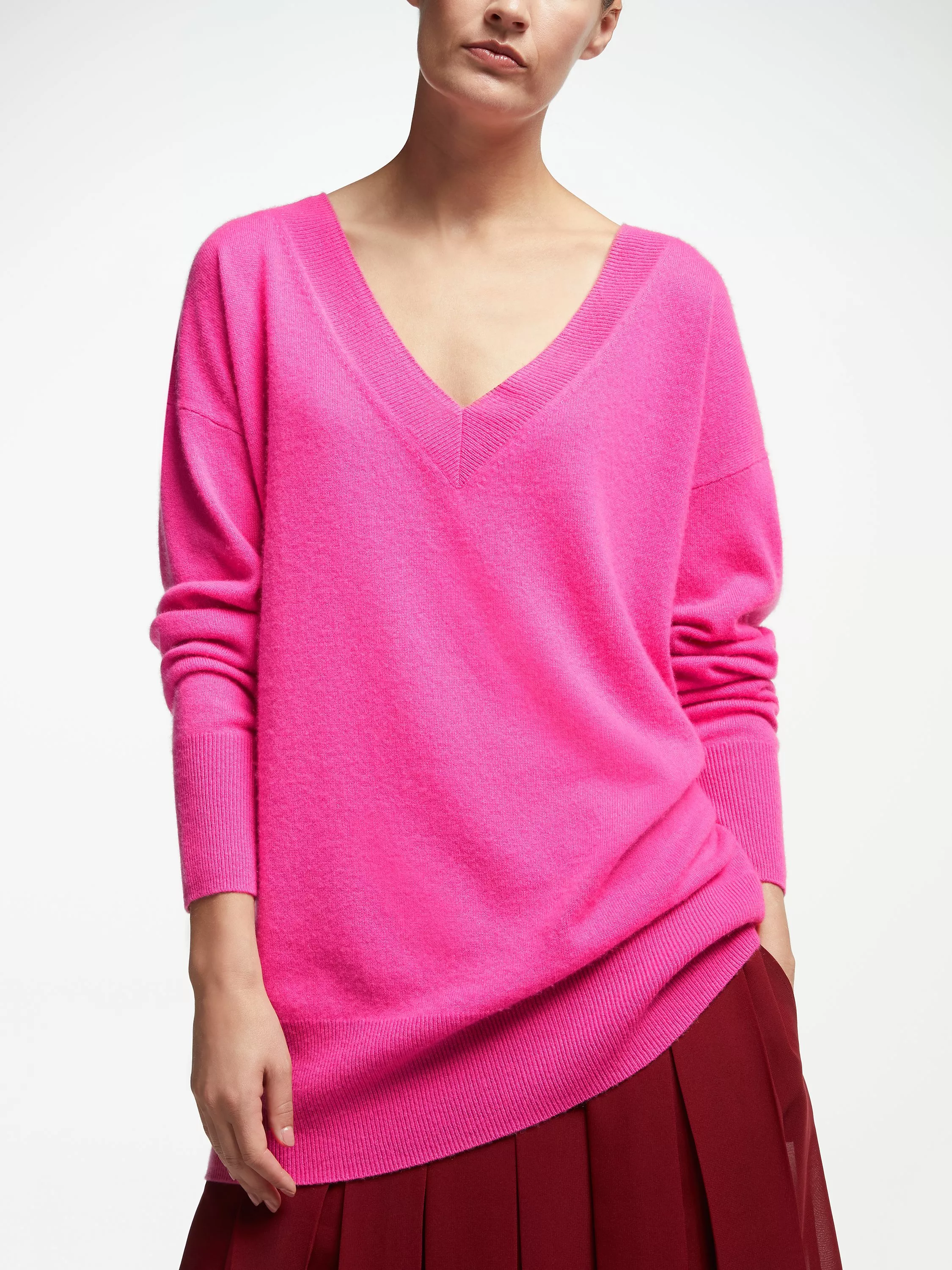 John Lewis & Partners Cashmere Relaxed V-Neck Sweater, Raspberry, 8