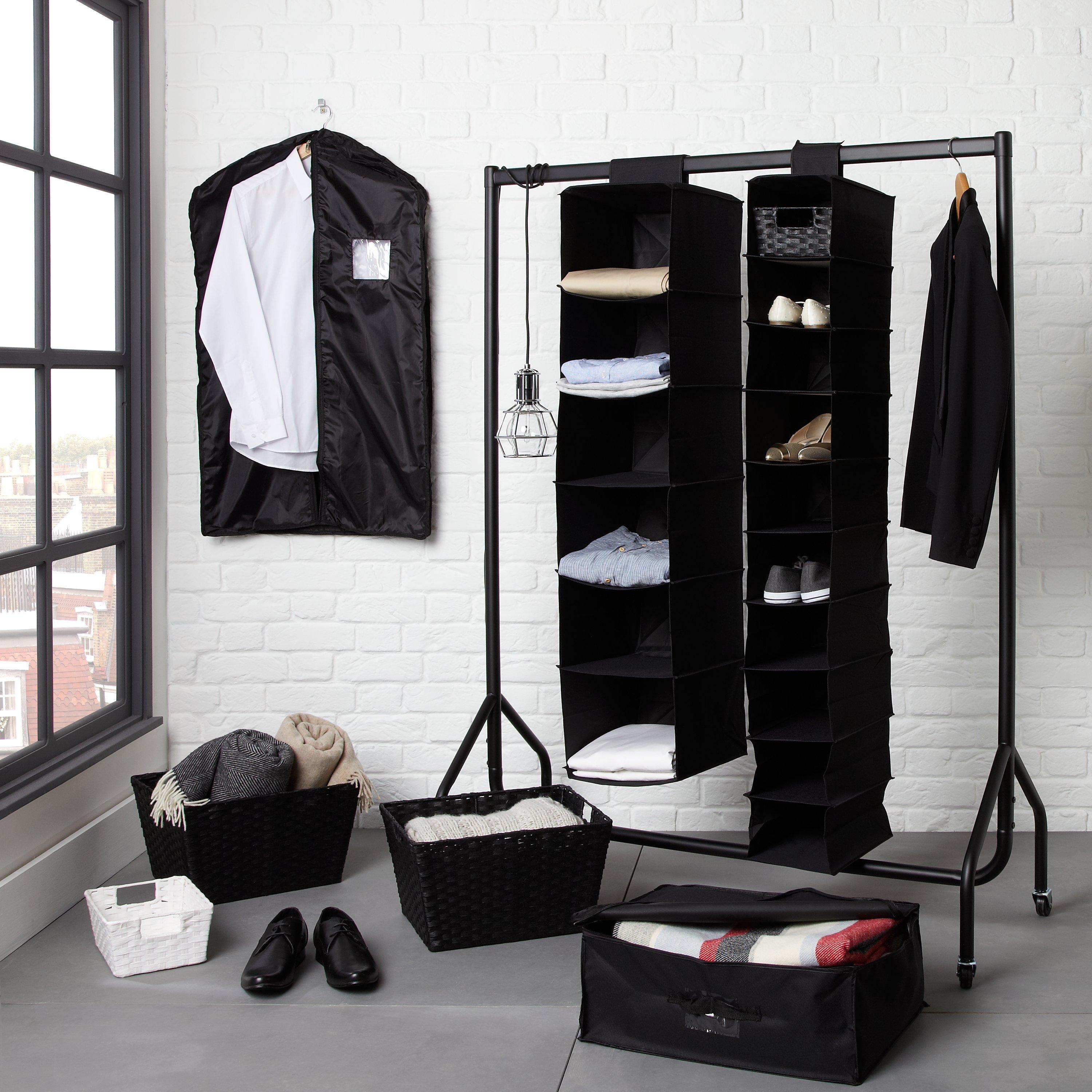 An essential item that will provide you with the extra hanging space you need. This black garment rail is flat packed for self assembly.