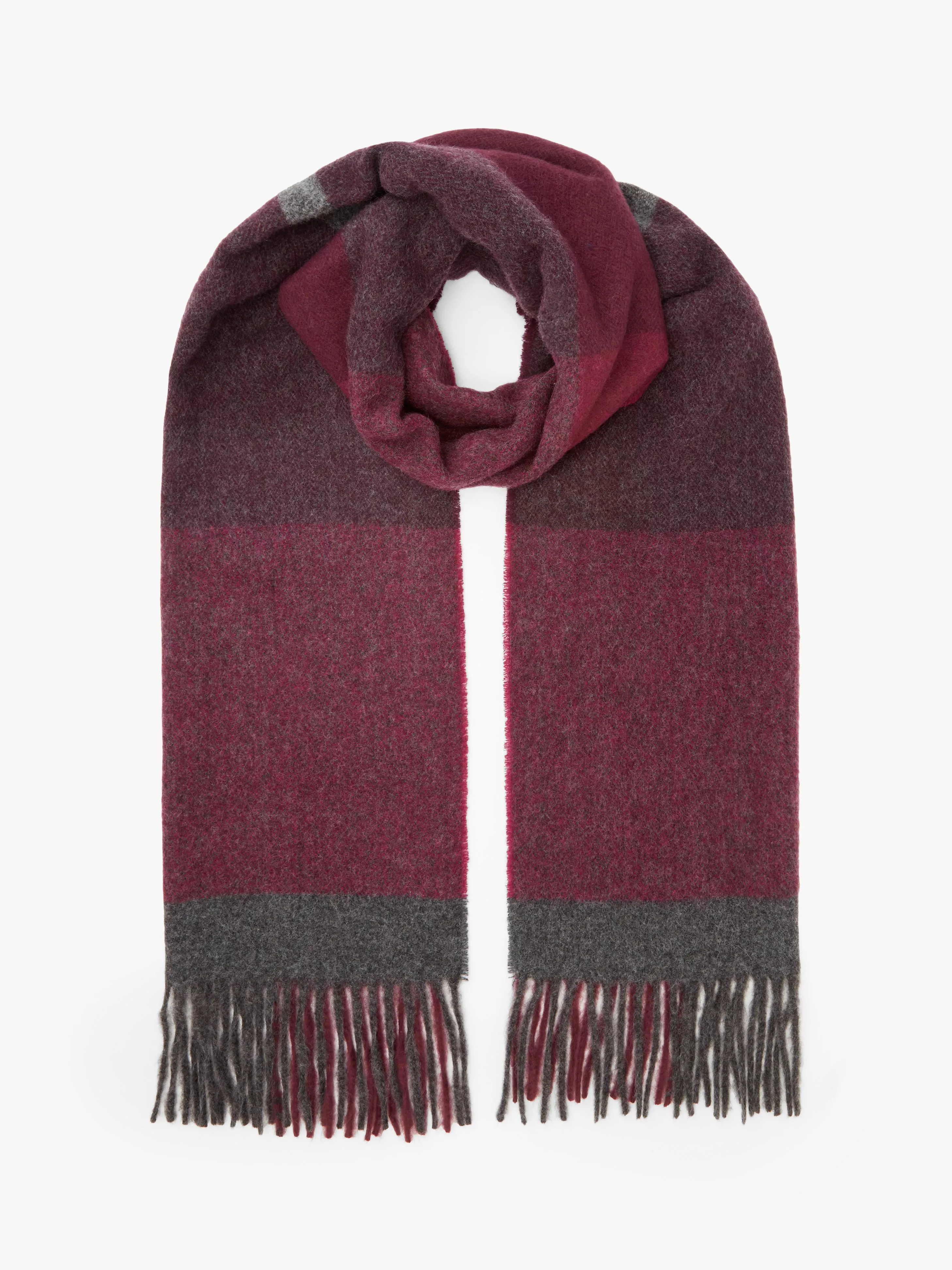 John Lewis & Partners Colour Block Herringbone Wool Blend Scarf, Burgundy