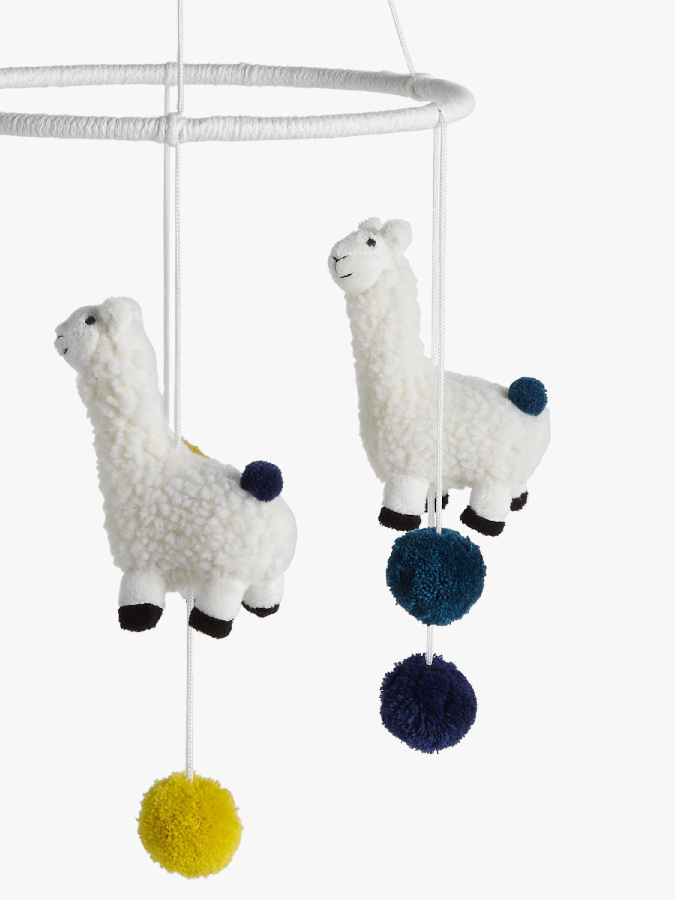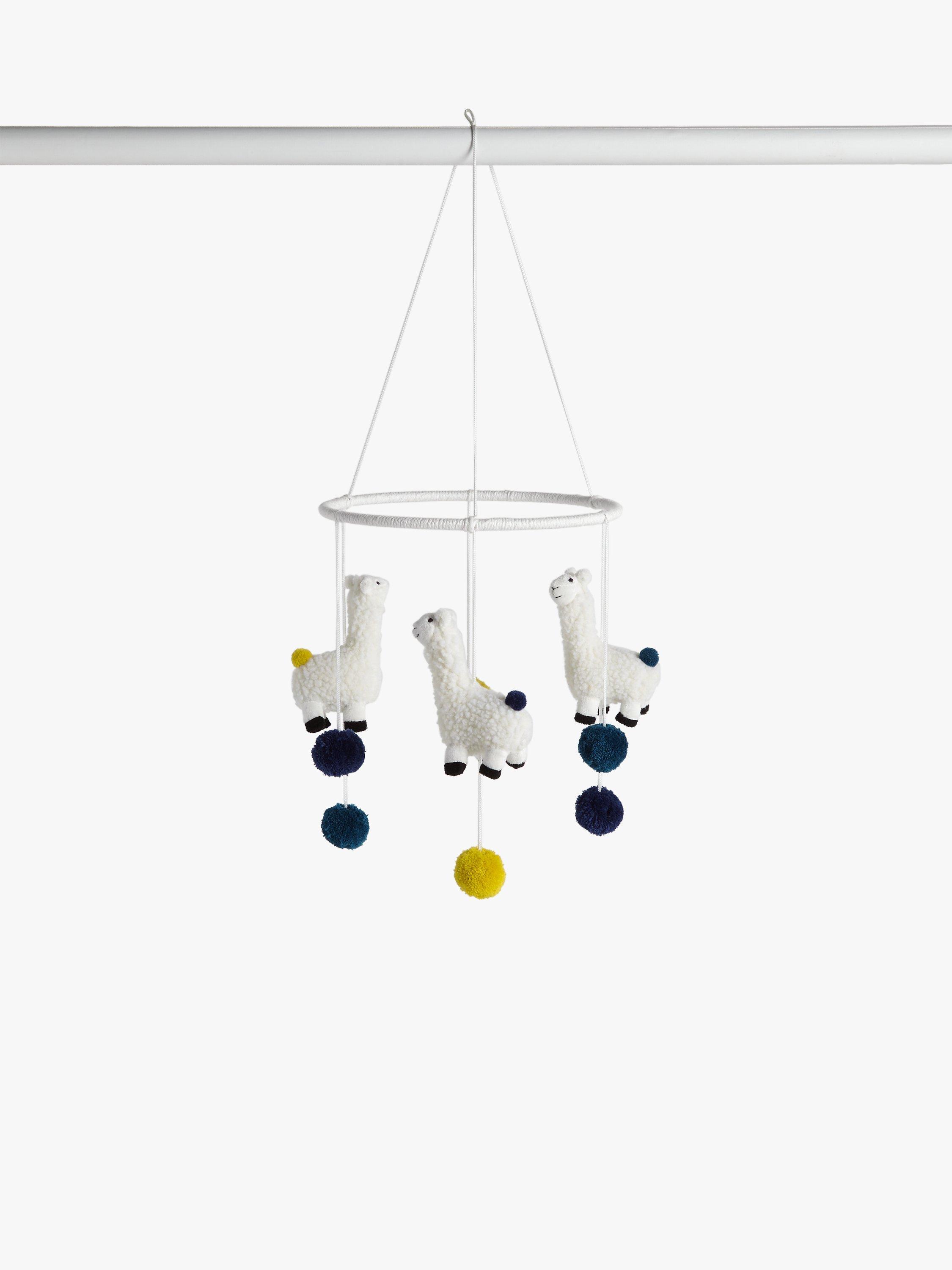 Complete your baby's nursery with our ceiling mobile, perfect to compliment any neutral and animal themes. The mobile features 3 llamas and 6 pompoms that swing and swirl to help young babies drift gently off to sleep.
