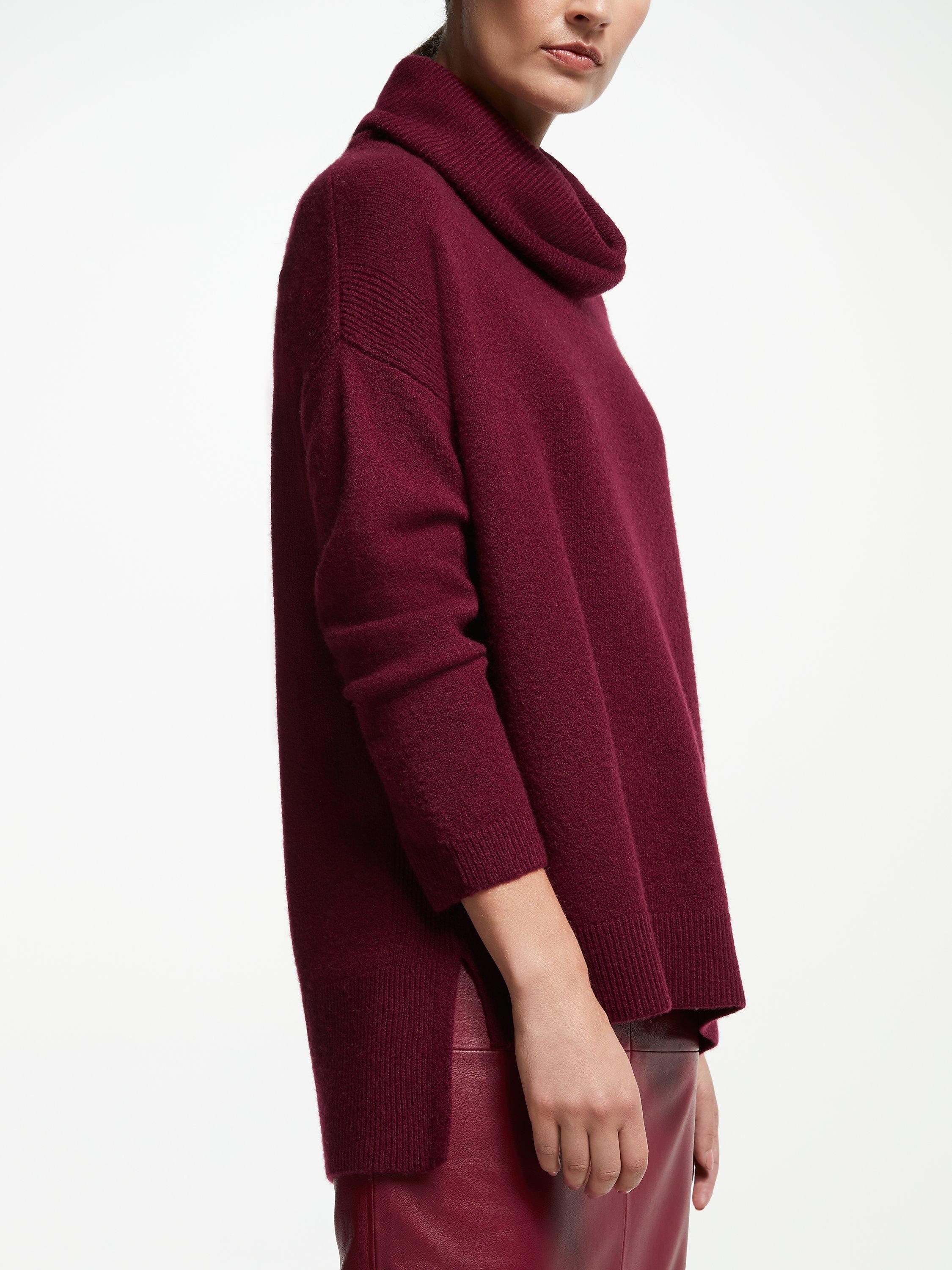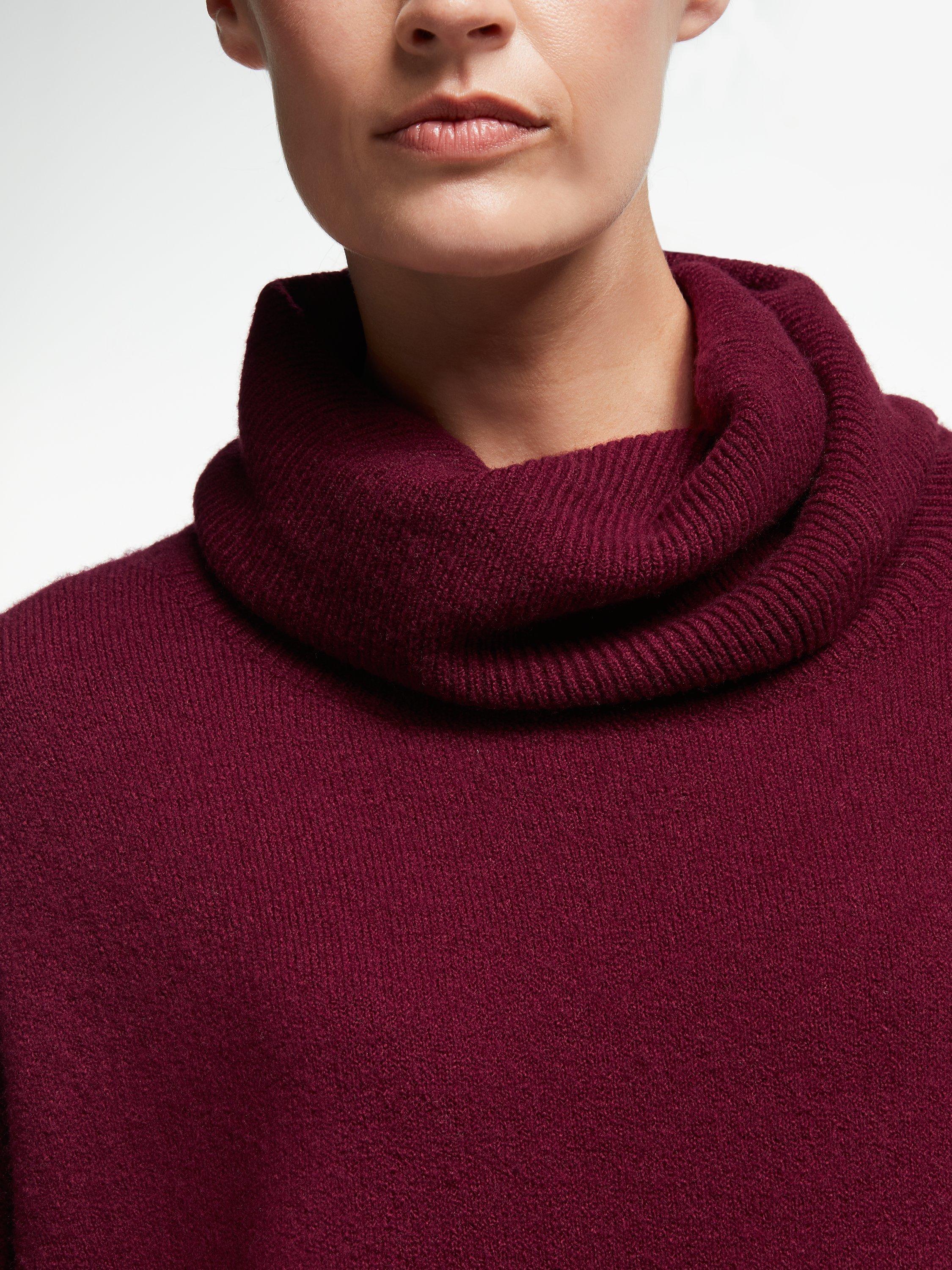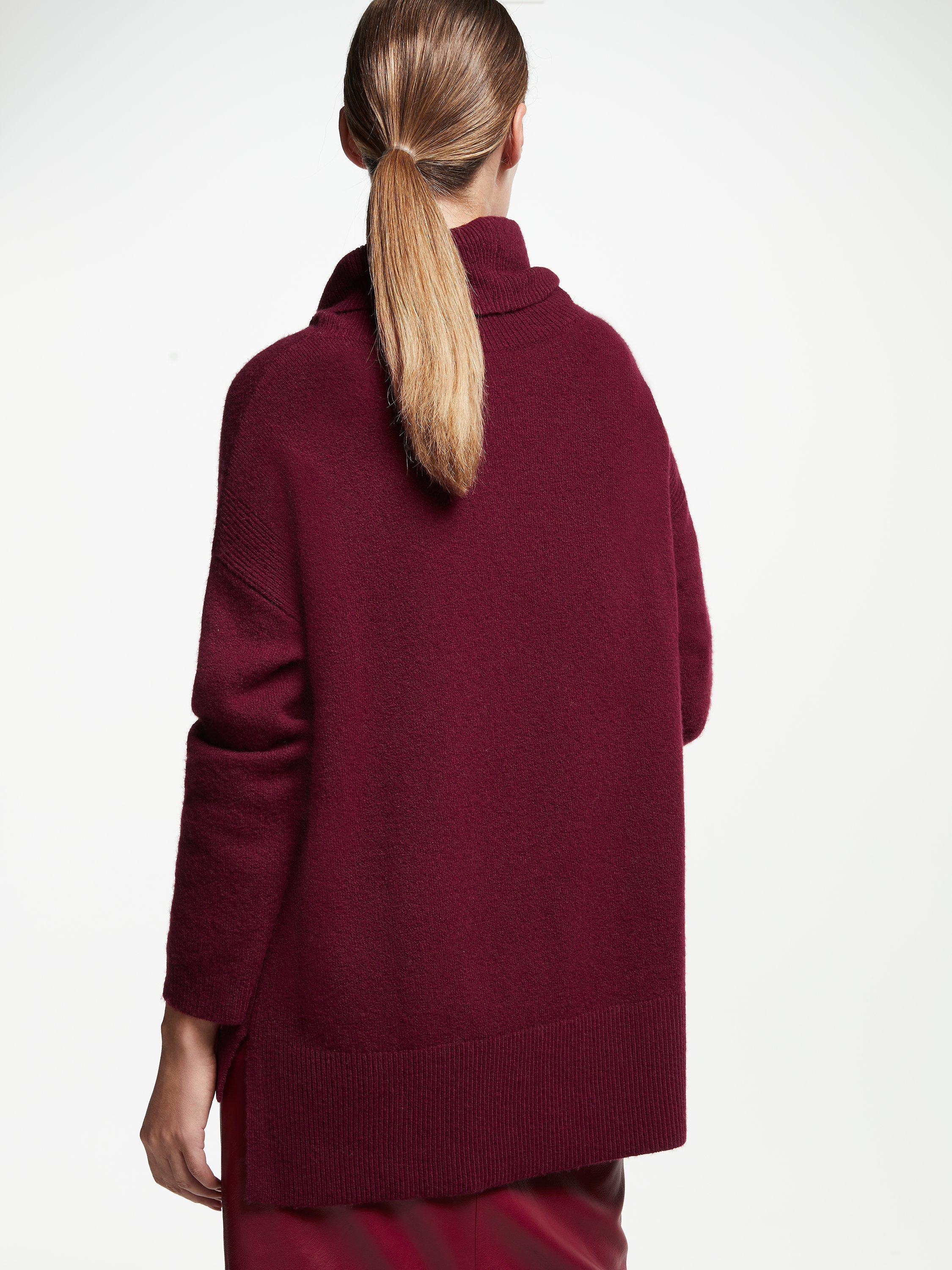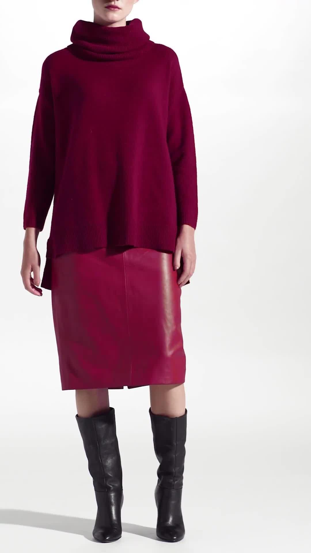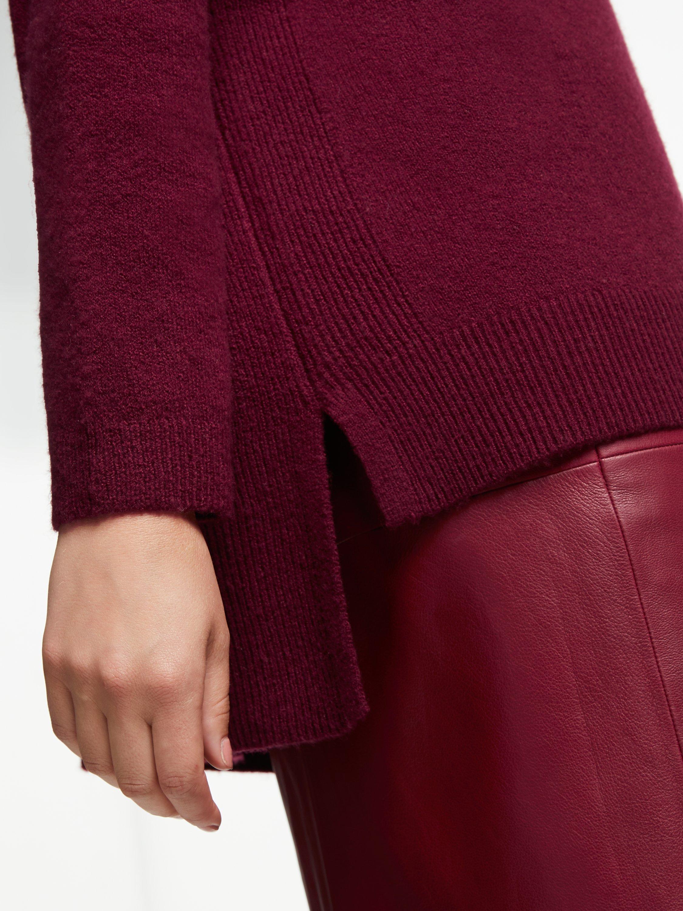 We designed the cowl neck with a ribbed texture so the neck drapes softly around the yoke and so it stays looser and relaxed. Feeling soft and cosy despite its light weight, it's been finished with ribbing details along the side sea, leading to a modern side split and high-low hem detail - great for throwing over jeans or dressing up with a leather pencil skirt.