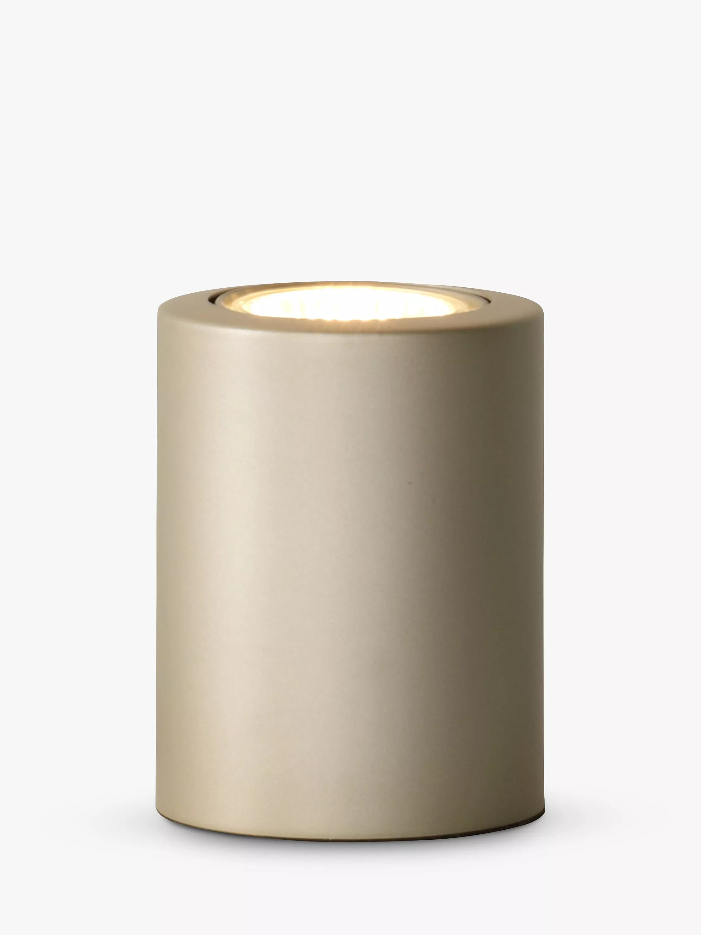 Simple yet effective cylindrical uplighter, with a stainless steel effect base.