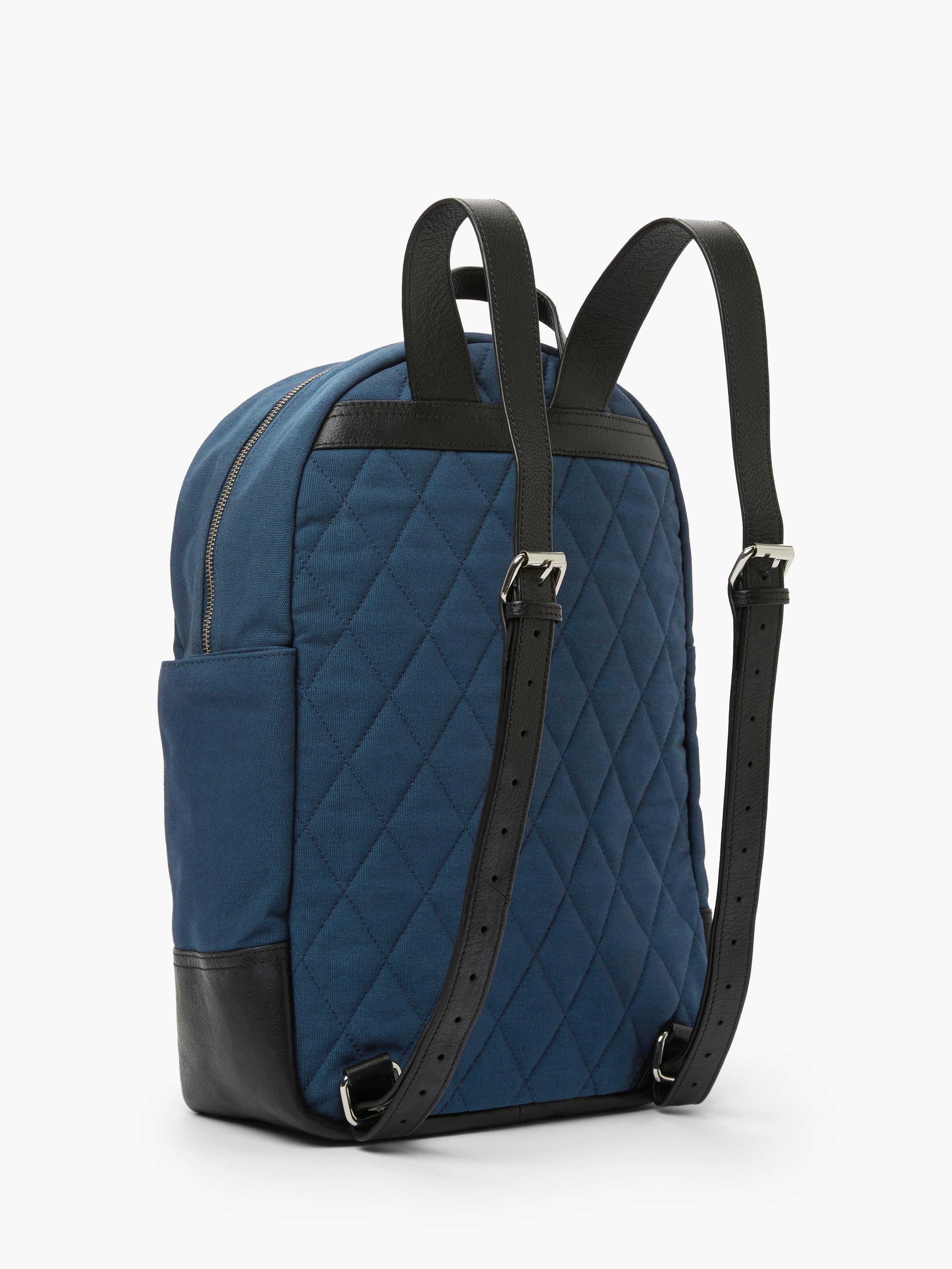 Crafted from cotton canvas and leather, we've made sure you've enough space to keep all of your belongings safe. Inside the 2-way zip features a leather-trimmed zipped pocket and a laptop sleeve that fits most 15" laptops, with the adjustable leather shoulder straps and padded quilted back panel providing you with a comfortable wear.
