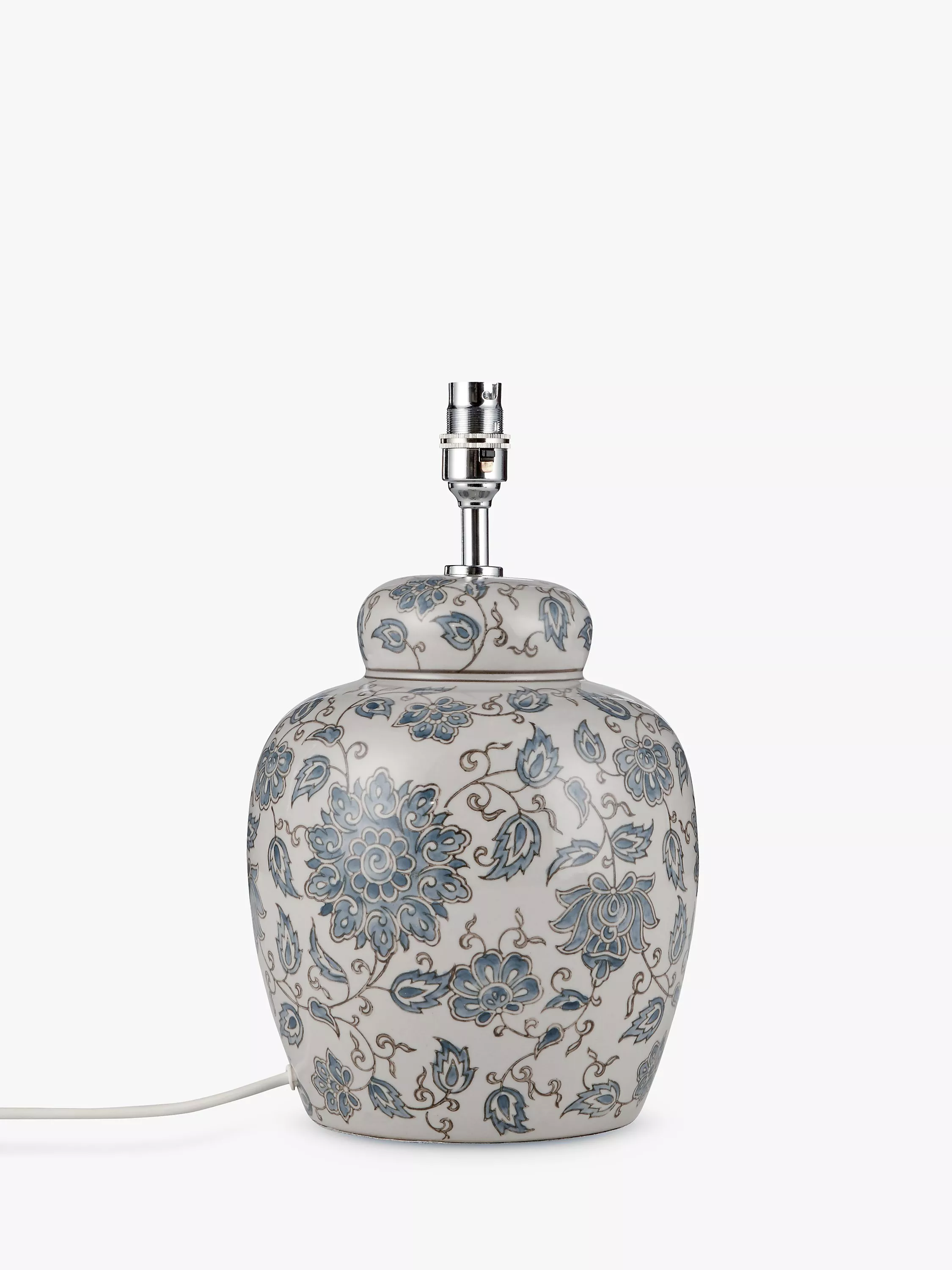 The timeless design of the Emily lamp base will suit any classic interior style. Its ceramic, hand painted blue and grey floral design complements a range of neutral palettes and its structured base makes a great foundation for any number of lampshade styles.