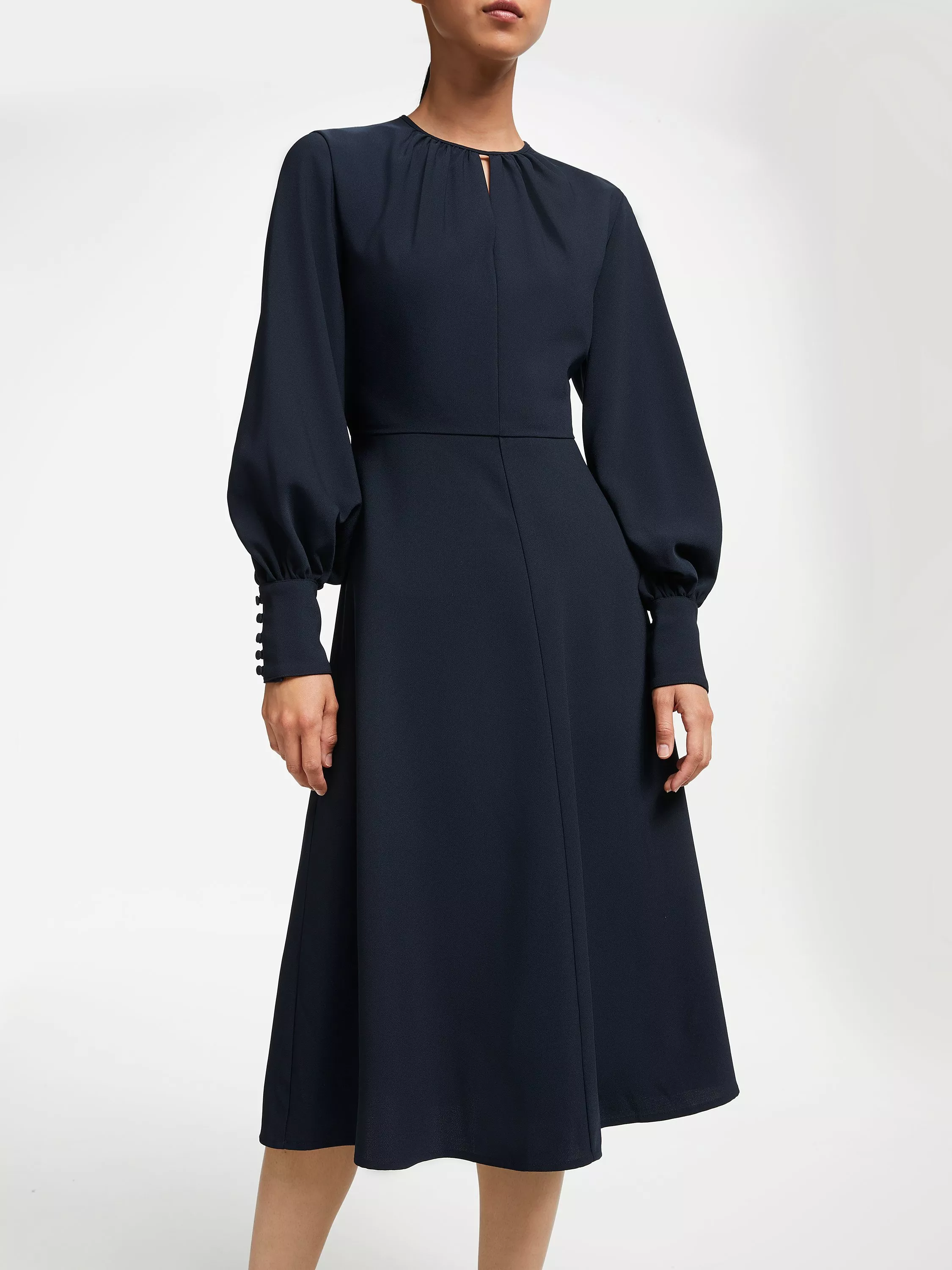 Soft gathers at the neckline sit alongside a small keyhole opening: a playful, feminine detail that's matched by the gentle balloon sleeves. The gathering at the extended cuffs is sealed with six fabric-dressed buttons with rouleau fastening for a simultaneously modern and traditional look, while the front panelling emphasises the silhouette, cinching in the waist as the hem gently tapers for just the right amount of fullness.