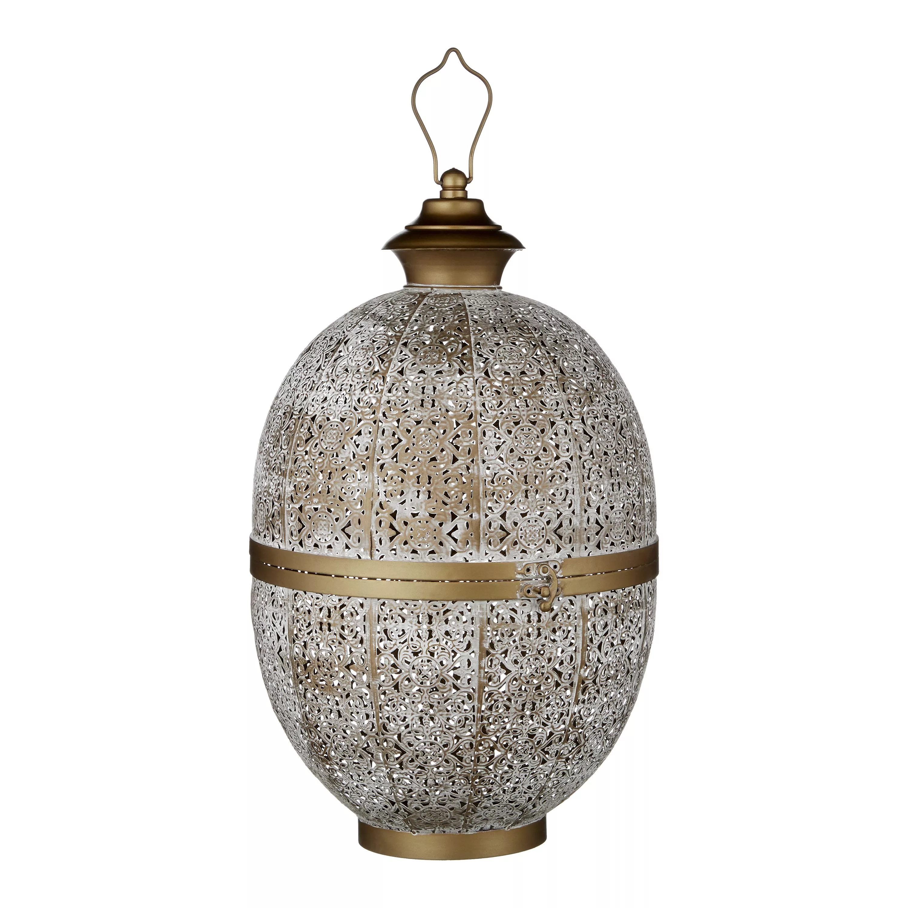 Casting a beautiful, intricate pattern of light and shadow, this unique oval lantern is ideal for barbecues, camping under the stars or for adding a touch of warmth to your home. Create a warm glow by placing it on your patio table, mantelpiece or dining table.