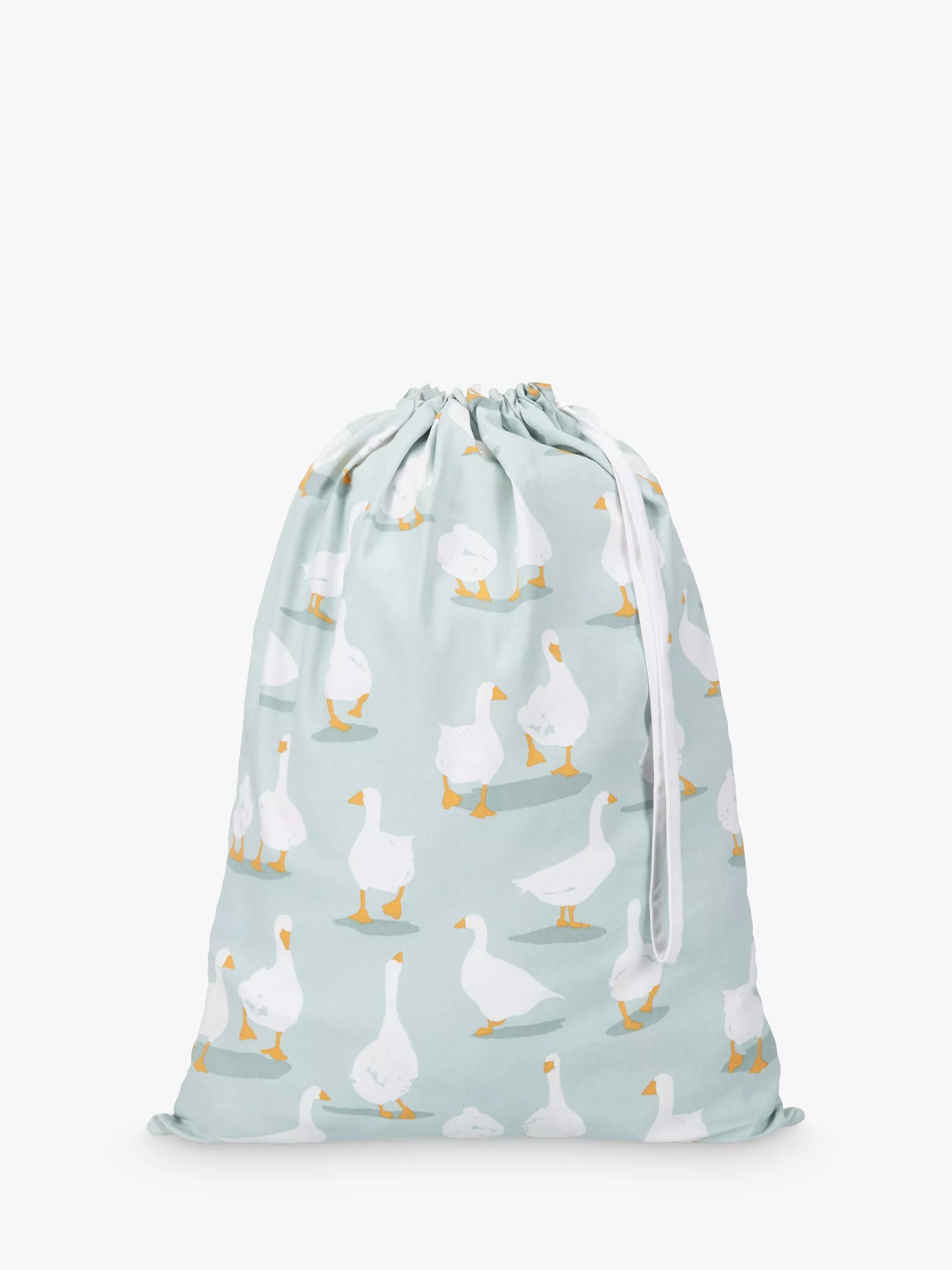 Pretty printed cotton laundry bag with a drawstring fastening.