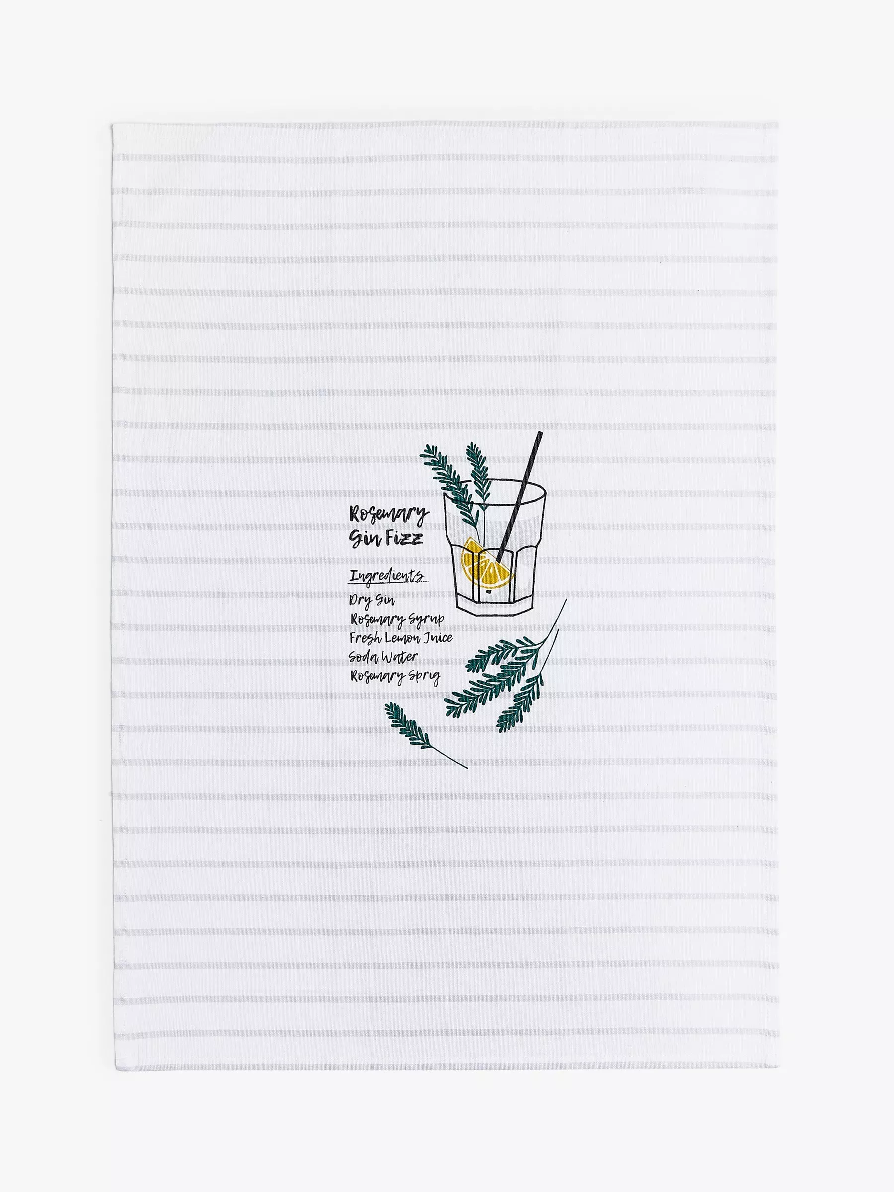 A gift to gin fans, this tea towel features a colourful recipe for a Rosemary Gin Fizz. Crafted from soft and absorbent cotton, it's machine washable.