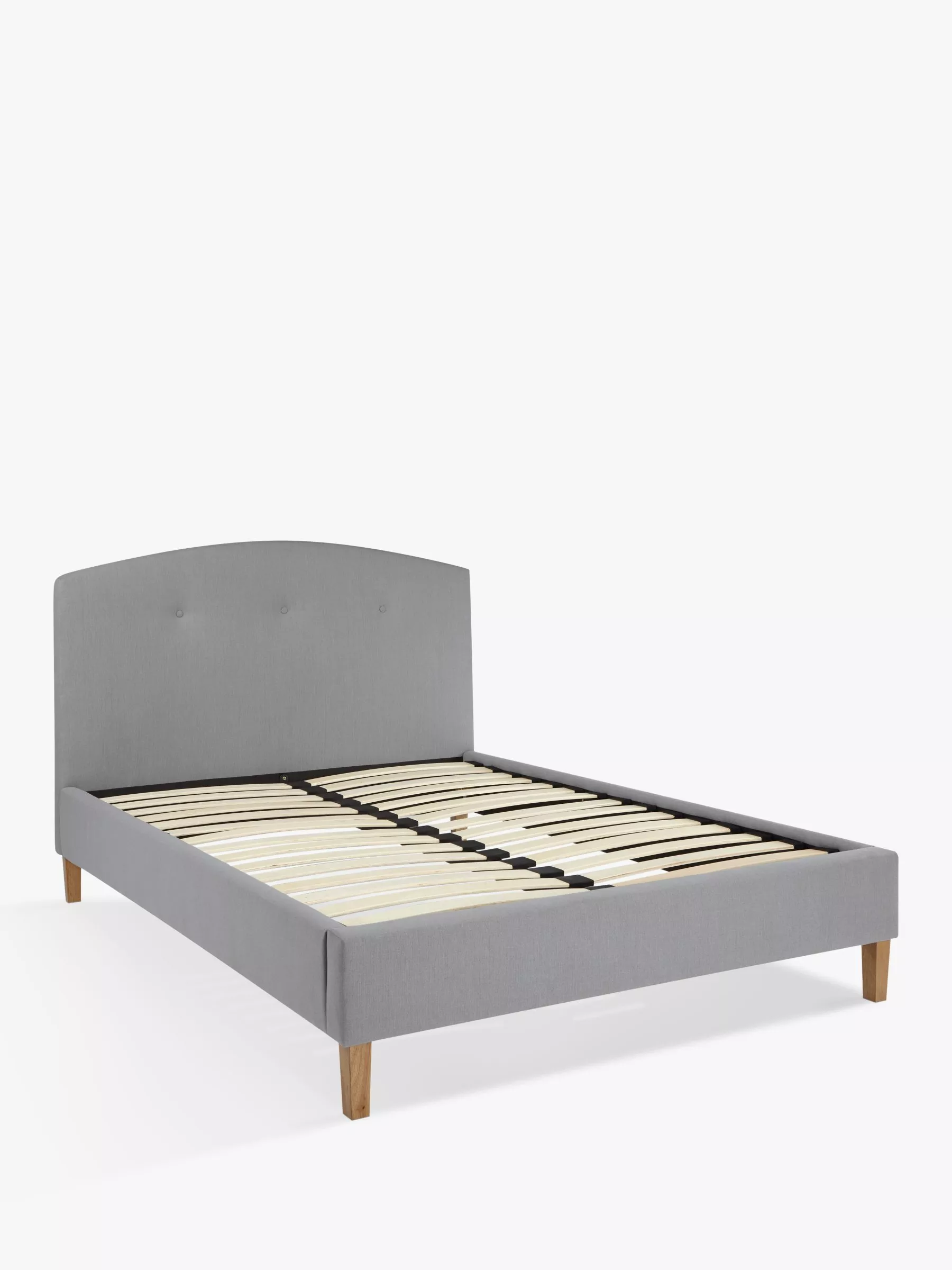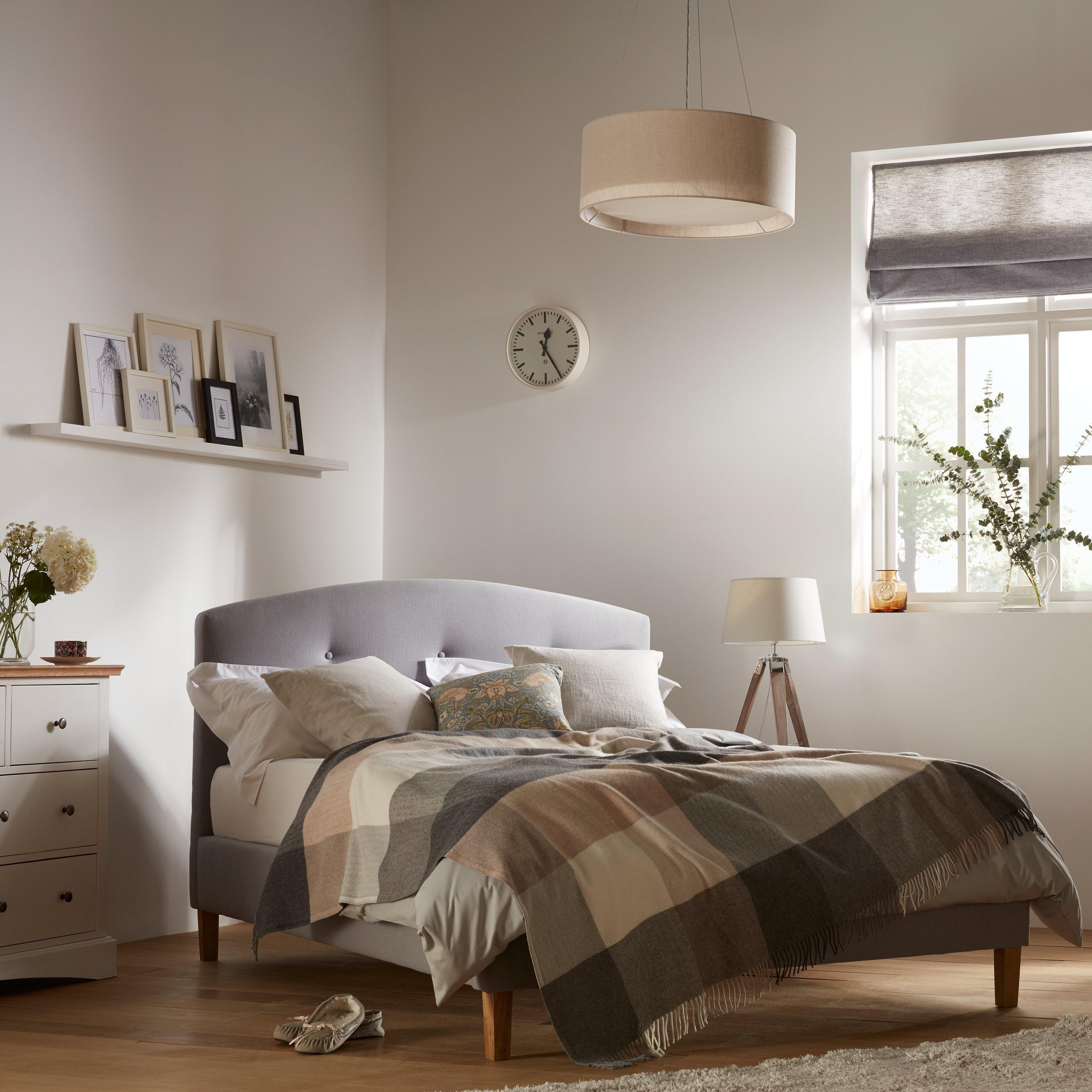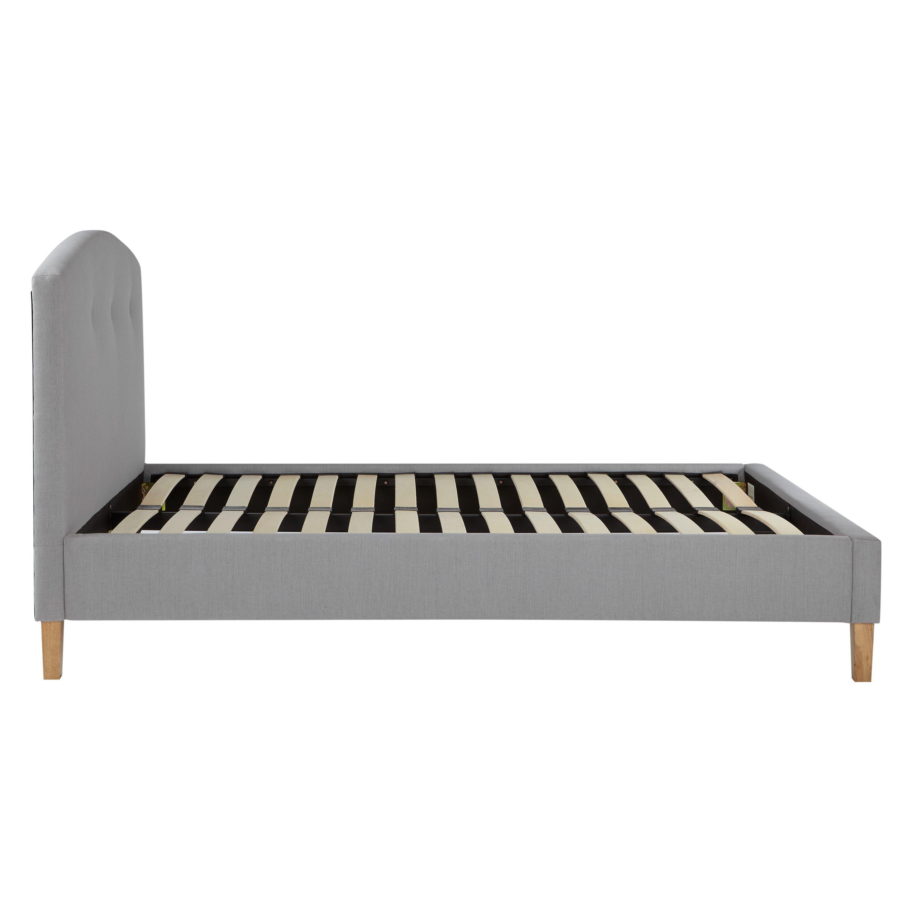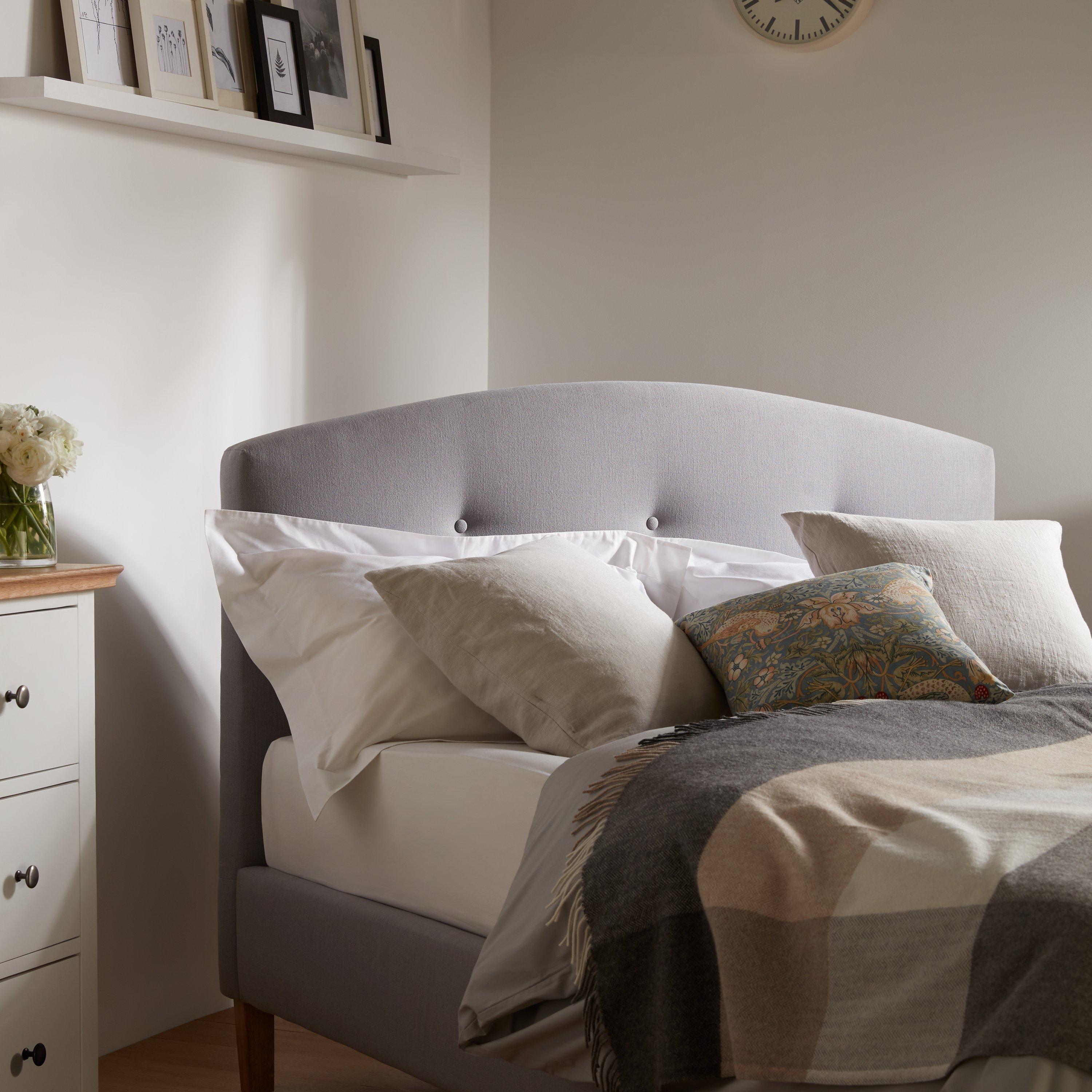 With a clean, simple profile and versatile linen feel fabric, our Grace bed frame will suit a multitude of bedroom schemes. Its curved headboard features a three button detail to impart a cosy, relaxed look, while the ash colour legs give a sophisticated finish. What's more, the bed's sprung slats offer additional support for you and your mattress, with a comfortable and responsive feel.