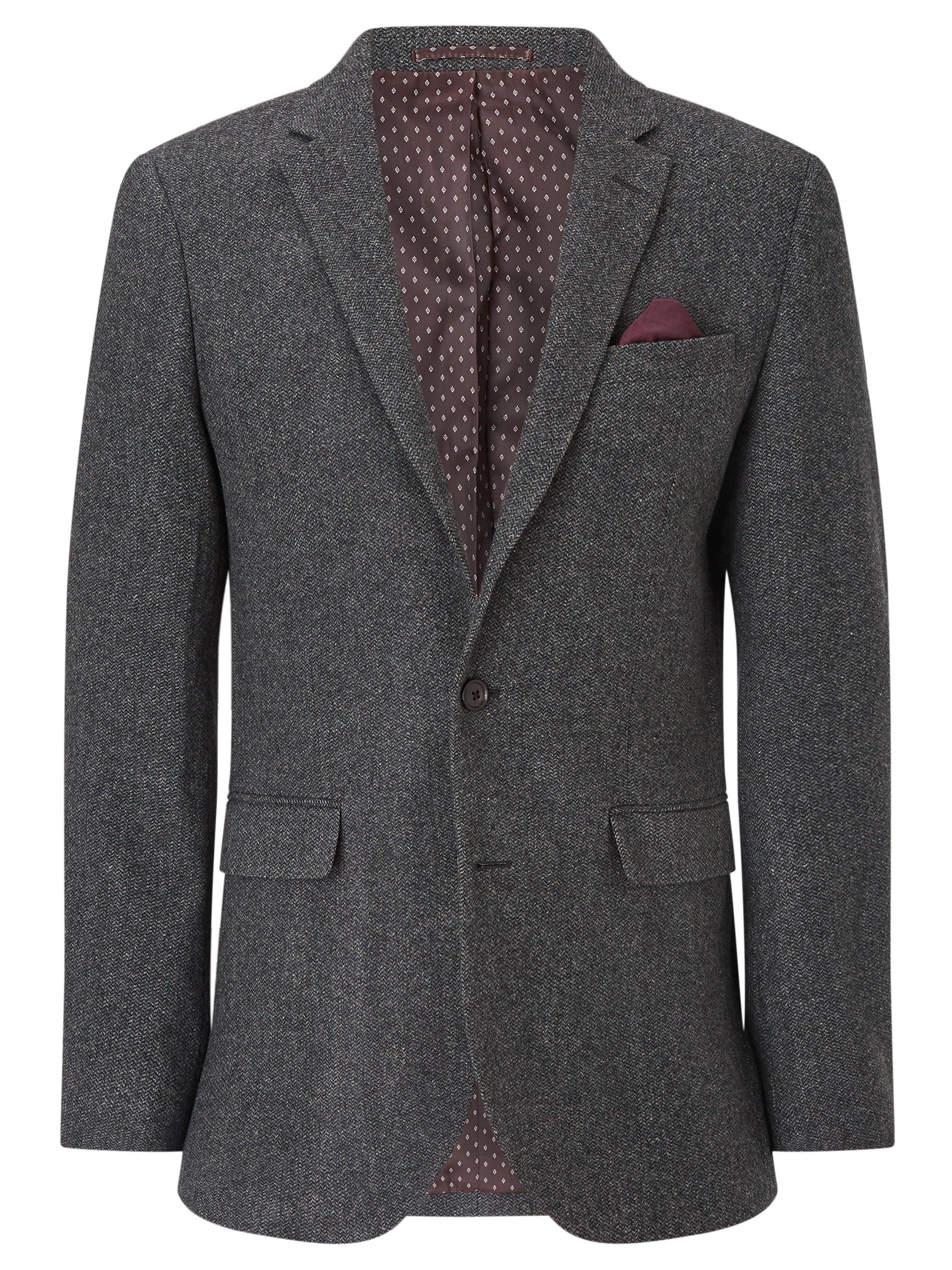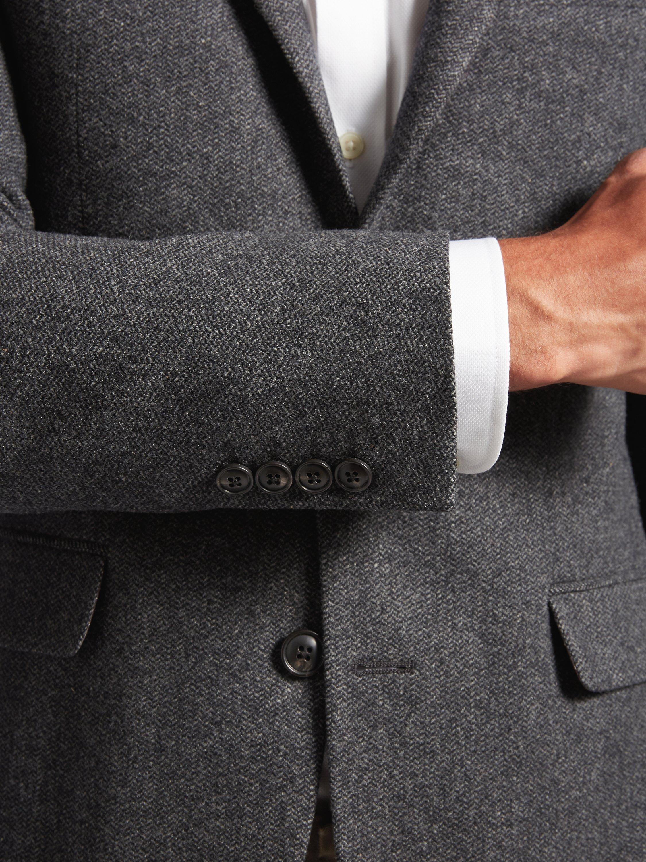 Crafted in a classic herringbone weave, this single breasted blazer features two front buttons, a notch lapel and a double vent to allow for a little extra movement.