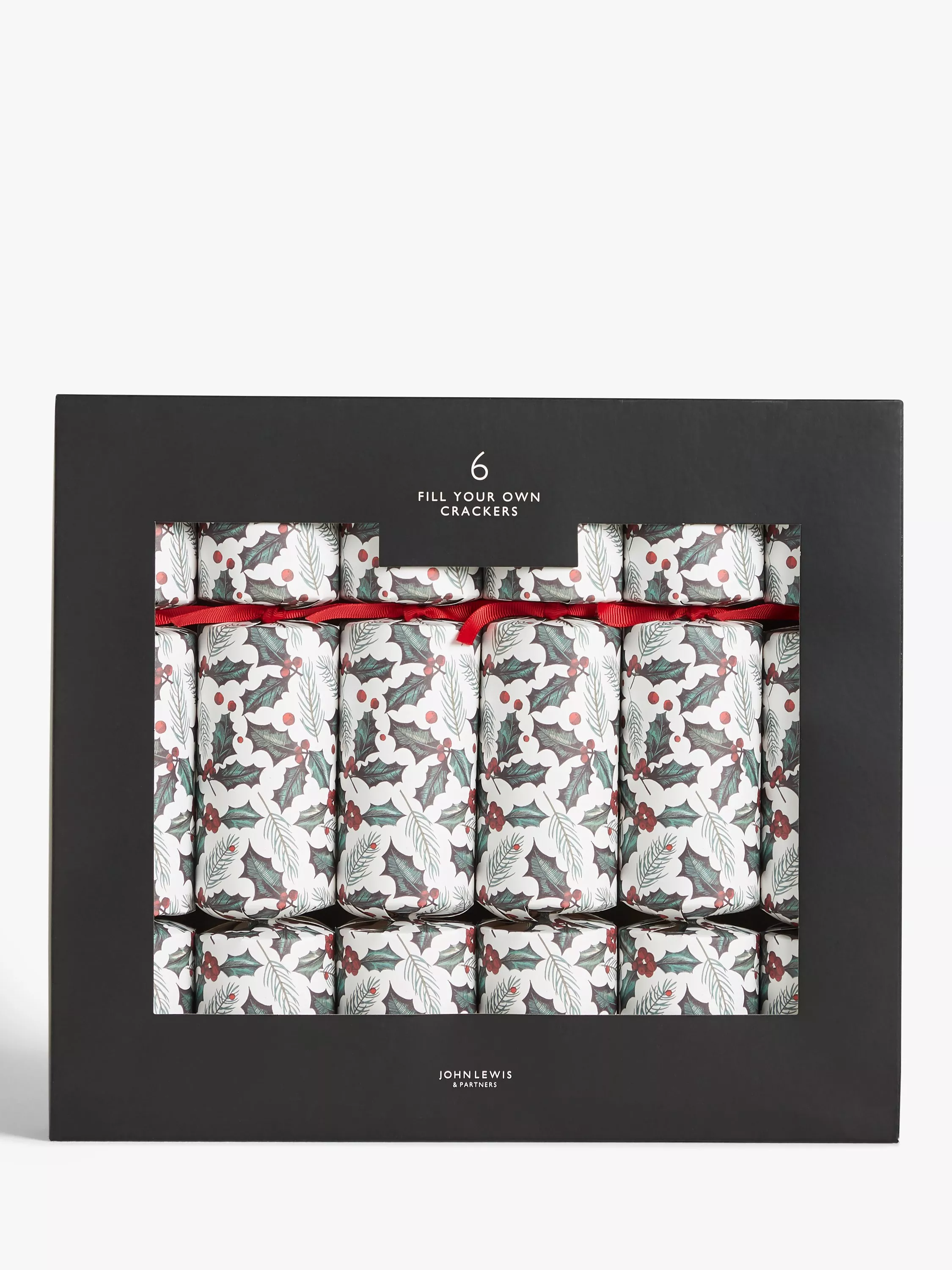 John Lewis & Partners Holly & Pine Fill Your Own Christmas Crackers, Pack of 6, Green