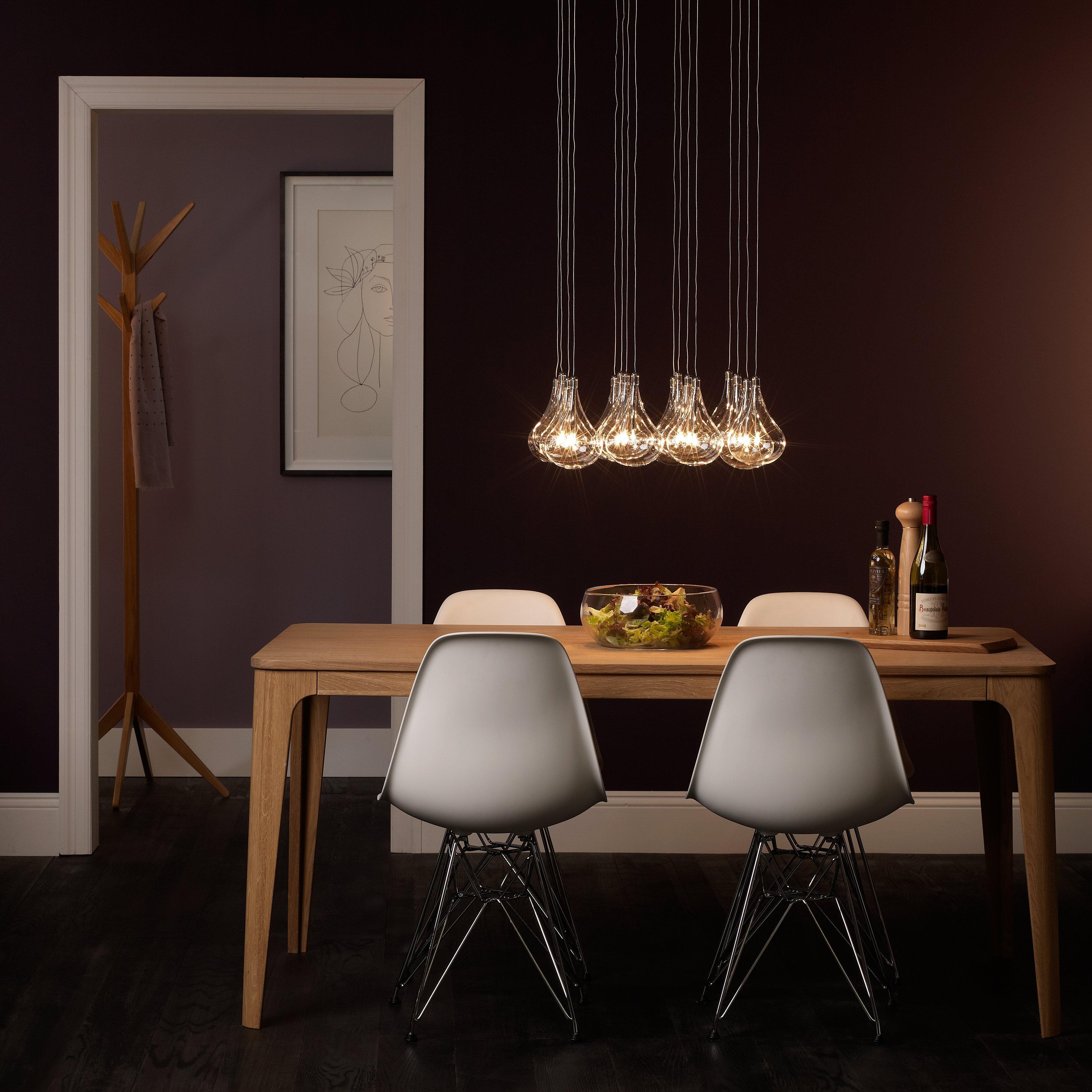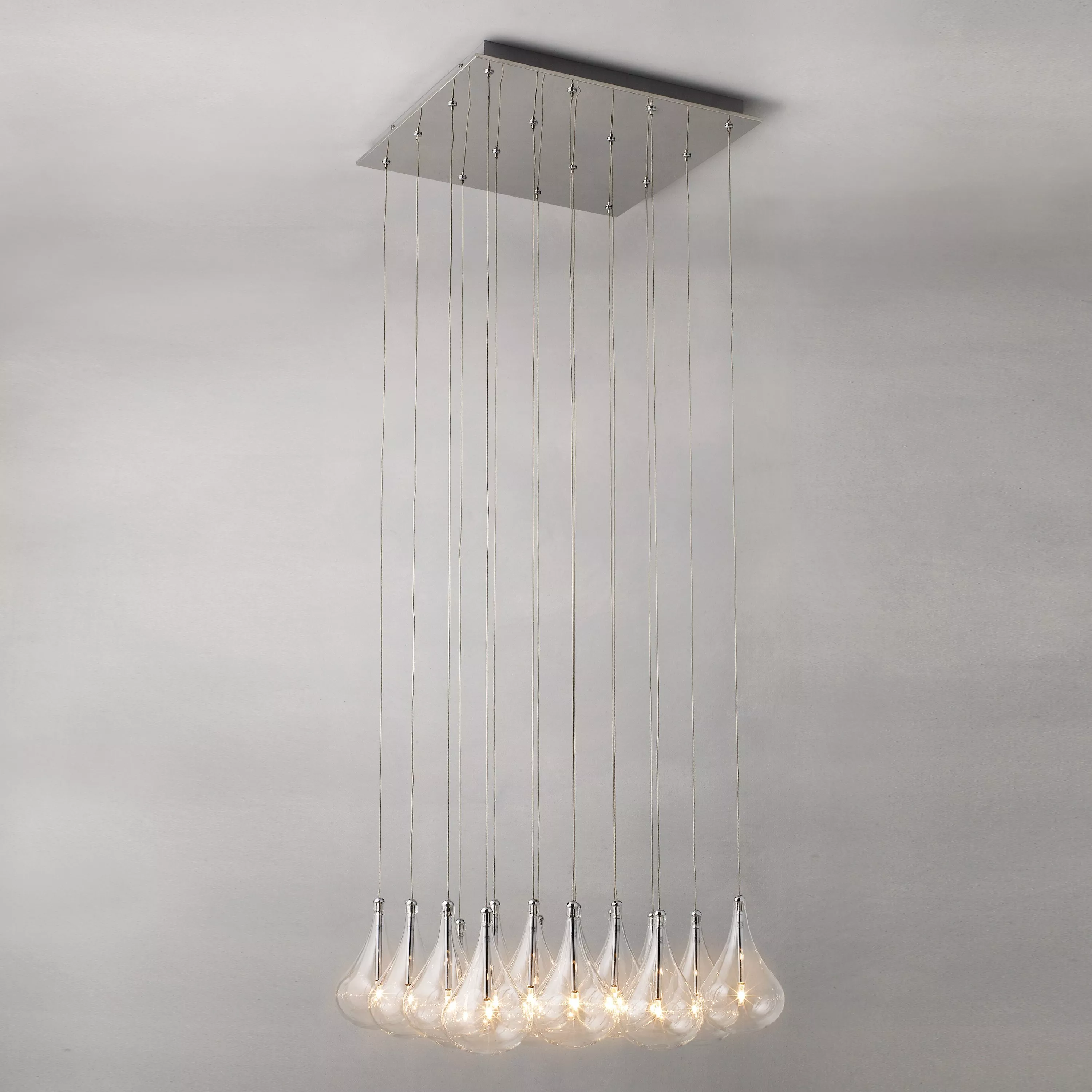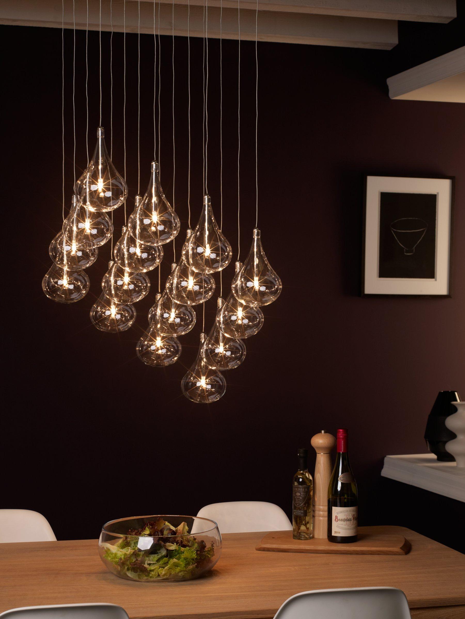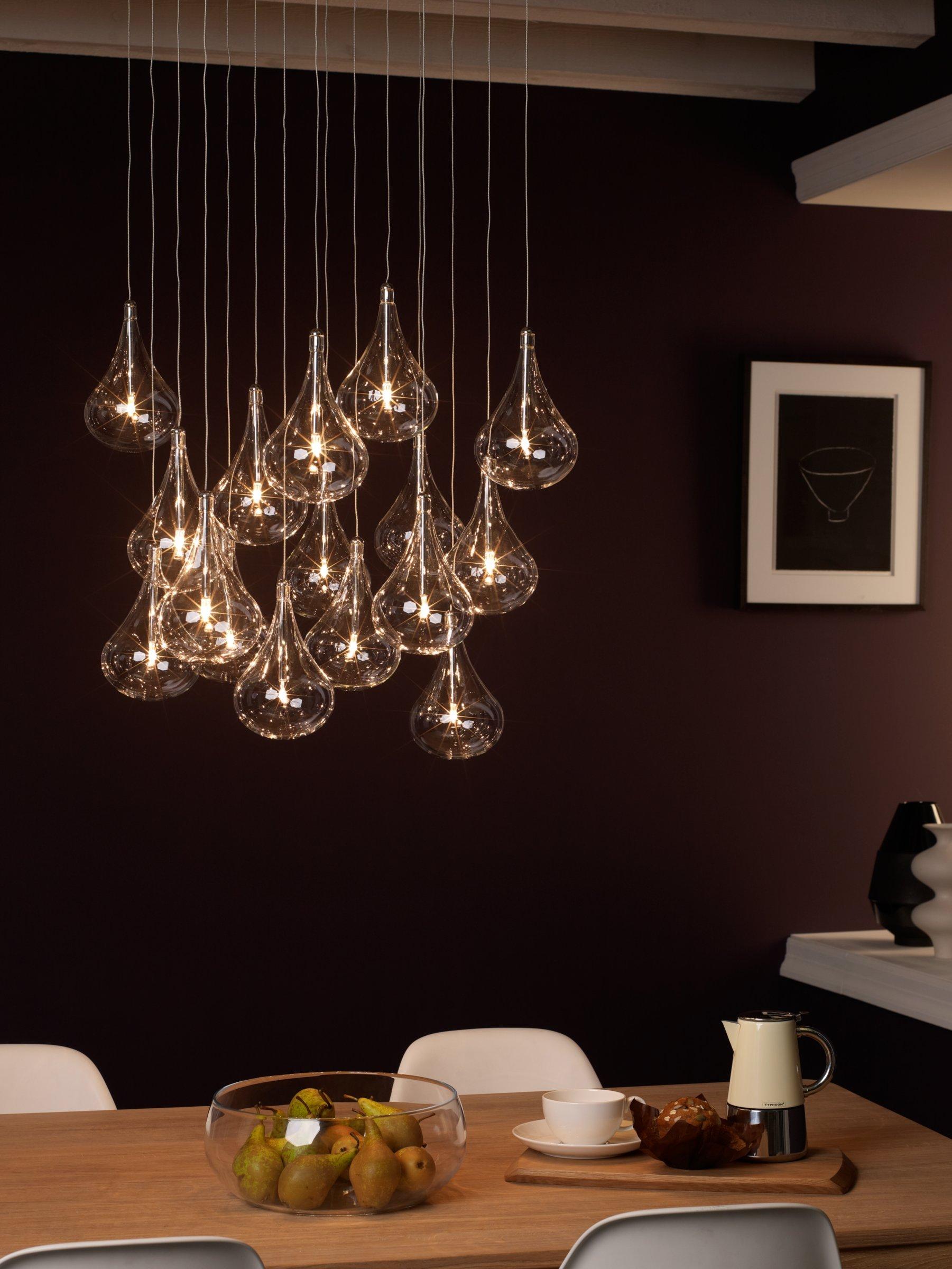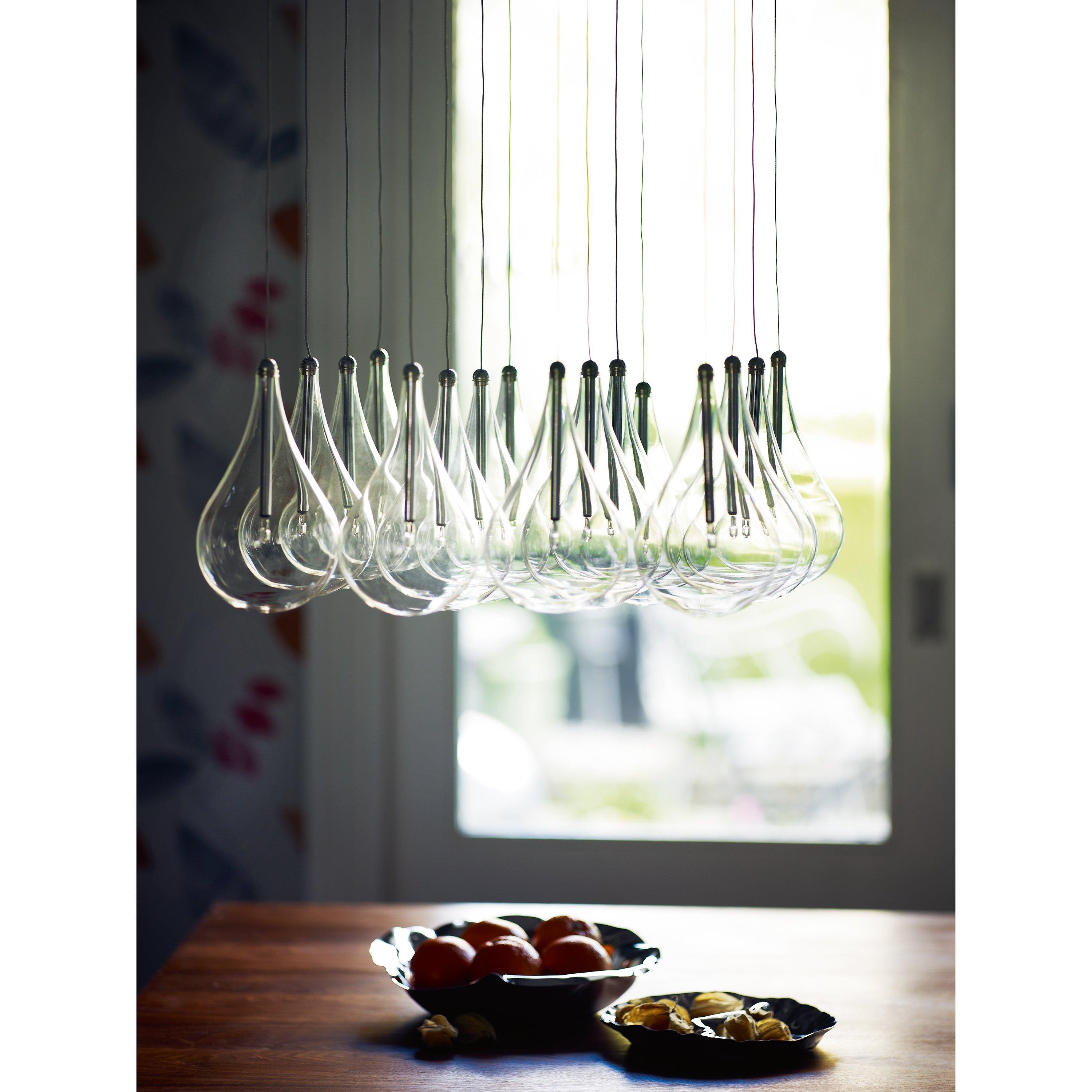 If you're looking for a contemporary accent for a tall hallway, or lighting to hang above your dining table, the Jensen ceiling light is one of a kind. It features beautiful glass droplets, suspended from a square chrome plate for a modern touch.