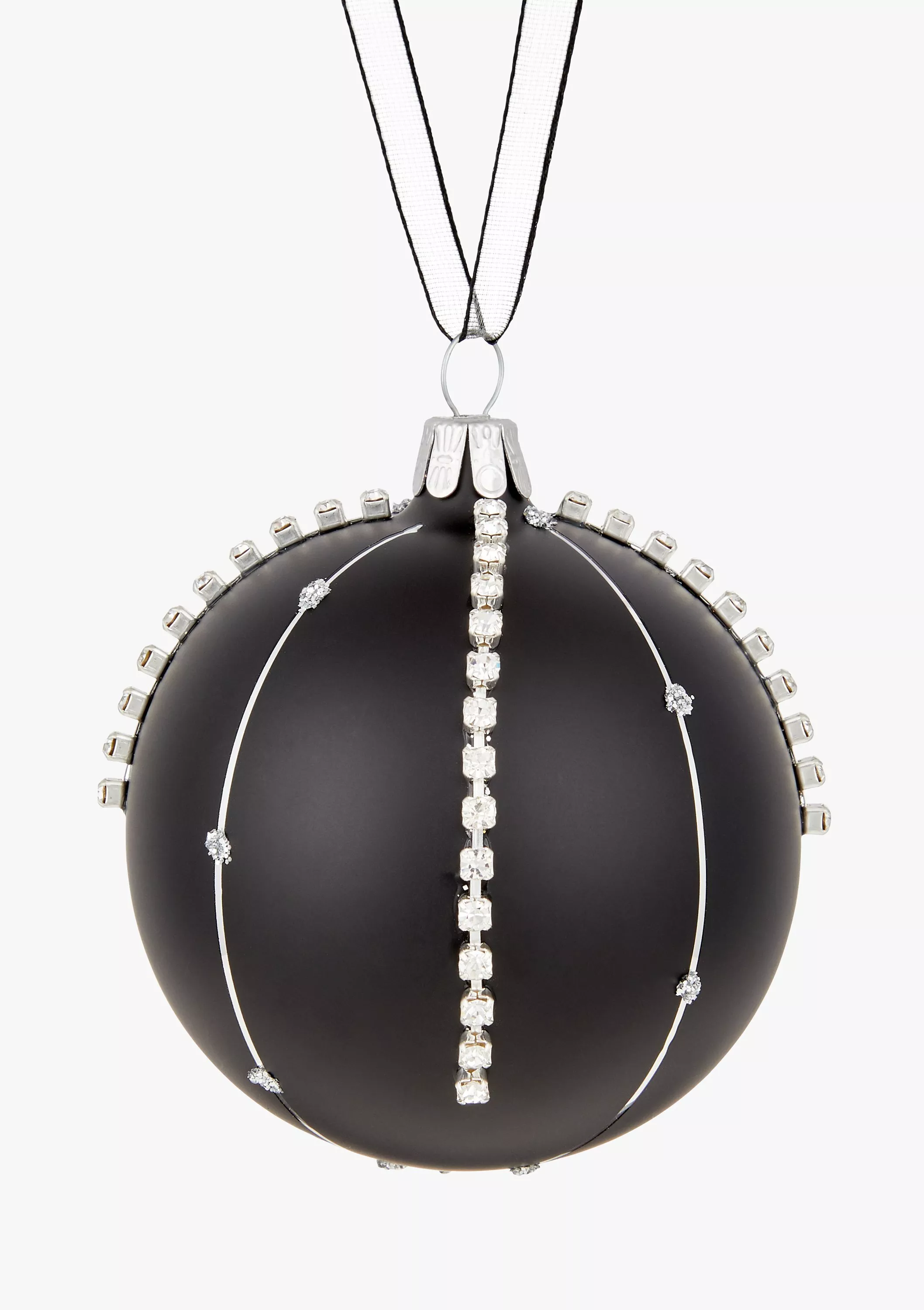 John Lewis & Partners Jet Diamante Stripe Bauble, Black