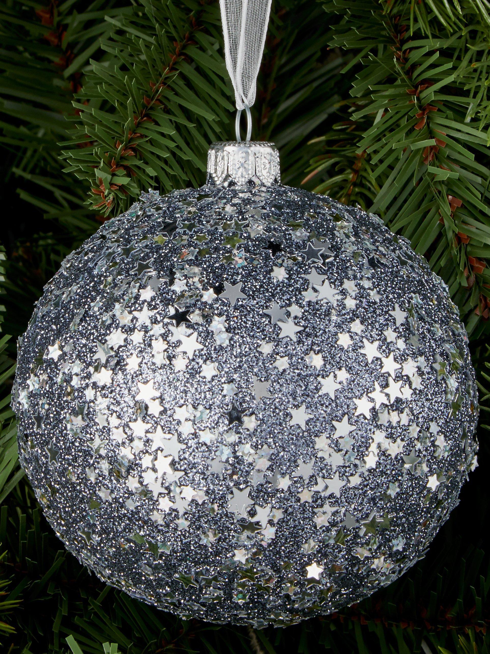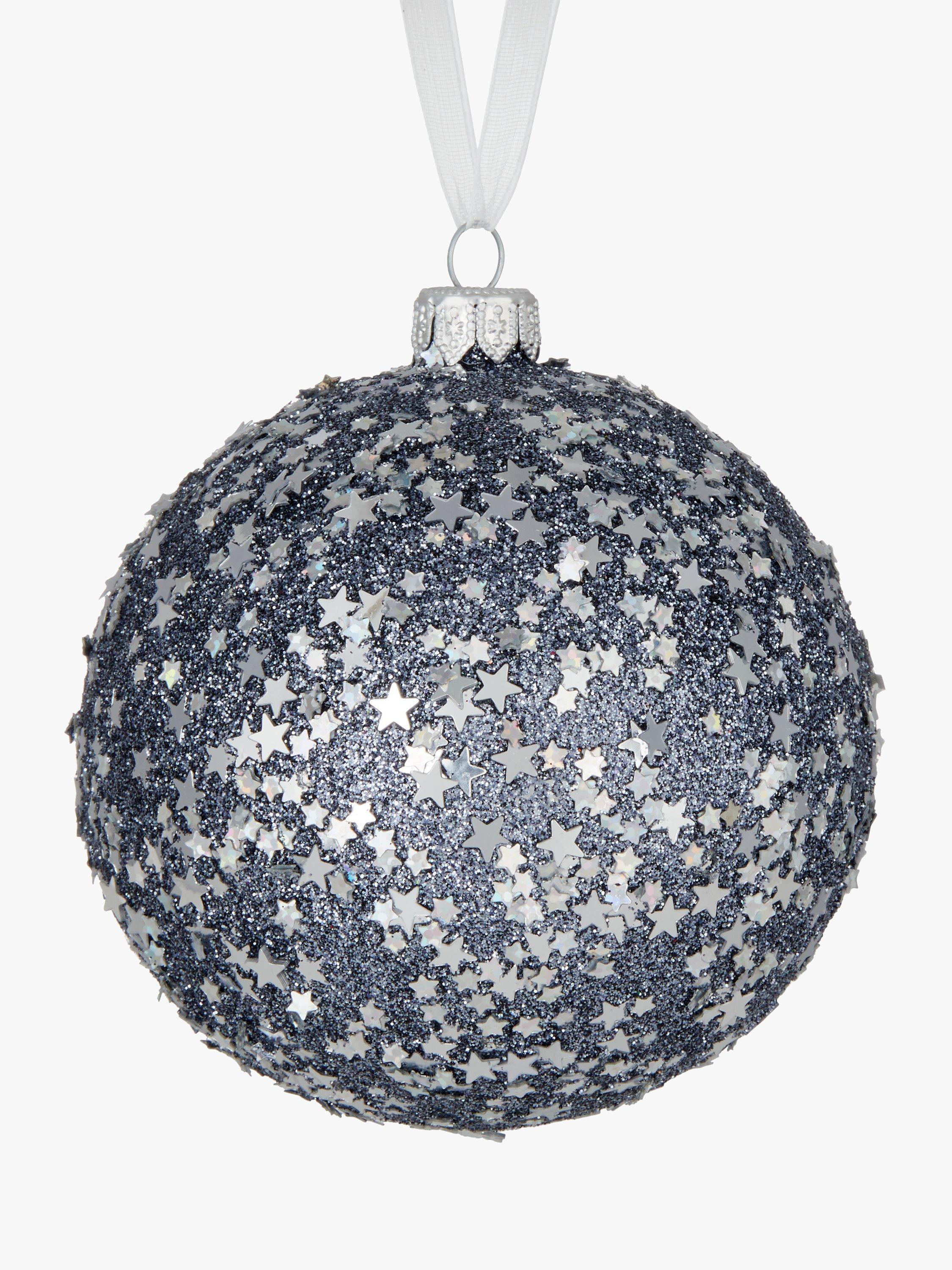 John Lewis & Partners Jet Glitter Star Sequin Bauble, Grey