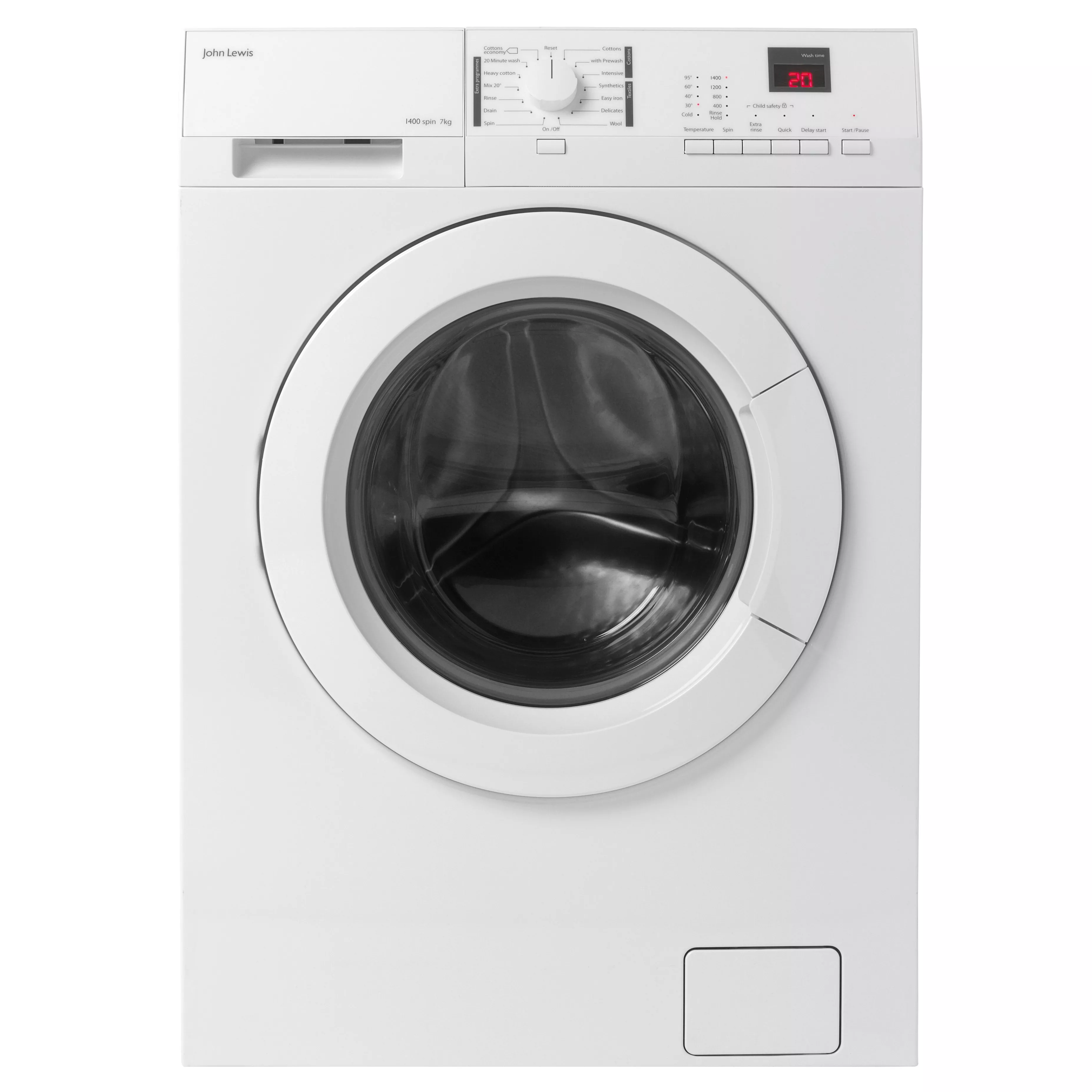 The ‘Aqualift’ wash system used on the JLWM1412 brings water to the top of the tub and distributes it evenly for an optimum wash. There are 14 wash programmes including a gentle option for wools, lingerie, easy iron and intensive options, plus a quick 20-minute programme that washes 3kg of laundry for when you need that outfit quickly.